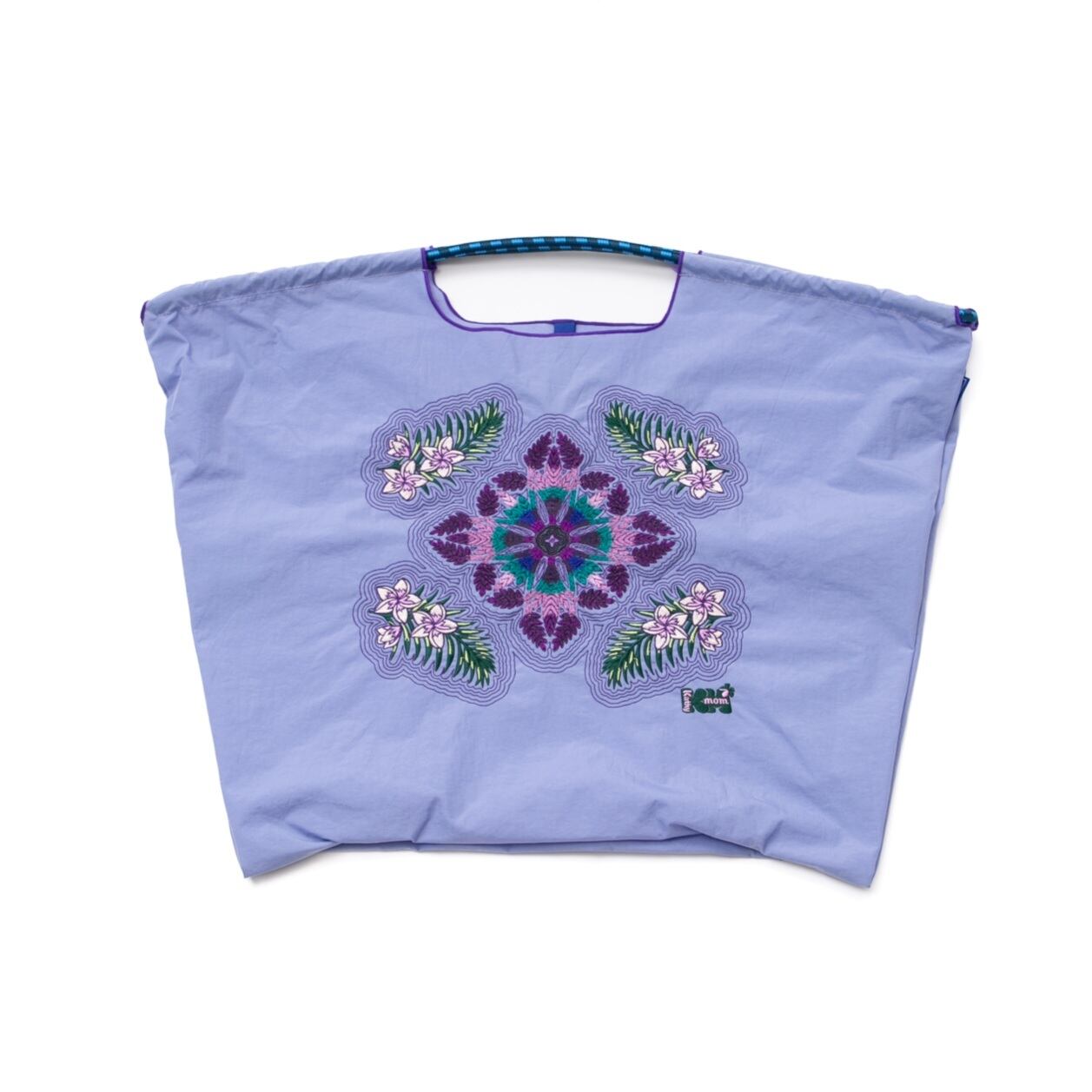 耐久性、撥水性に優れた厚手のポリエステル素材に、 グラフィックデザインをそのまま「刺繍」で施すことで、 高級感がありデザイン性の高いバッグとなっています。