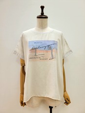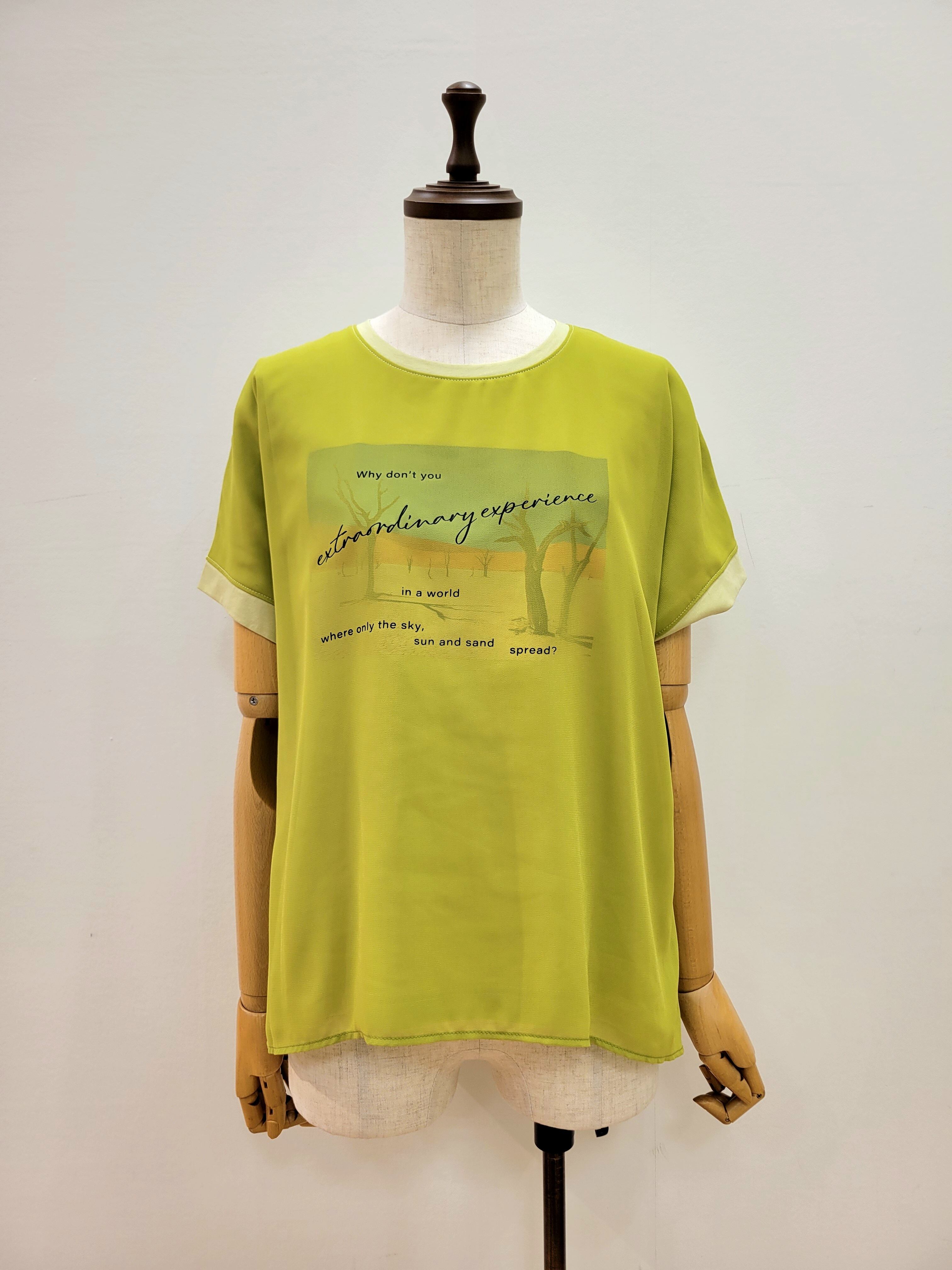 プリントTシャツの前身頃にシフォンを重ねたカットソー。
