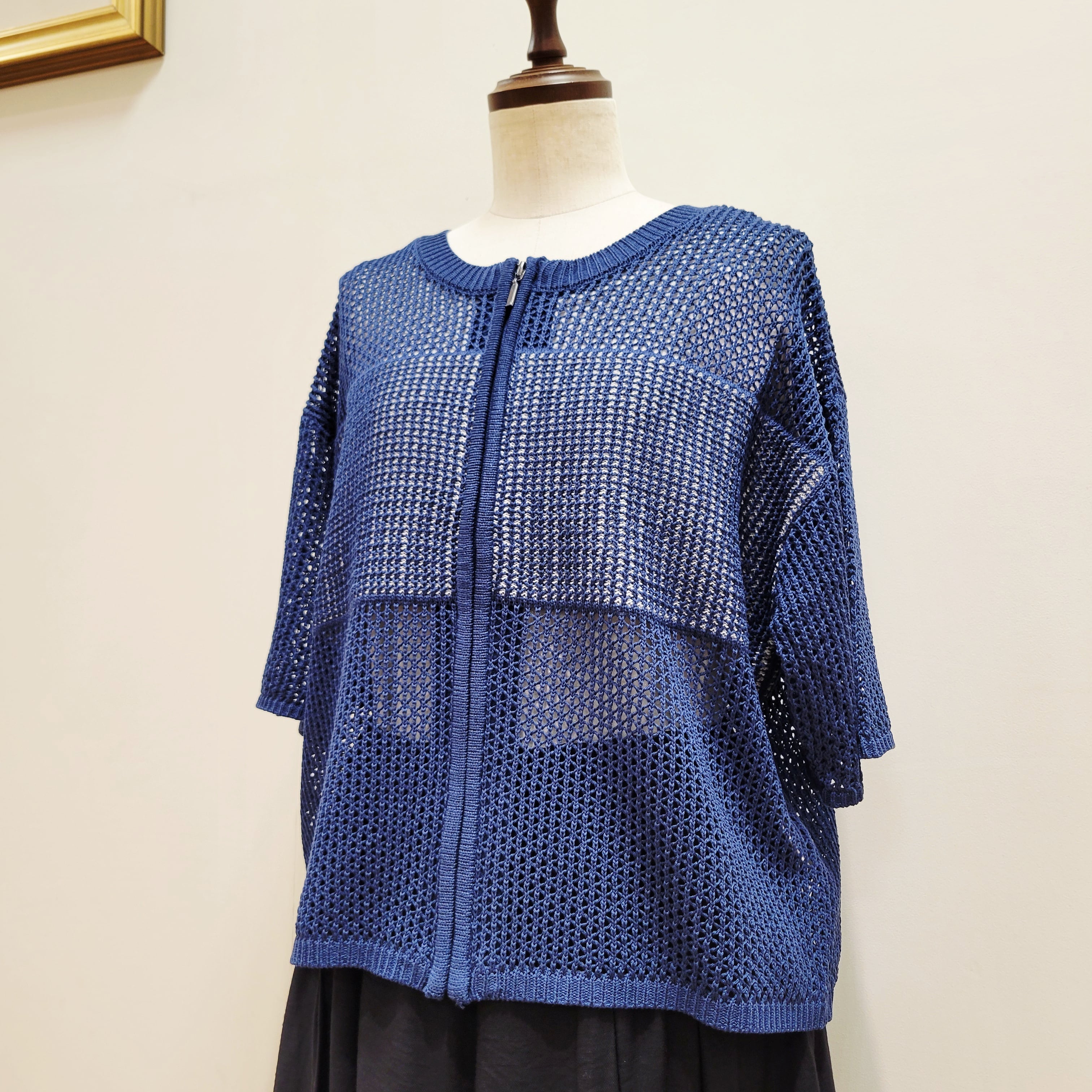フロントには透かし編みが施され、軽やかさを演出。