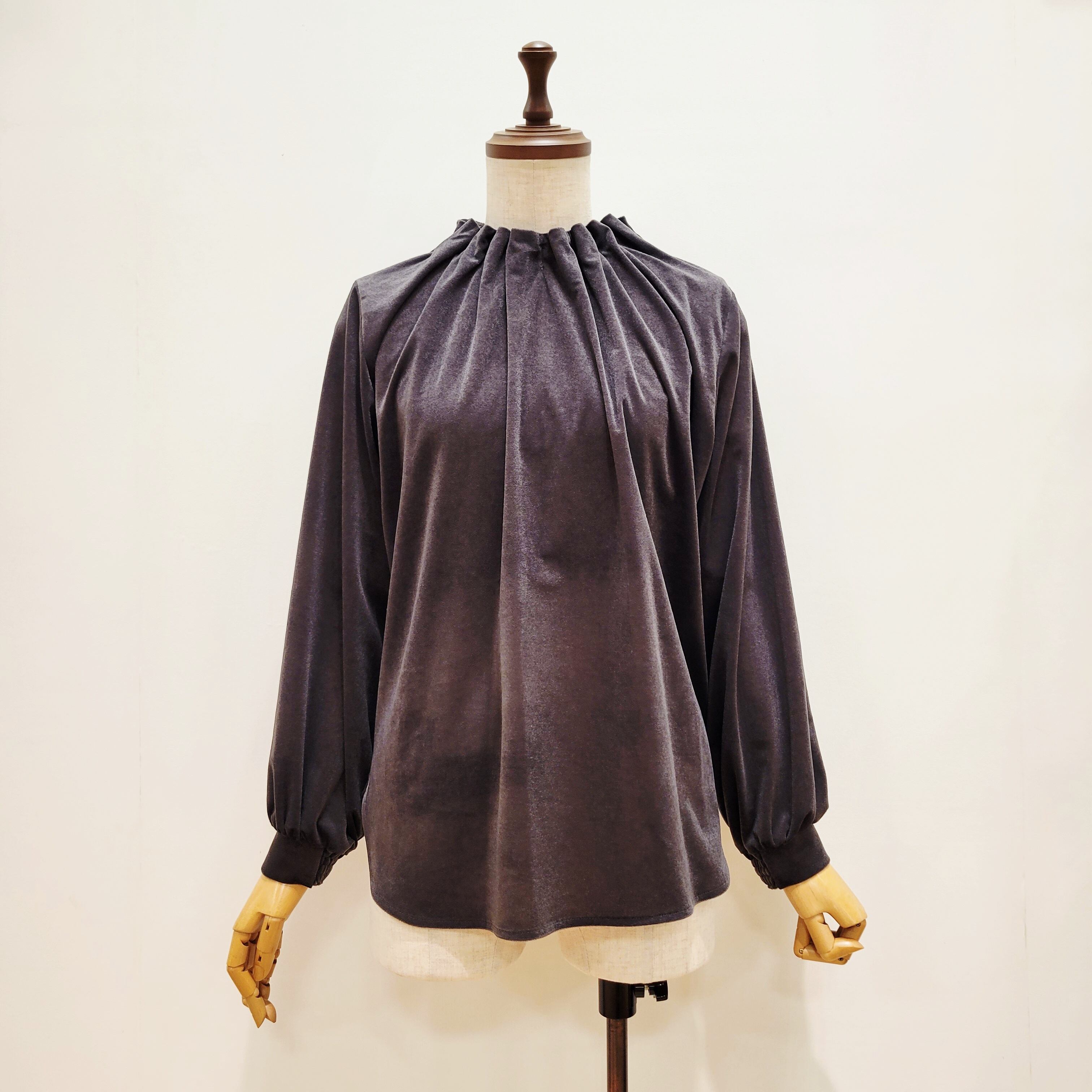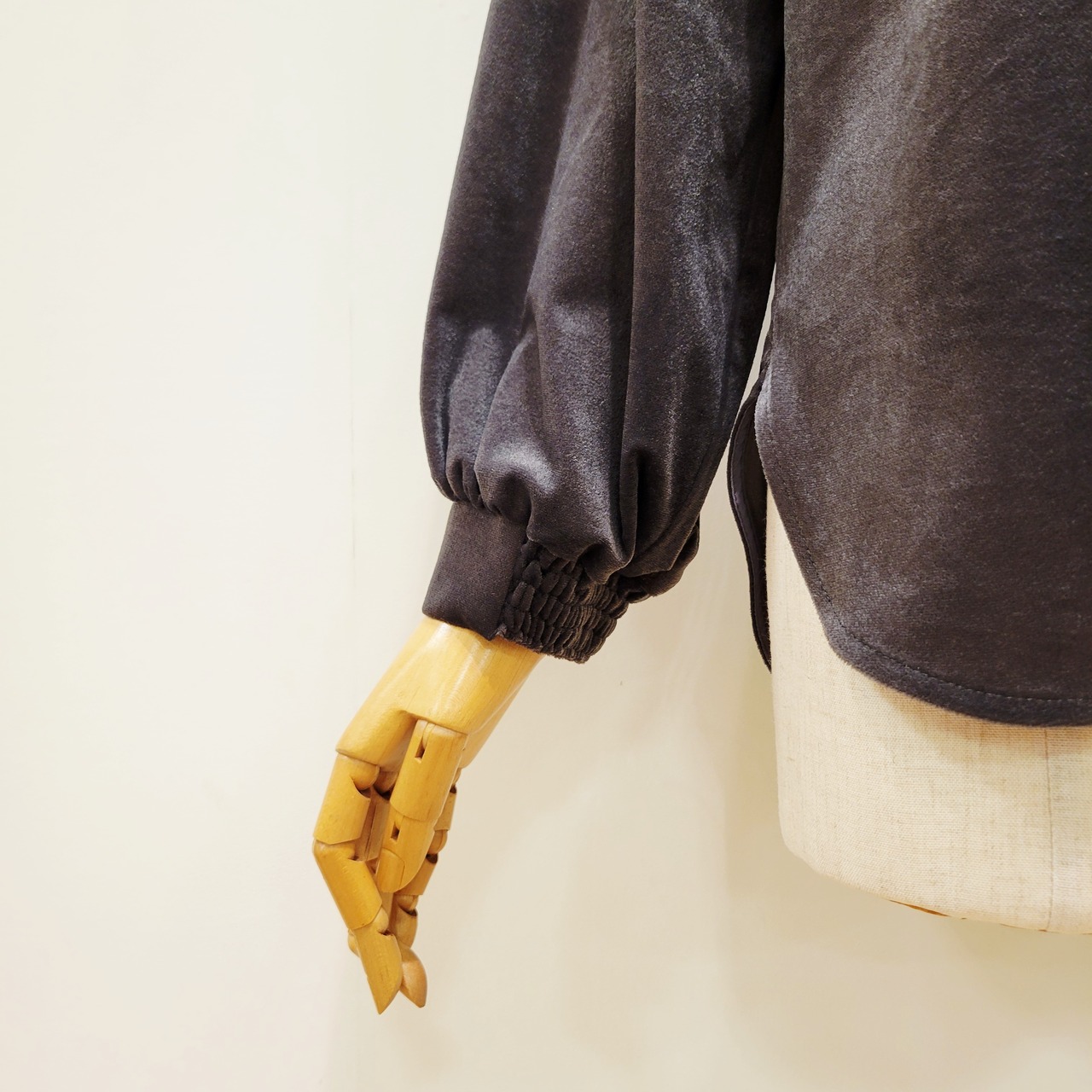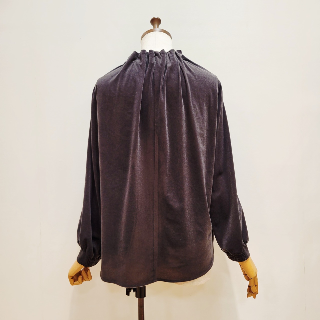 光沢感が特徴のベロア生地は1枚で着ても高級感を演出し、秋が深まるとともにインナーとしてもご利用いただける、長く活躍する1枚です。