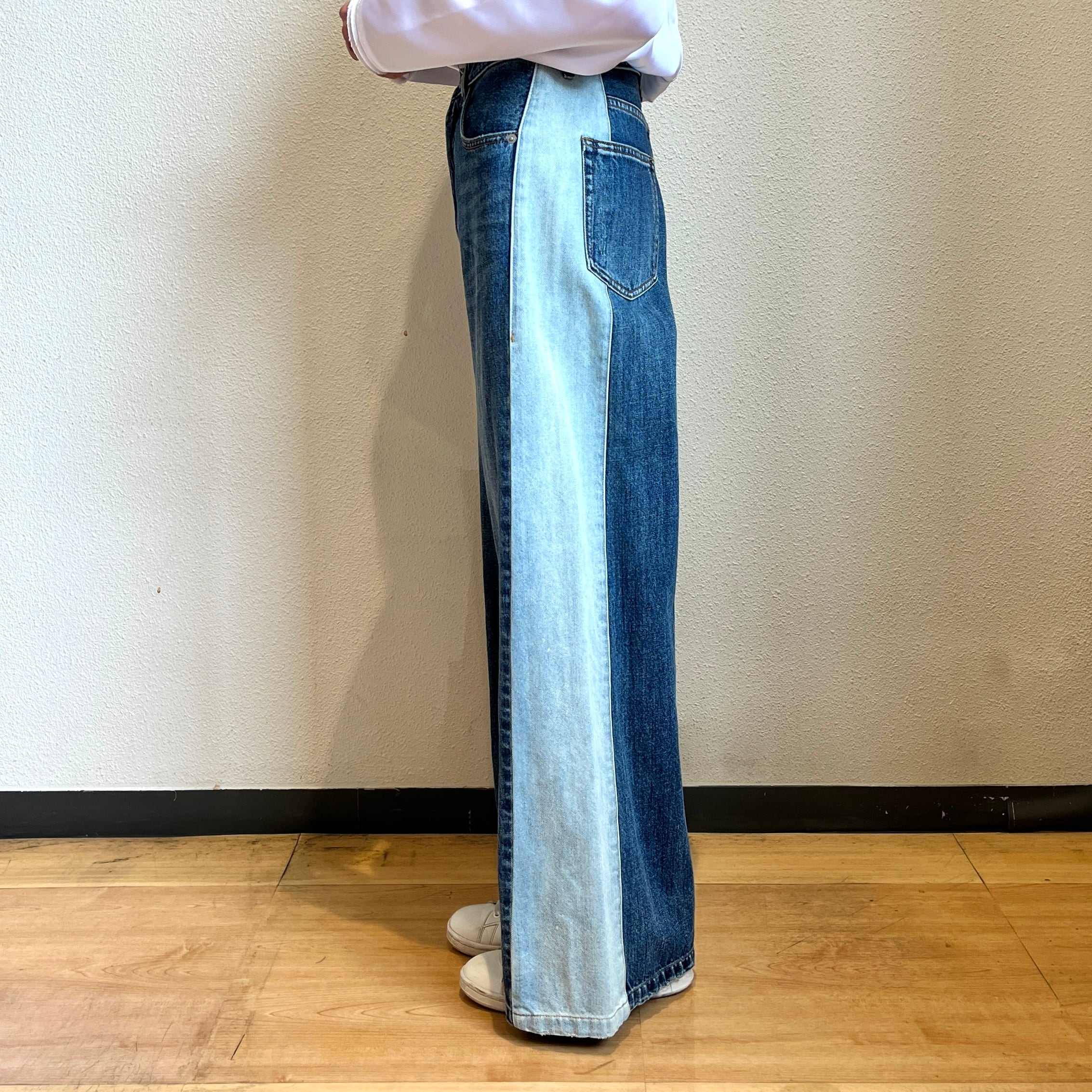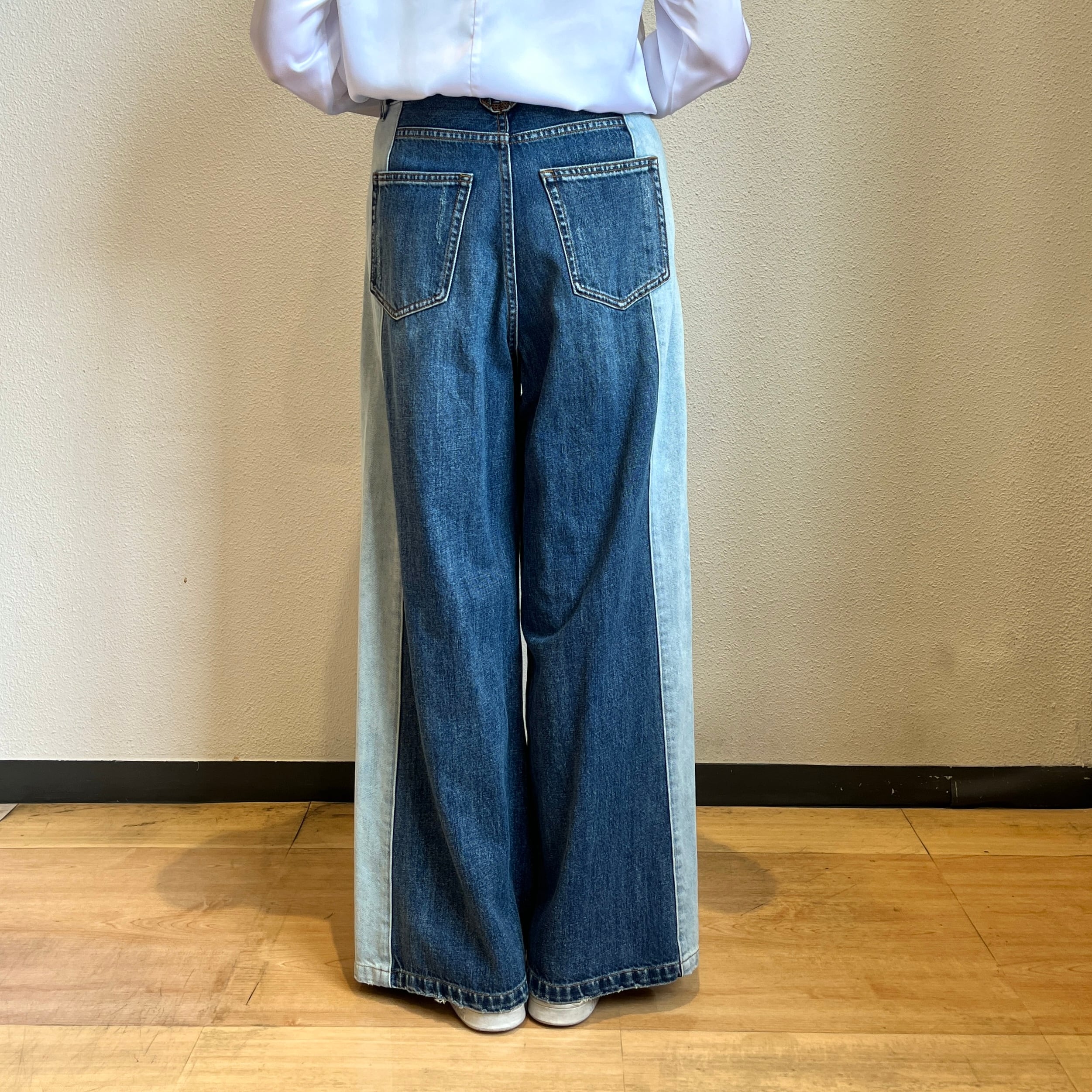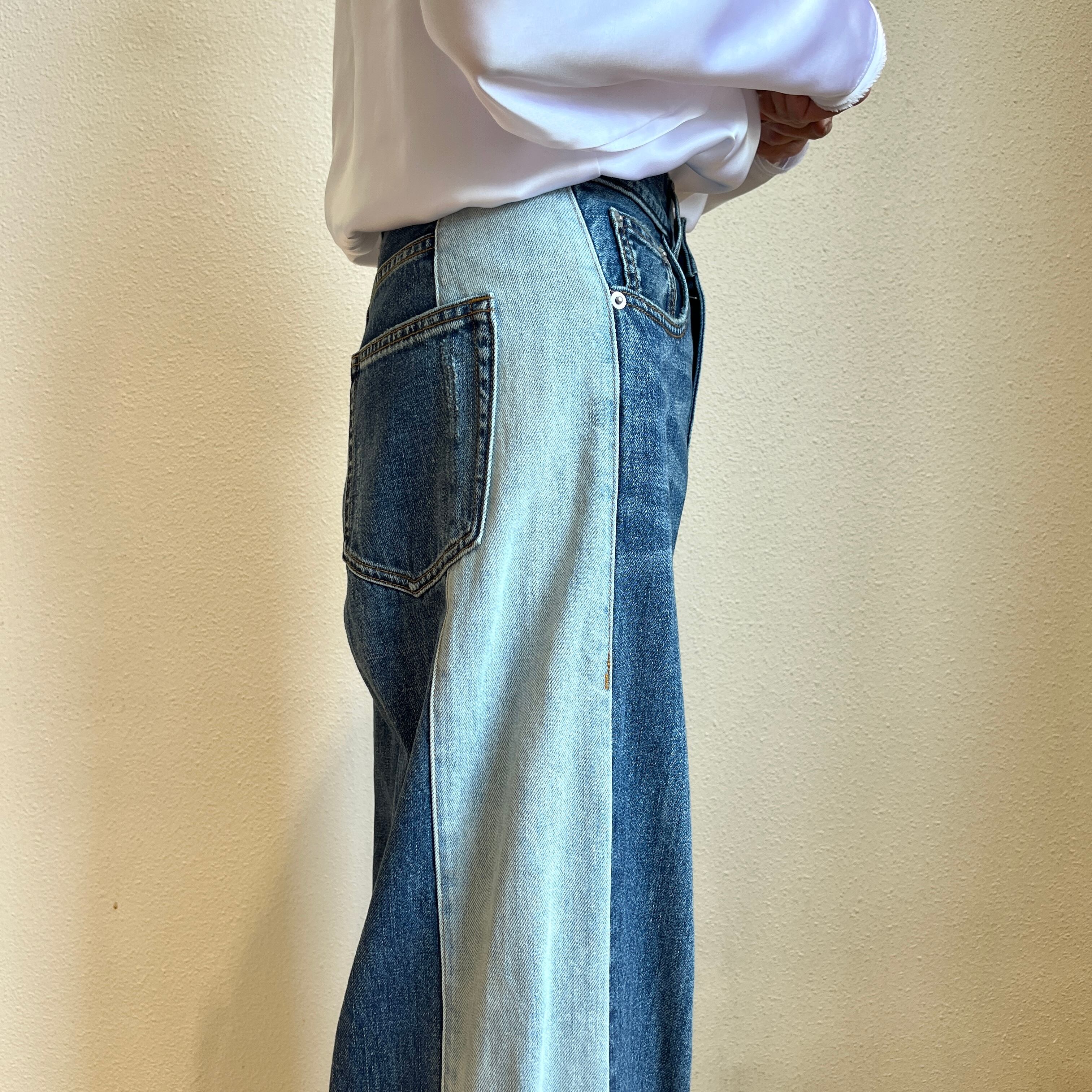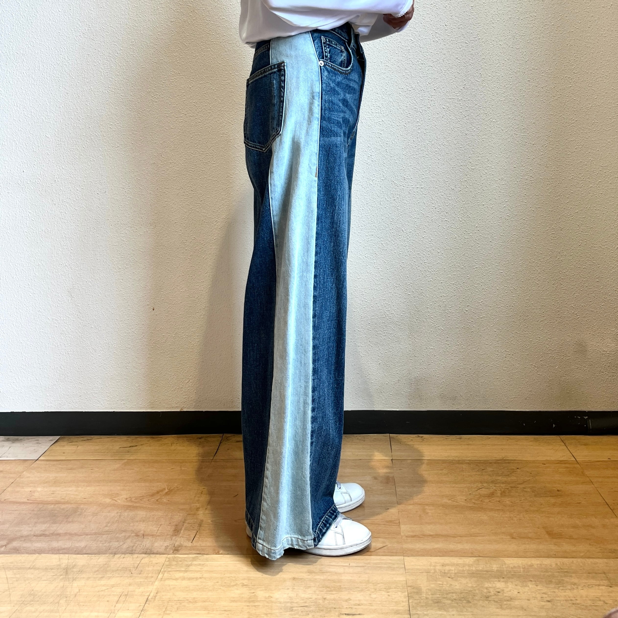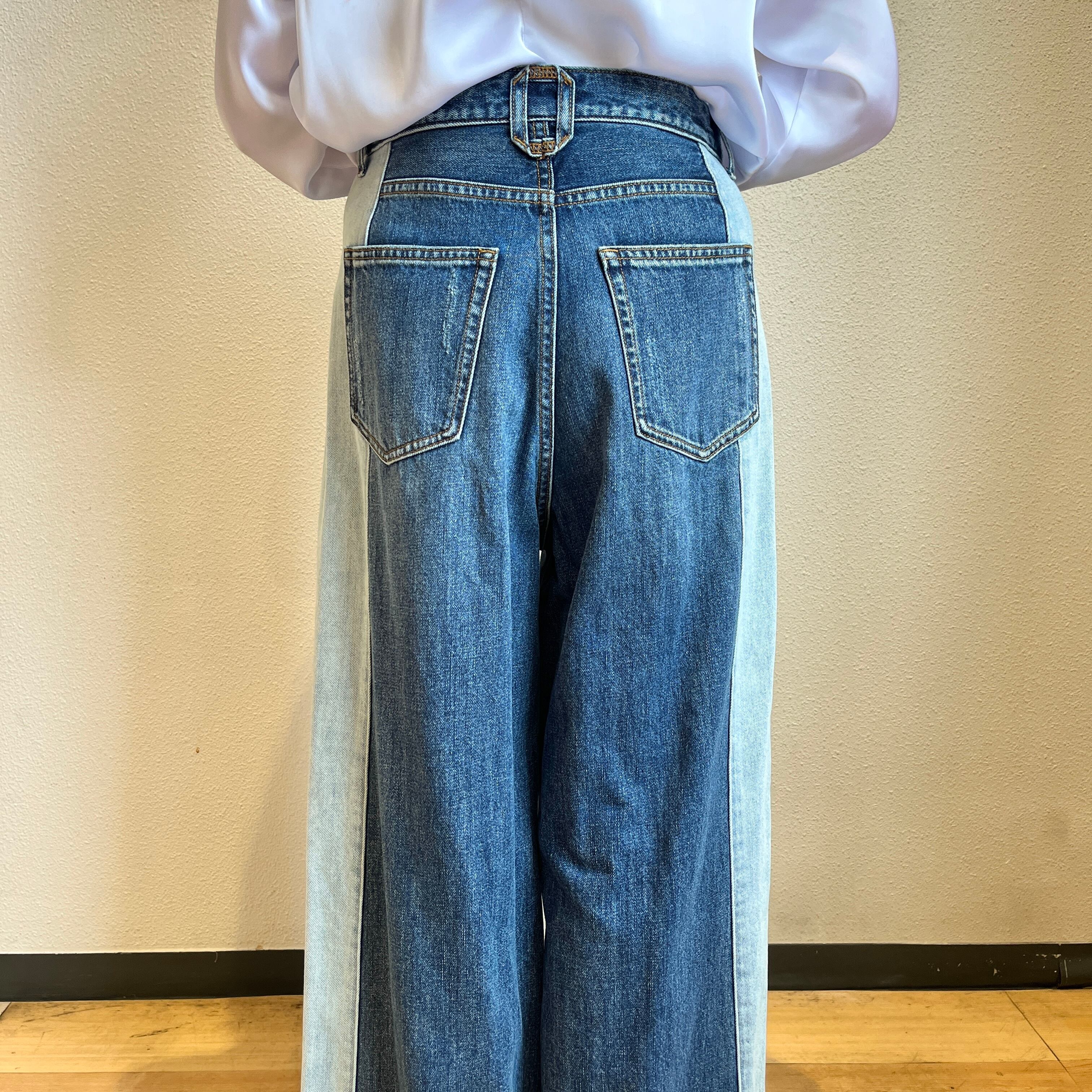 サイドの配色部はブリーチしたデニムを使用した拘りのデニムパンツです。