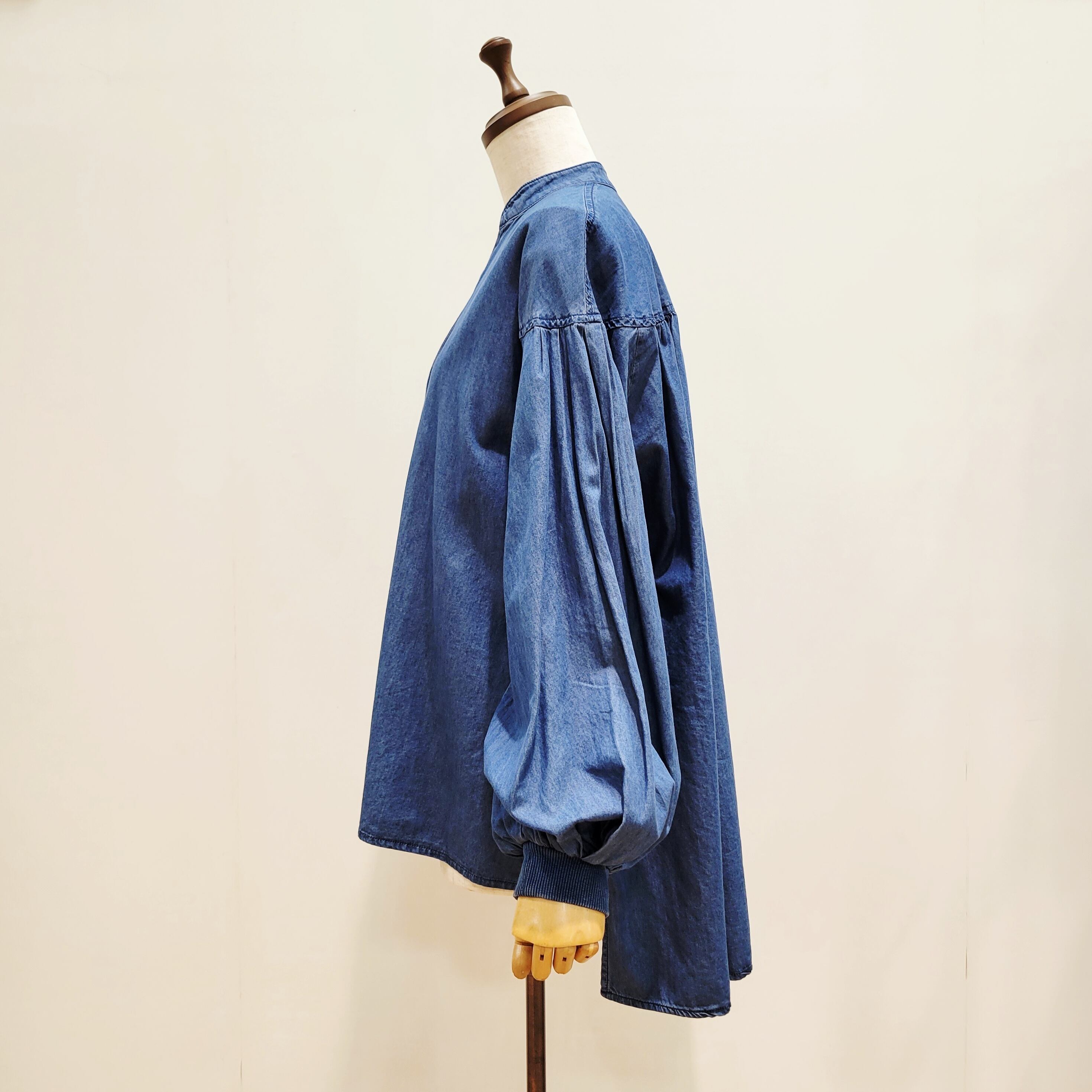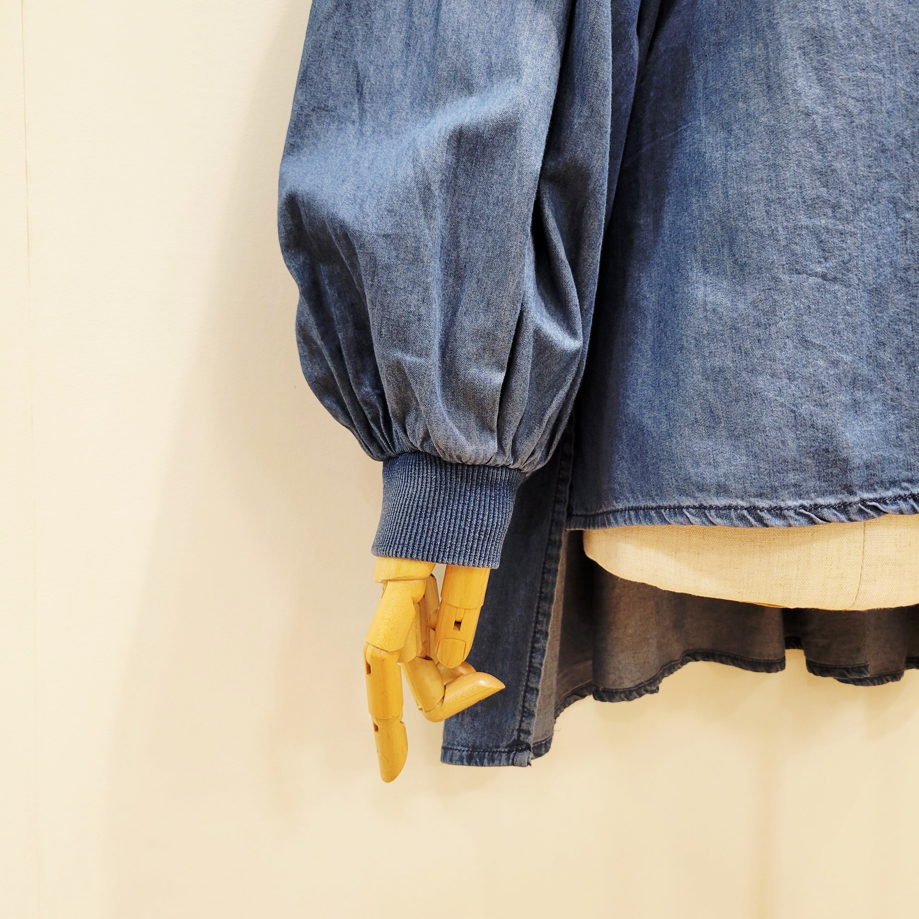 贅沢にデニム生地を使用し、タックを入れているのでゆったり楽な着心地のまま