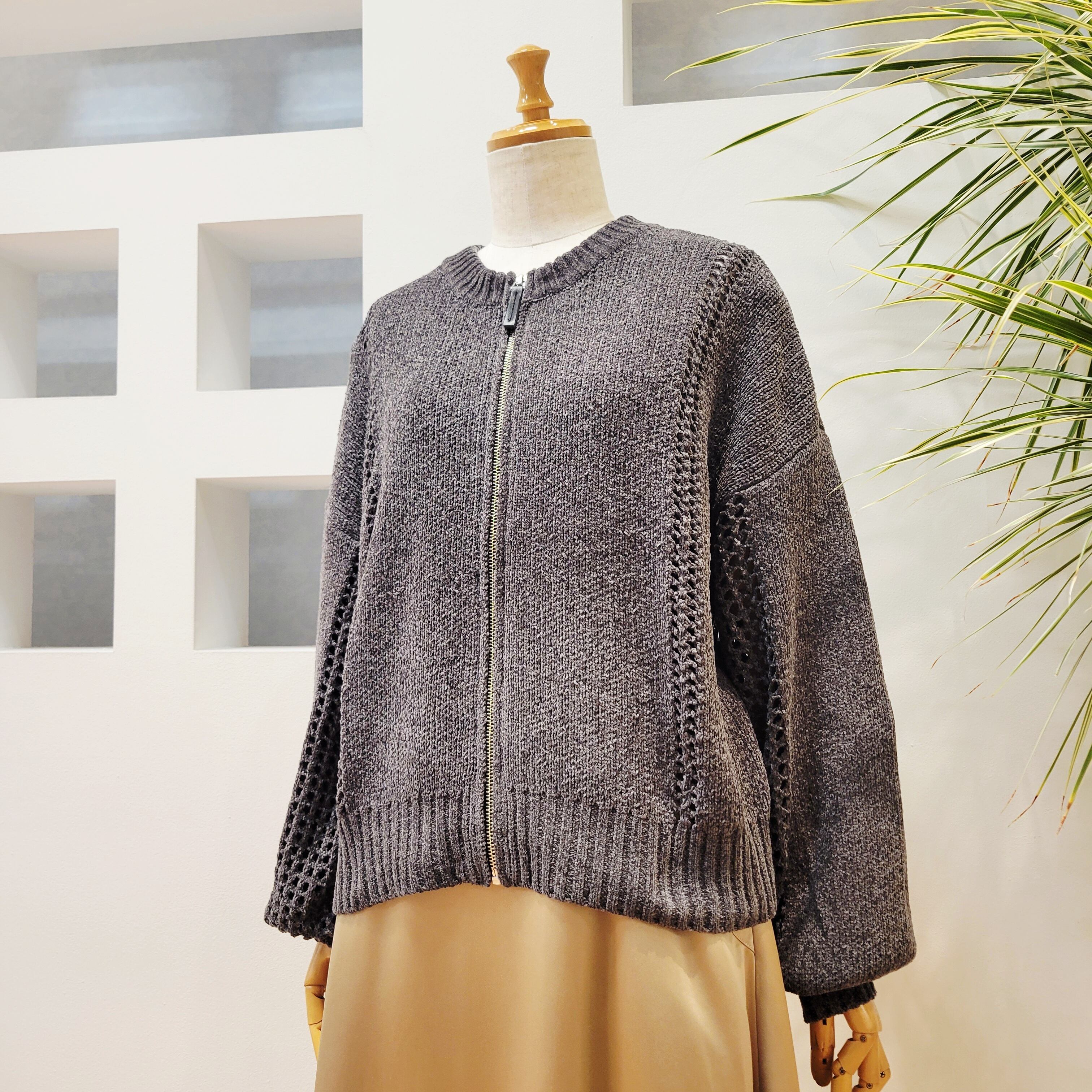 モール糸を使用したメッシュニットブルゾン。
