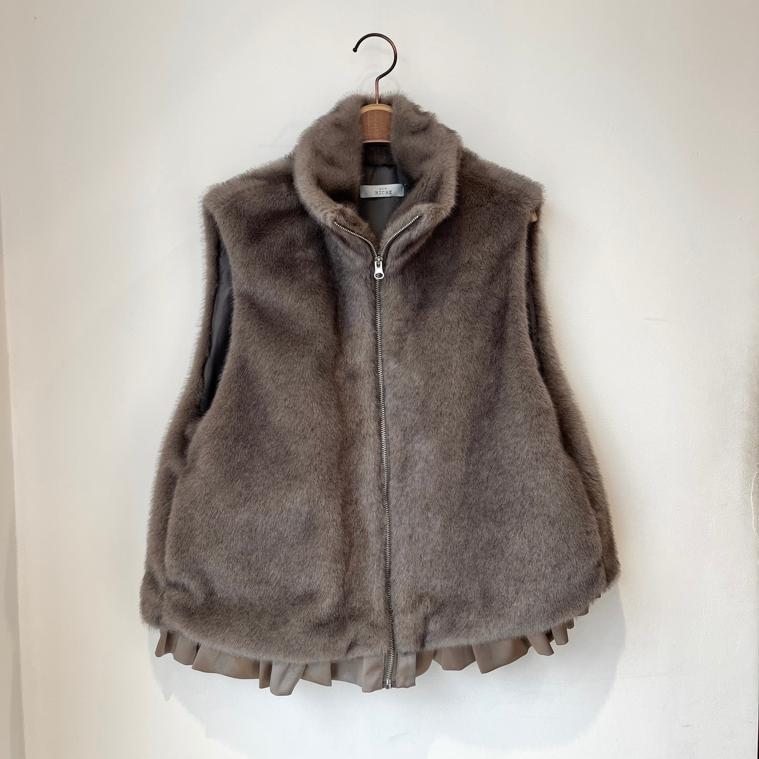 柔らかくて肌触りのいいエコミンクファーを使用したスタンドカラーのファーベスト