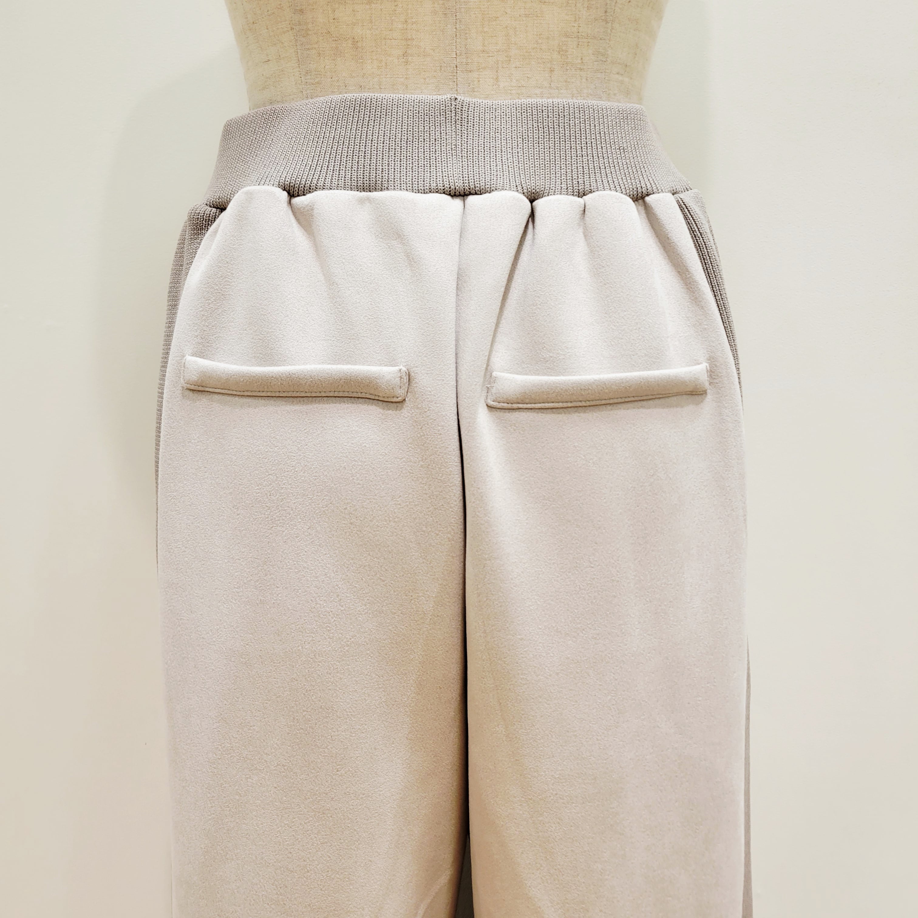 秋冬の定番、スエードパンツも新鮮な雰囲気に。