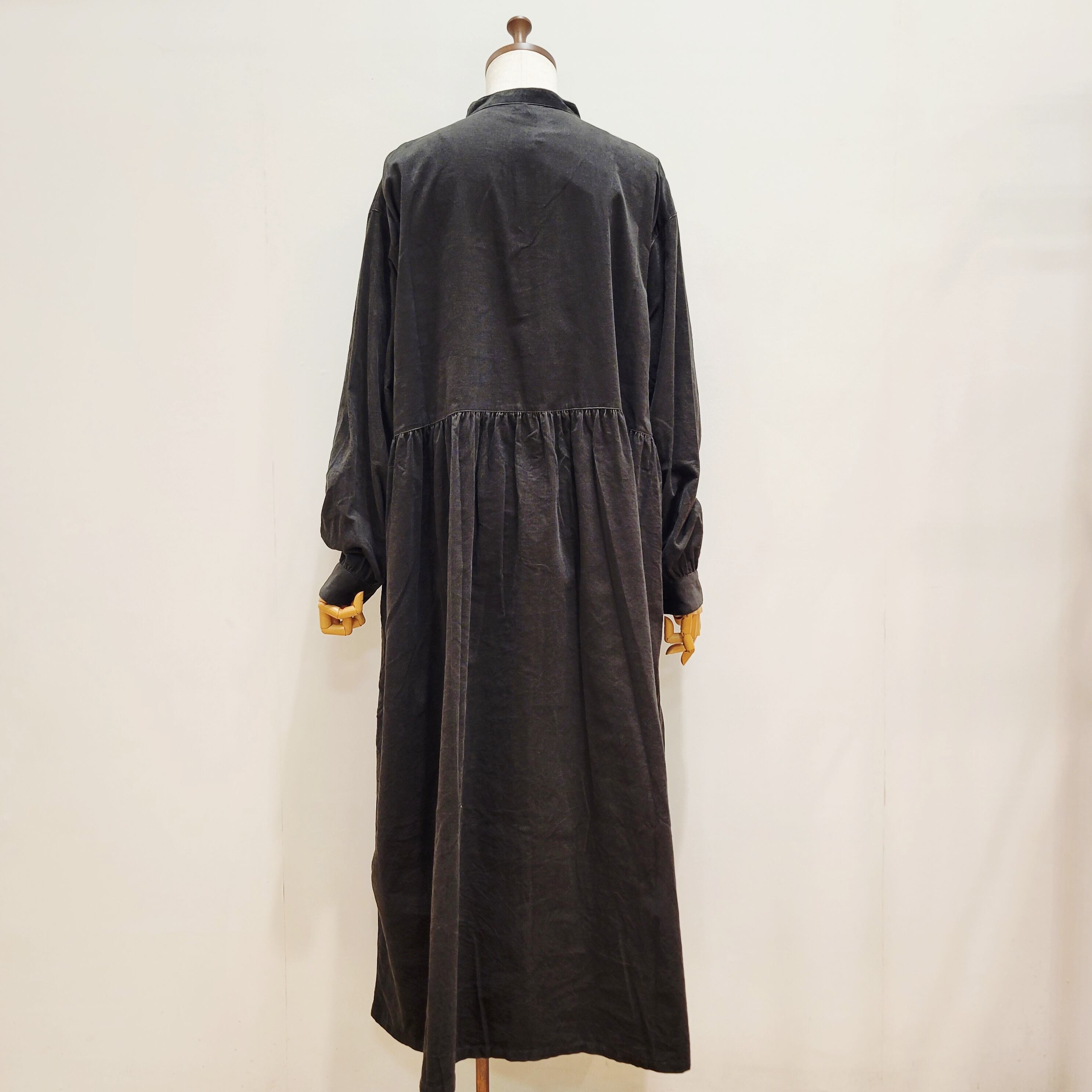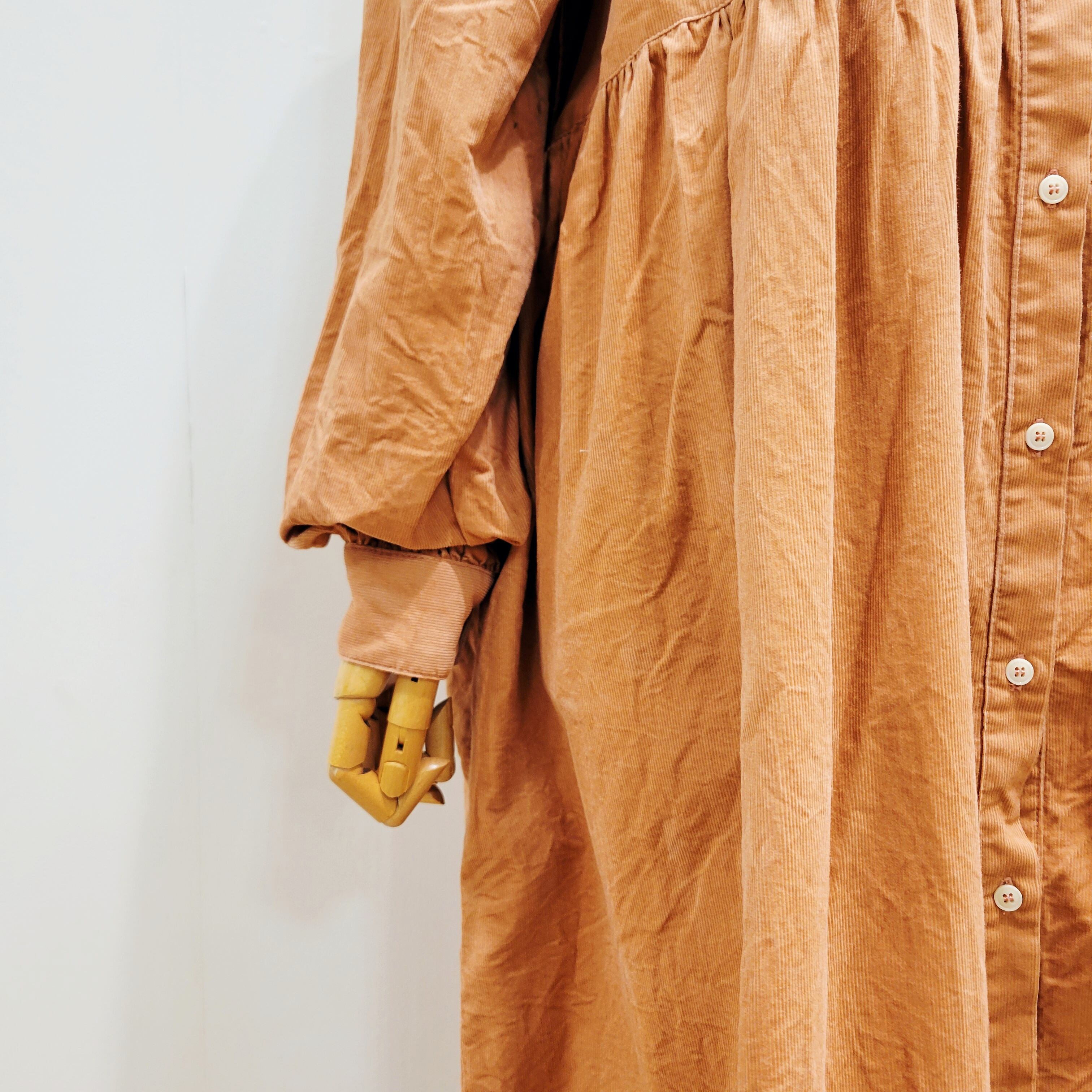コーデュロイ生地を使用した、シャツワンピース。