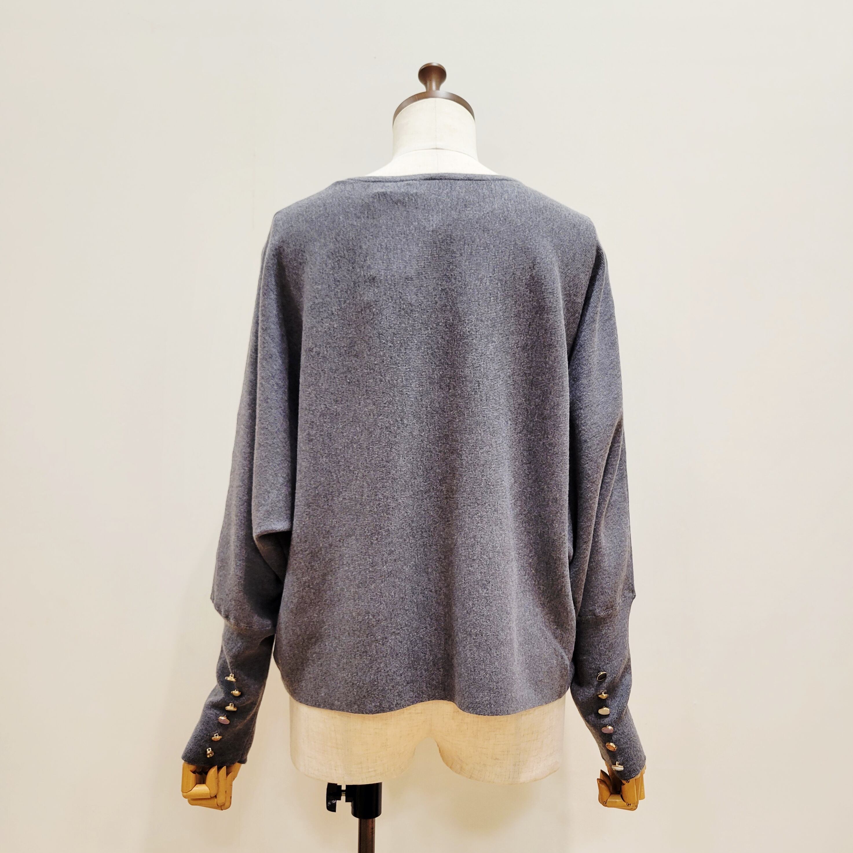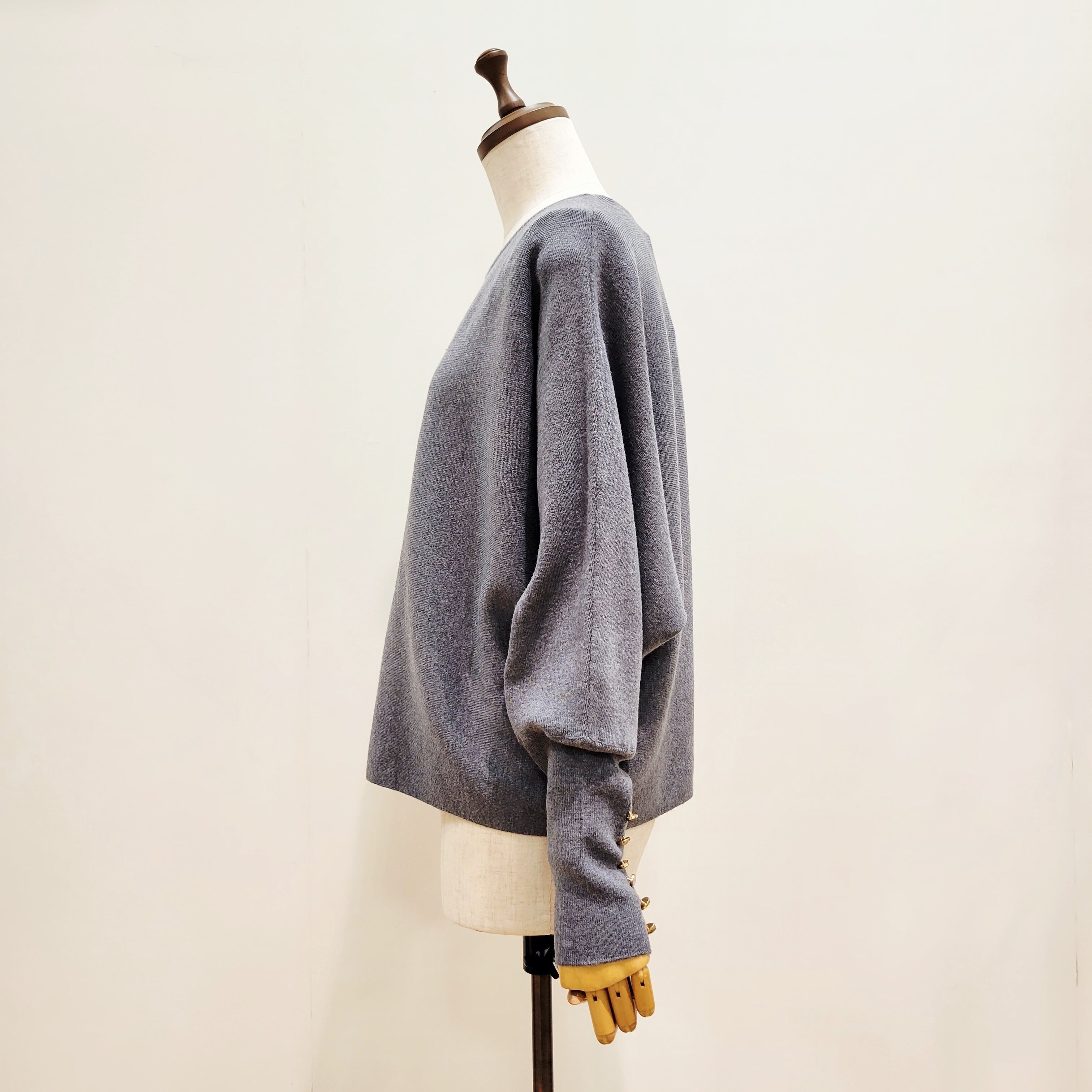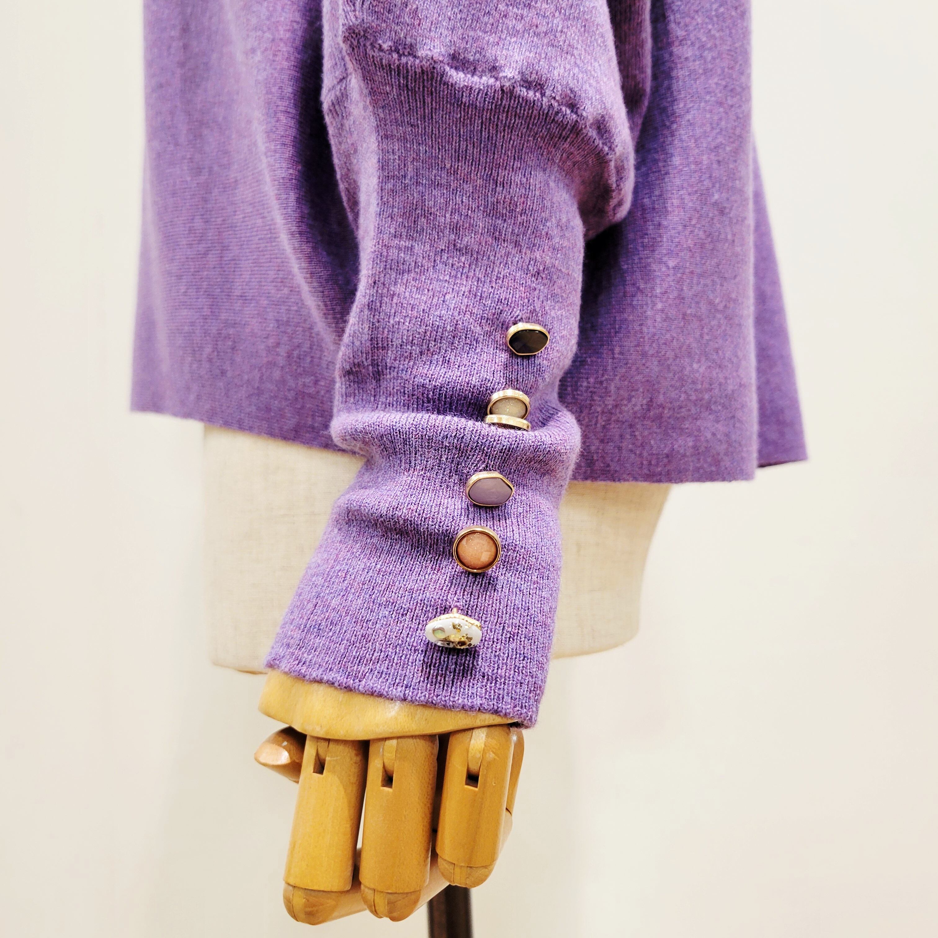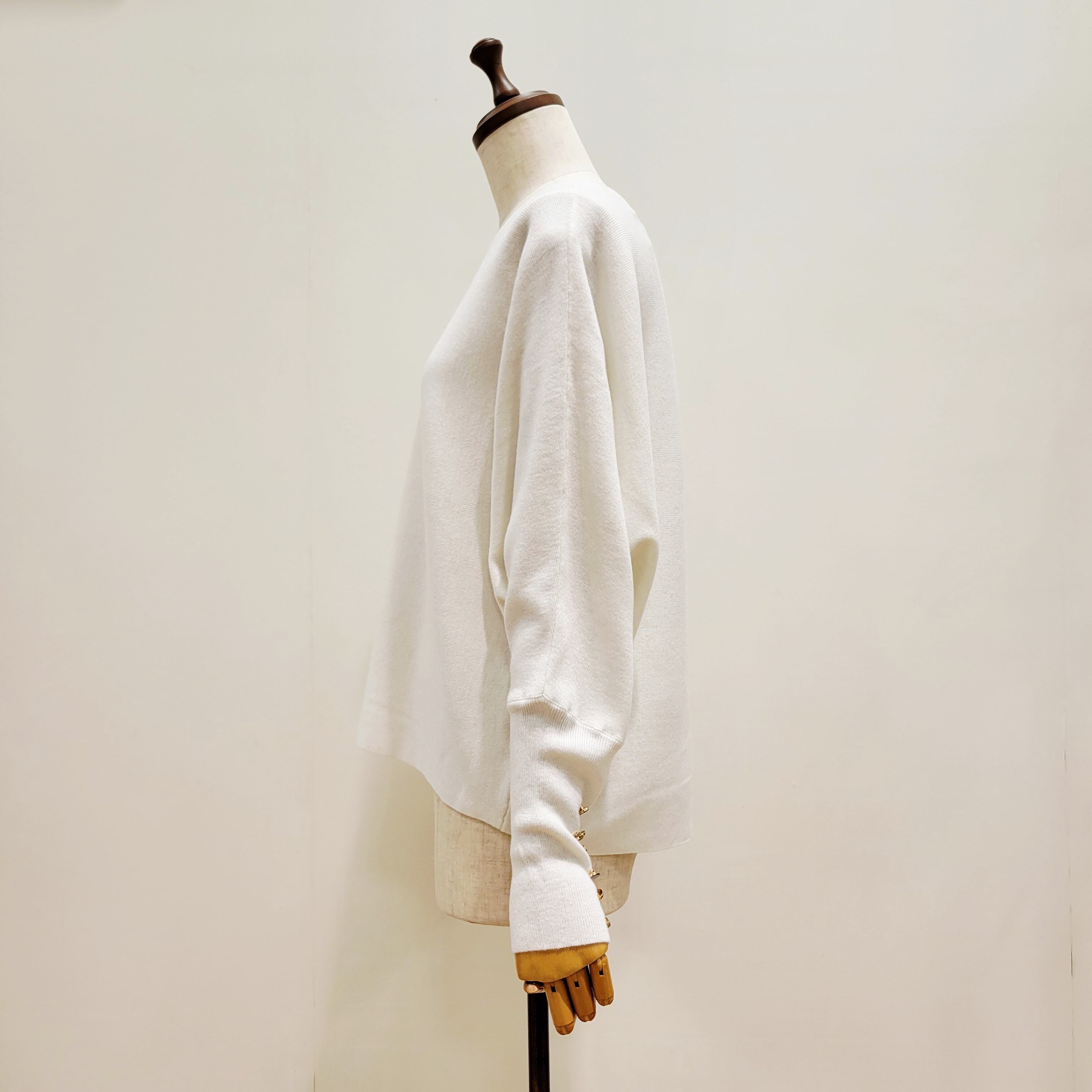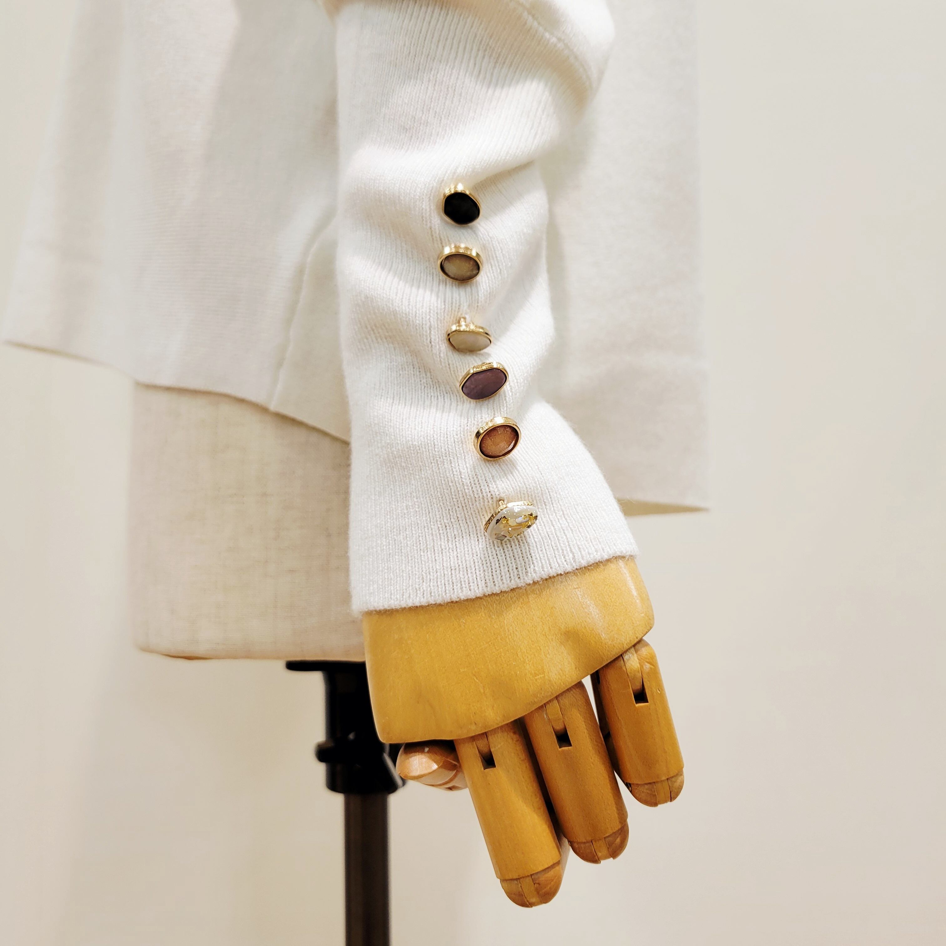 袖には多色使いのジュエリー調ボタンが施され、シンプルながらも存在感を出す