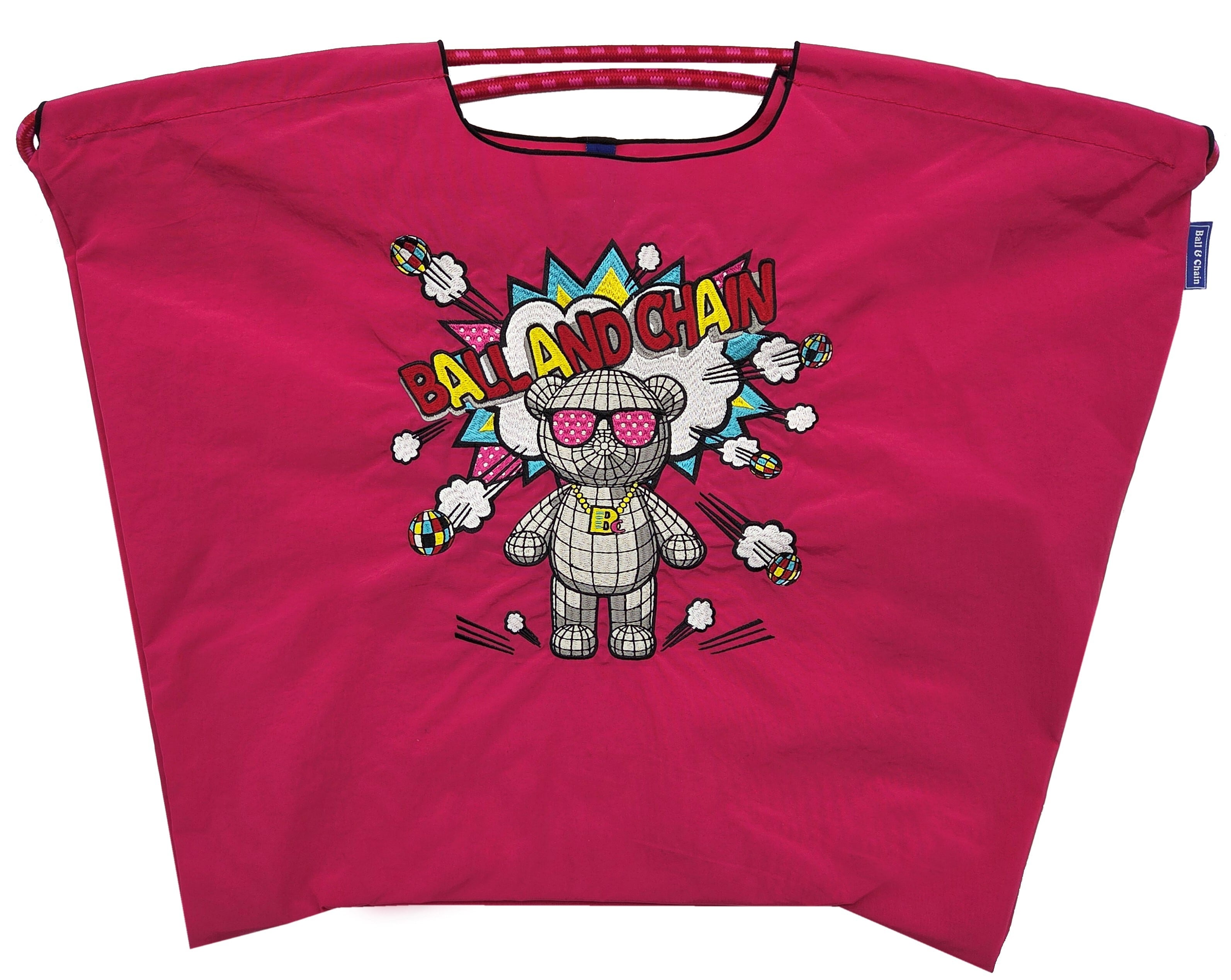 耐久性、撥水性に優れた厚手のポリエステル素材に、 グラフィックデザインをそのまま「刺繍」で施すことで、 高級感がありデザイン性の高いバッグとなっています。