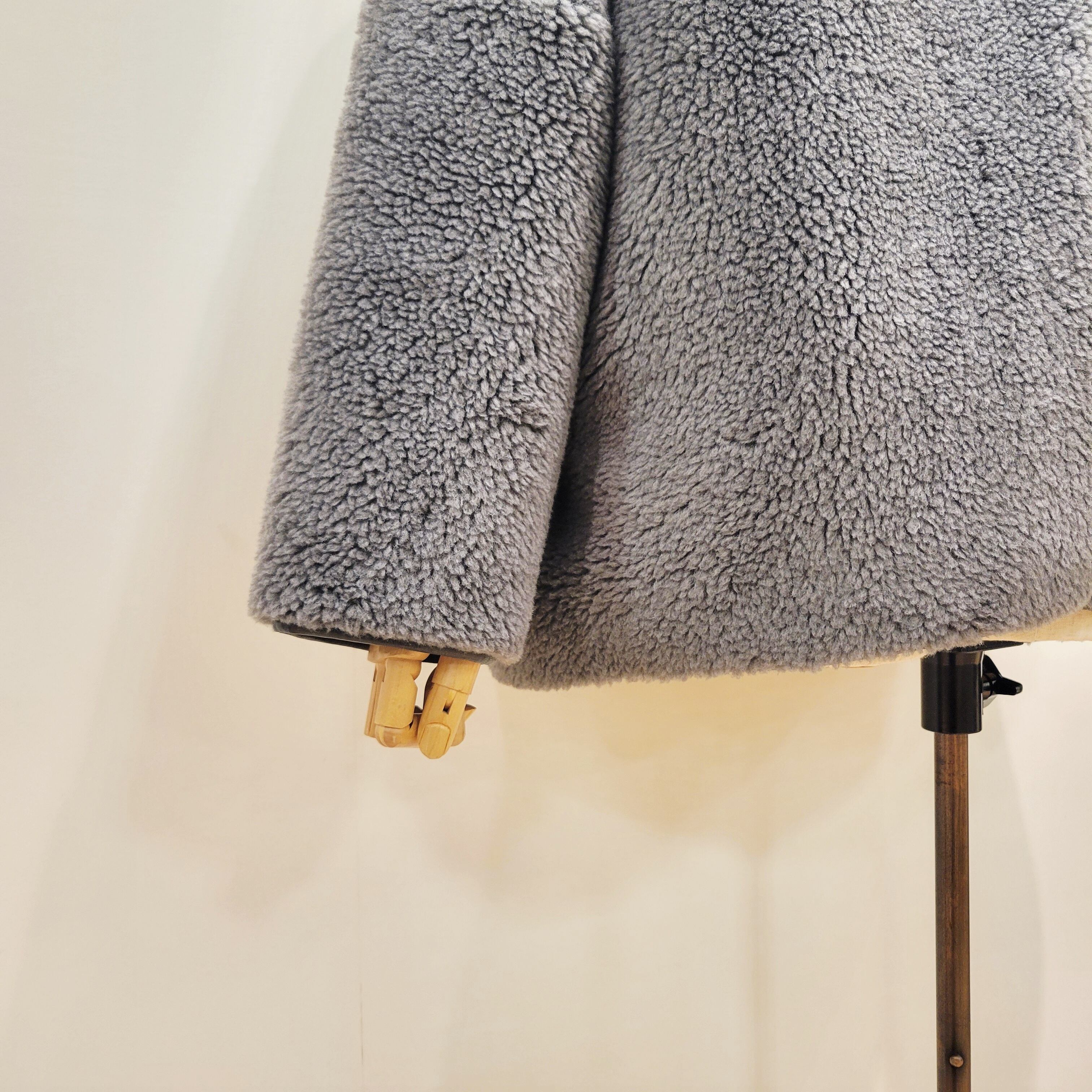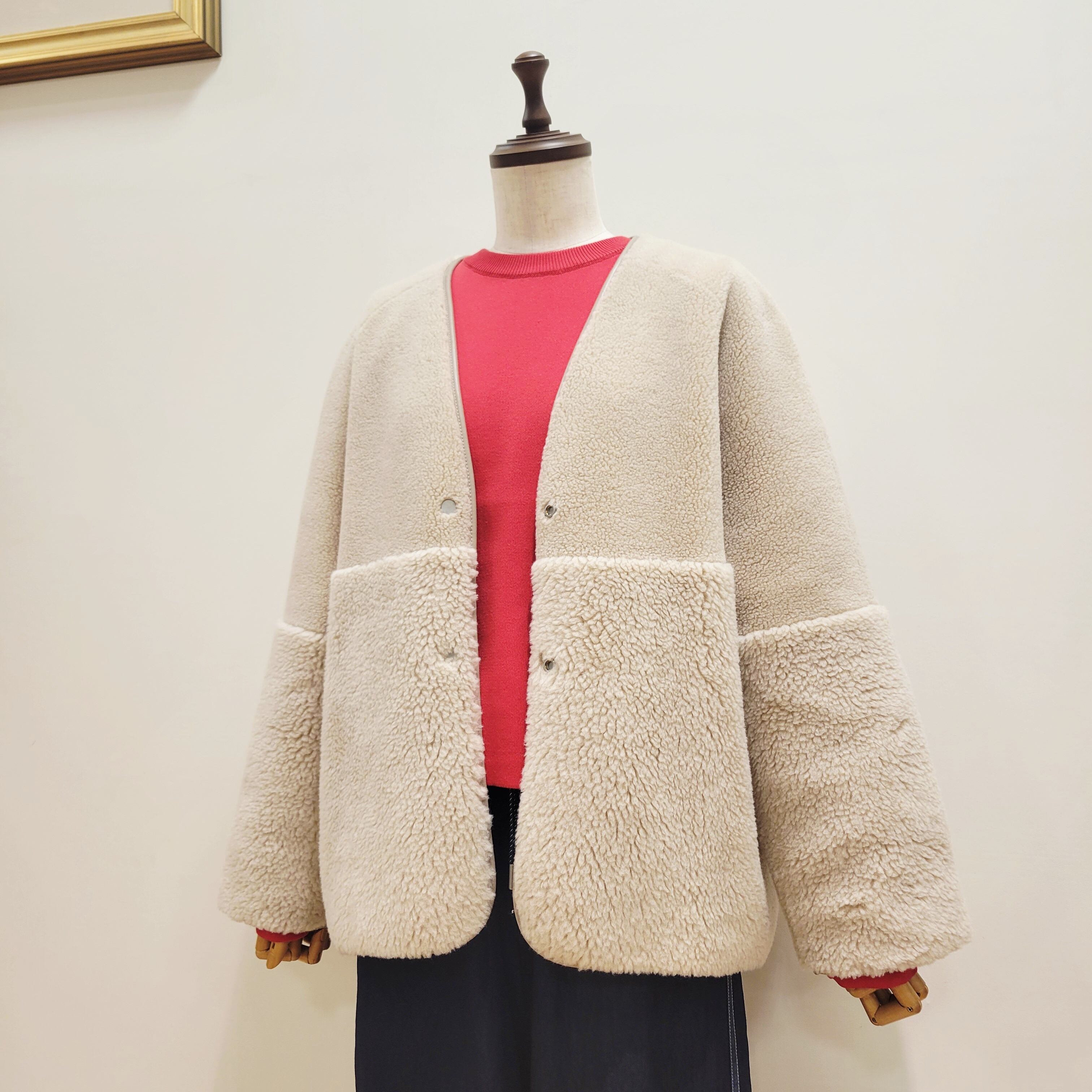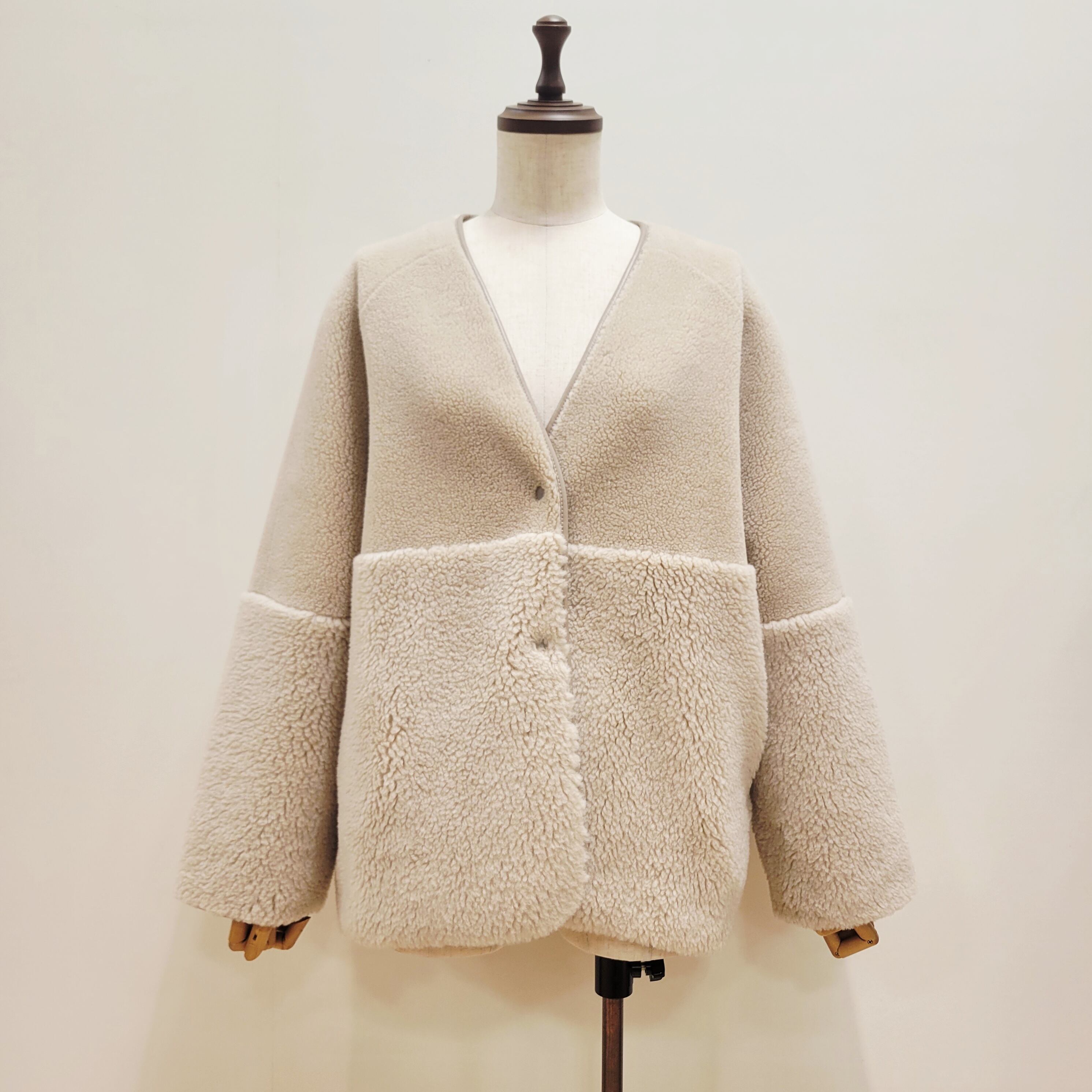 表面は毛足の異なるボアを袖とウエストあたりで切り替えた表情あるデザイン、