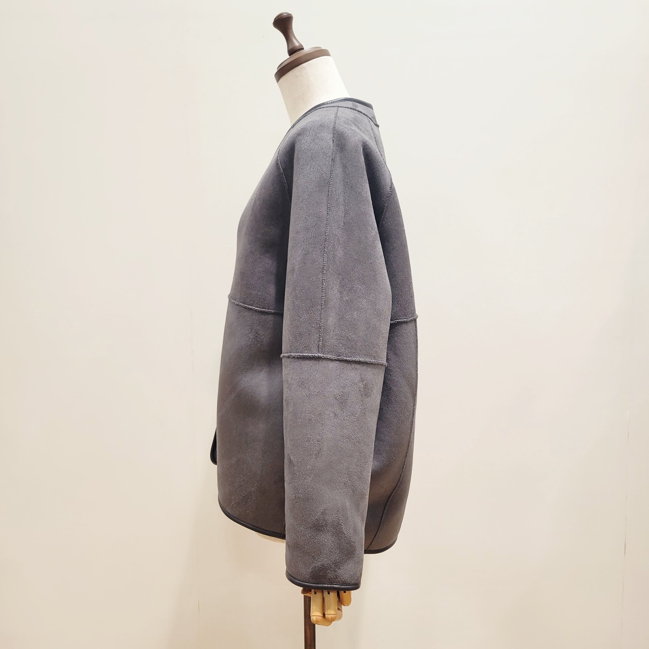 ボアとスエードでリバーシブルに着用できるショートコート。