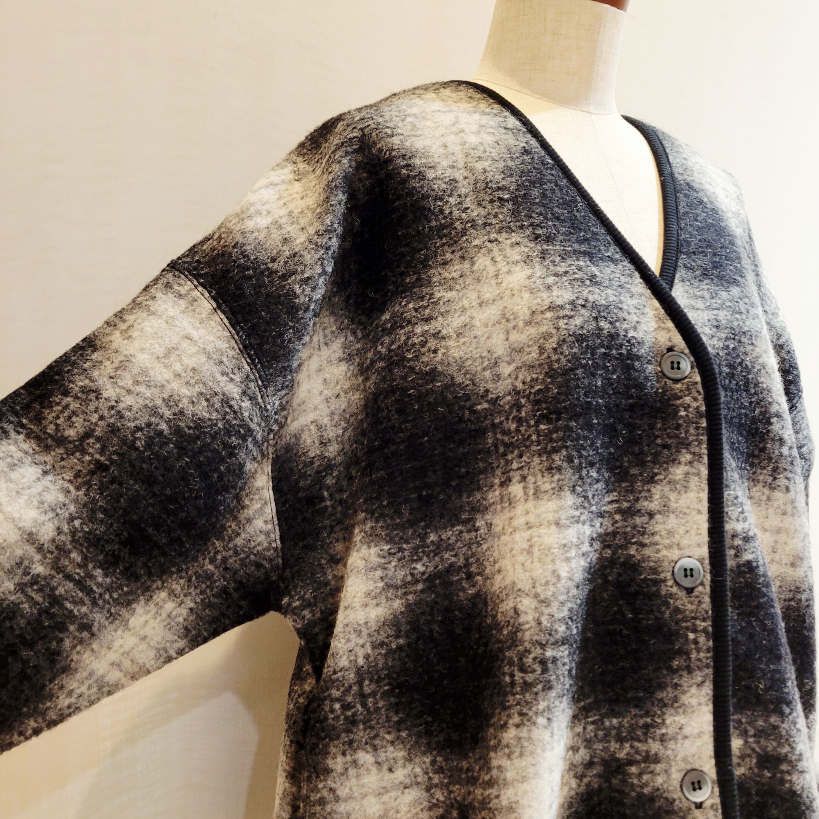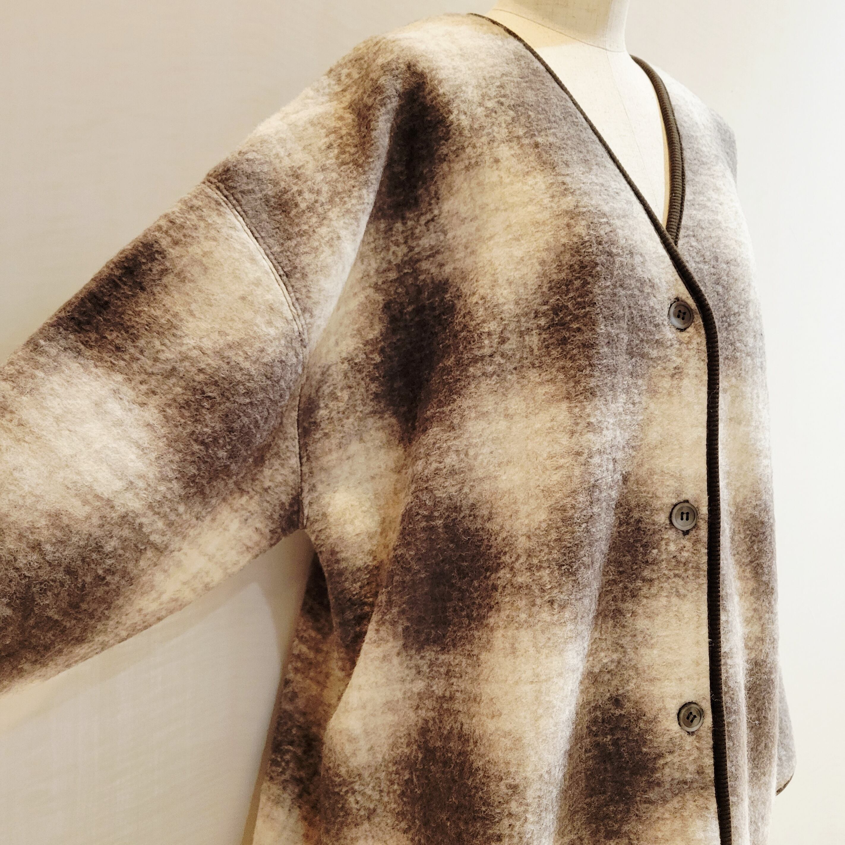スライバーニットである特徴の、編み立てる工程で空気をたっぷり含み、ボリュームがありながら軽量に仕上がり暖かさと柔らかさを両立しています。