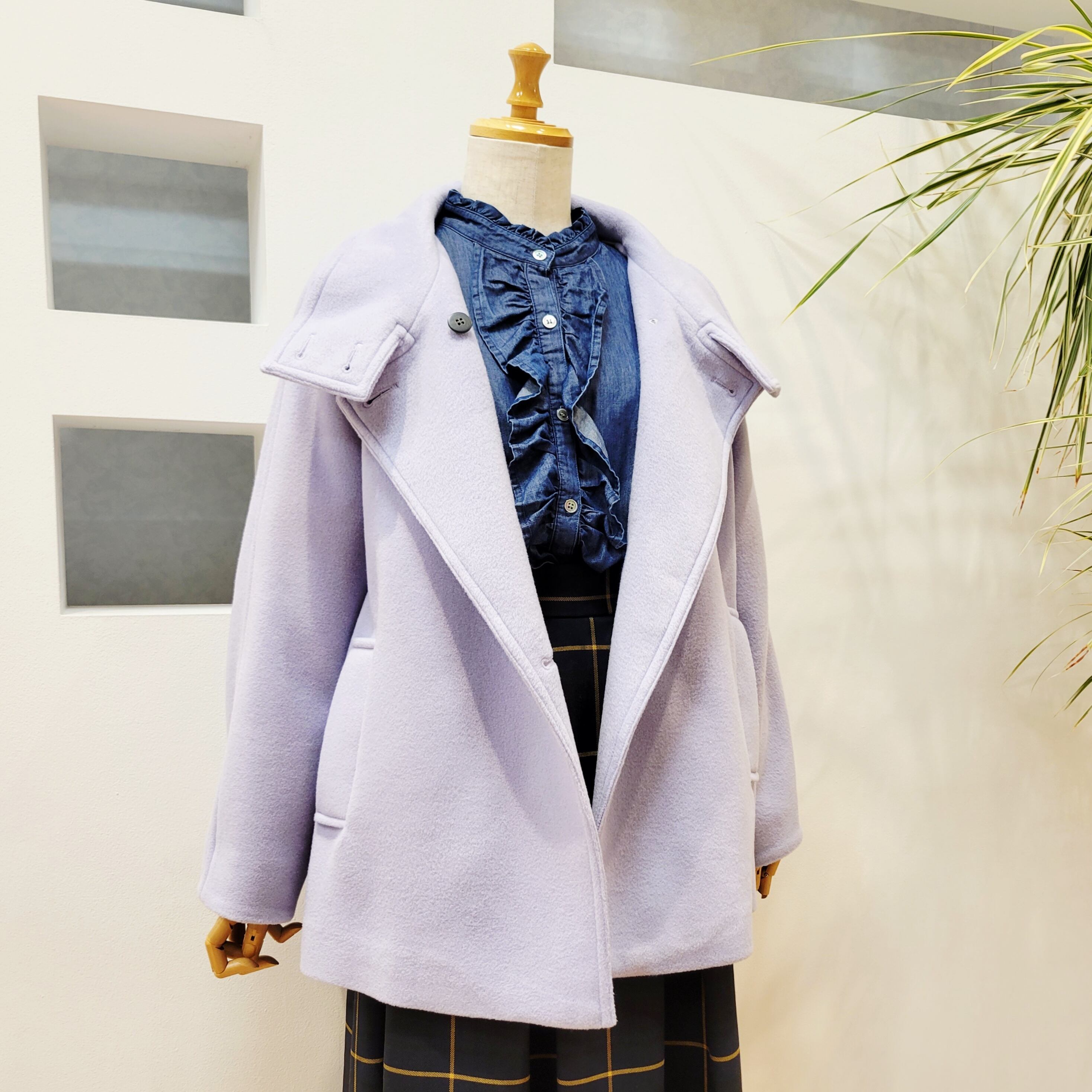 襟もスタンドカラーやジャケットのようなシルエットなど、コーディネートに合わせていろいろな形にアレンジ可能なのもワンポイント。