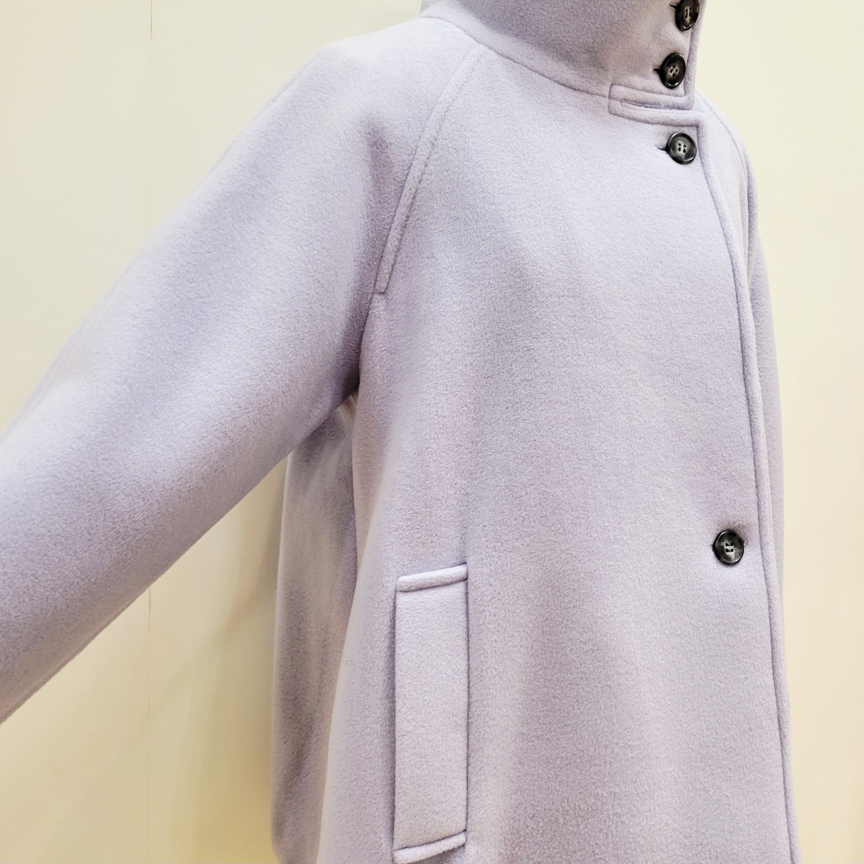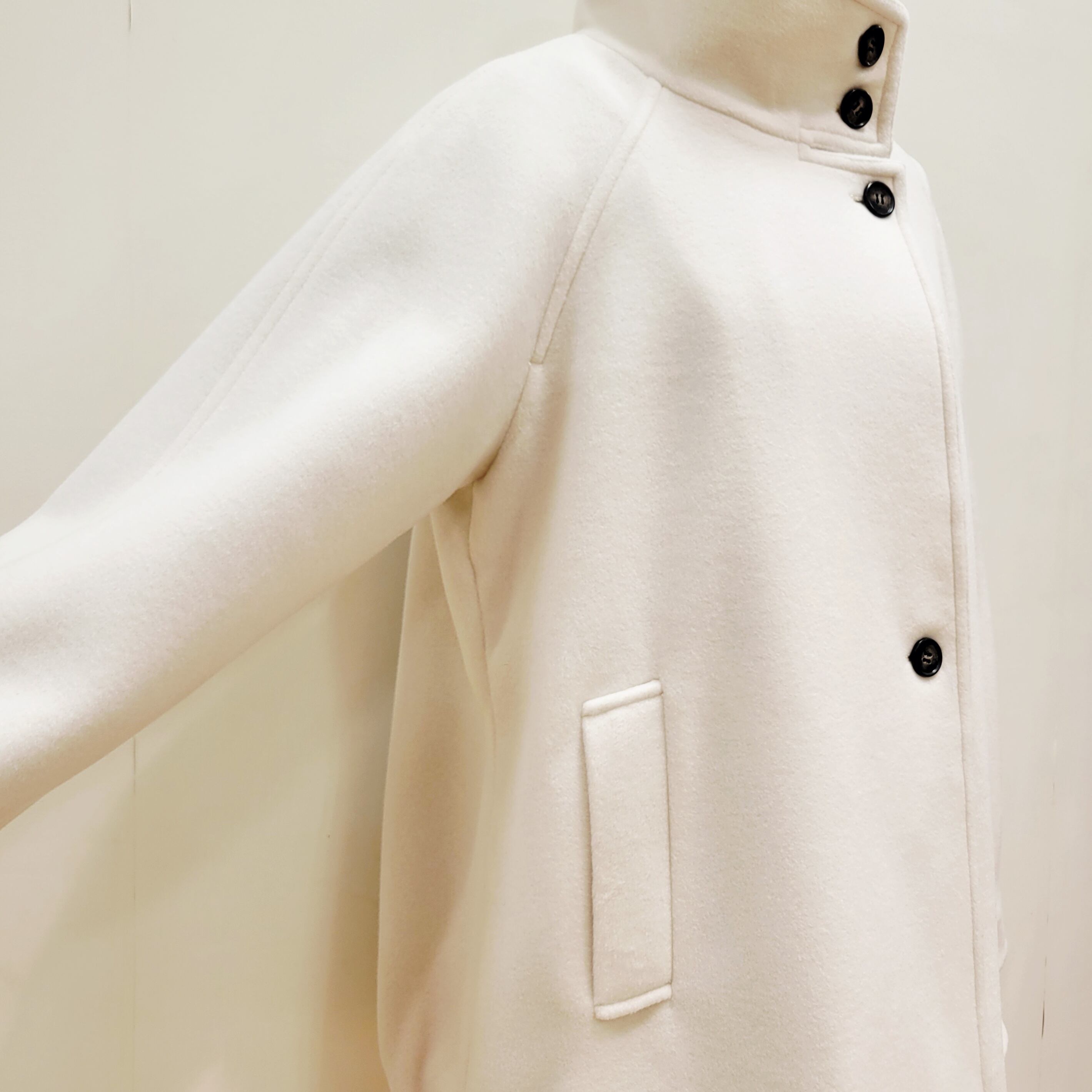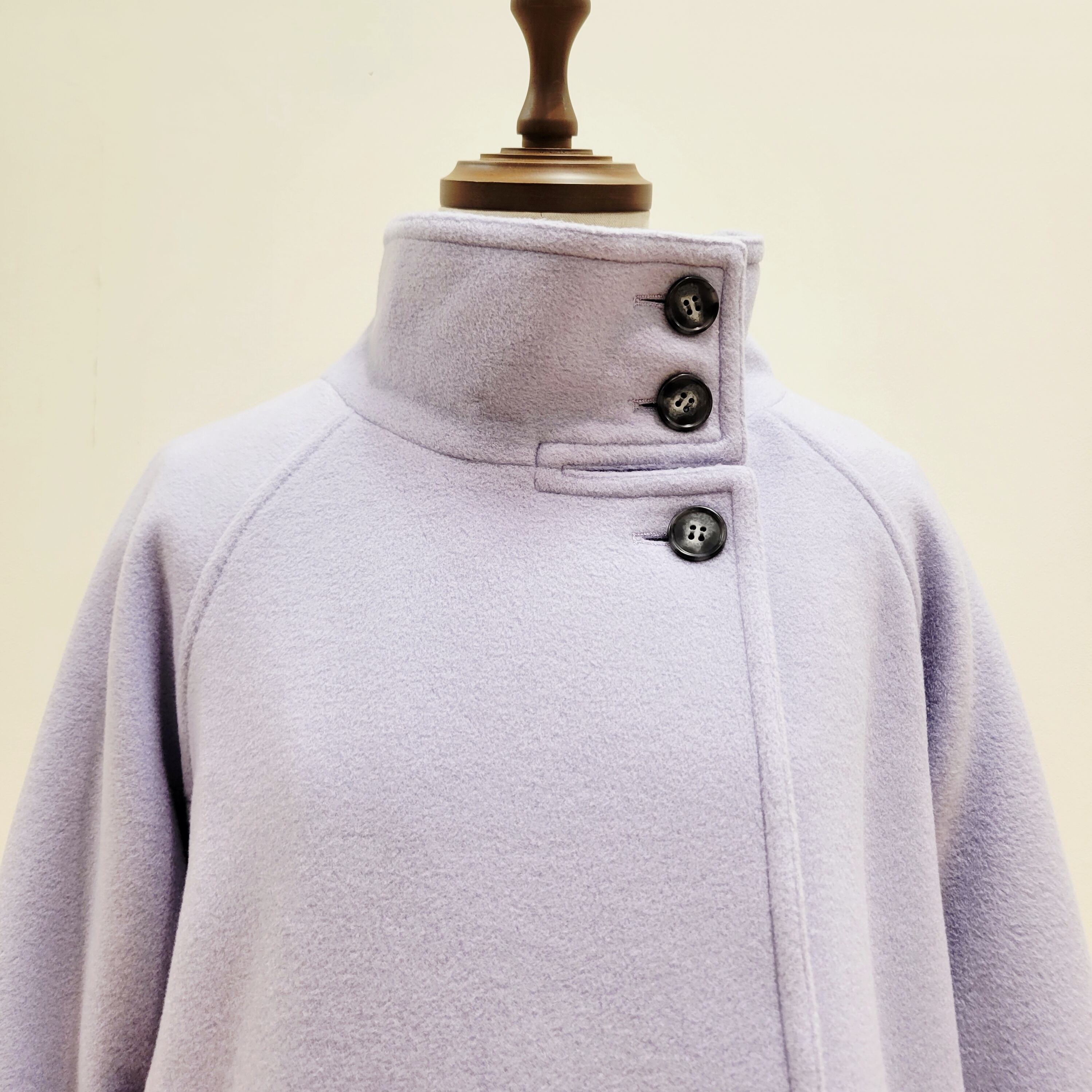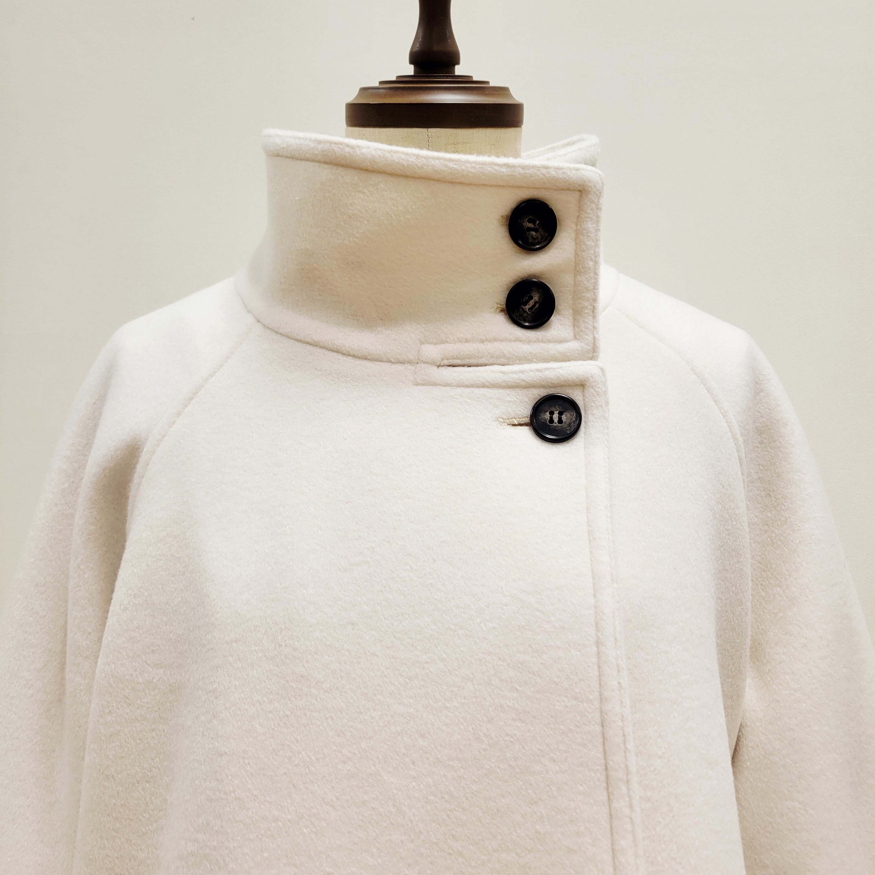 イタリア製糸を使用した、スタンドカラーコート。