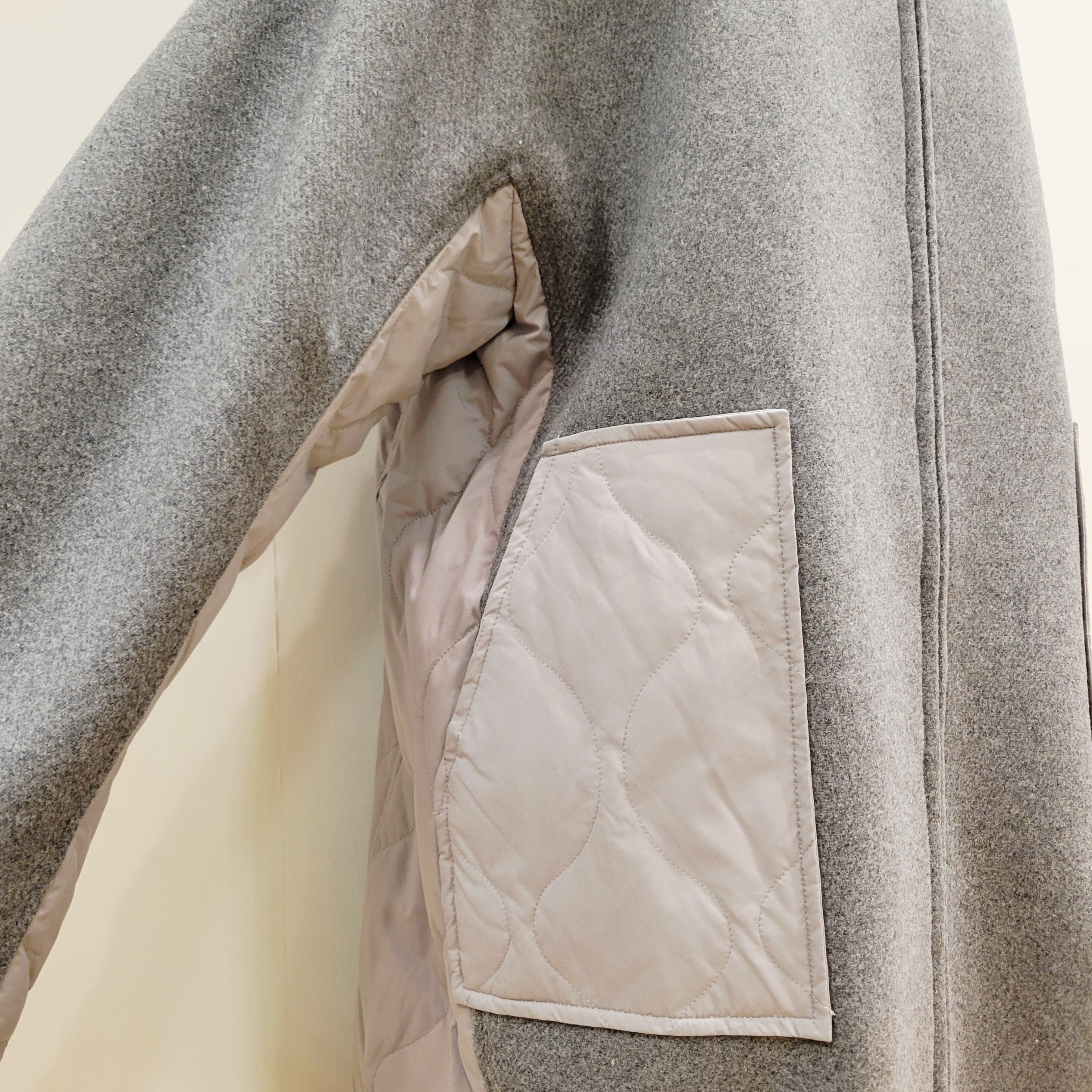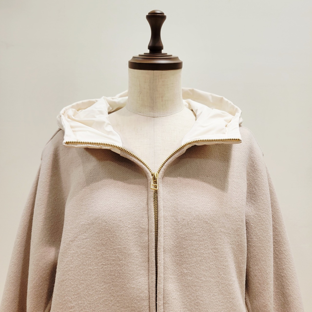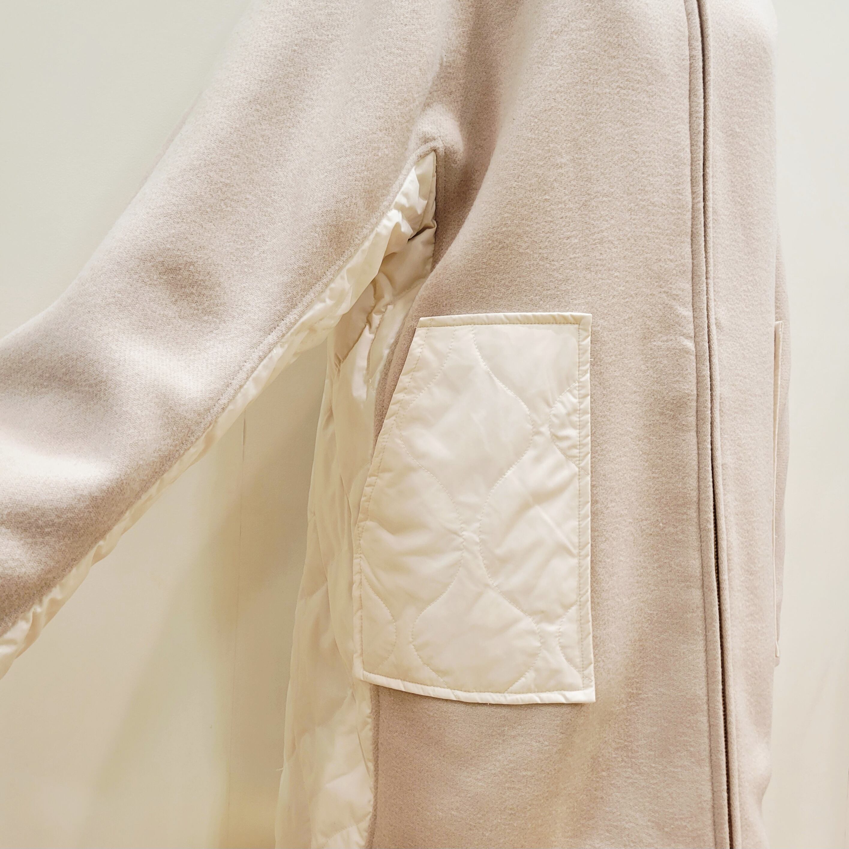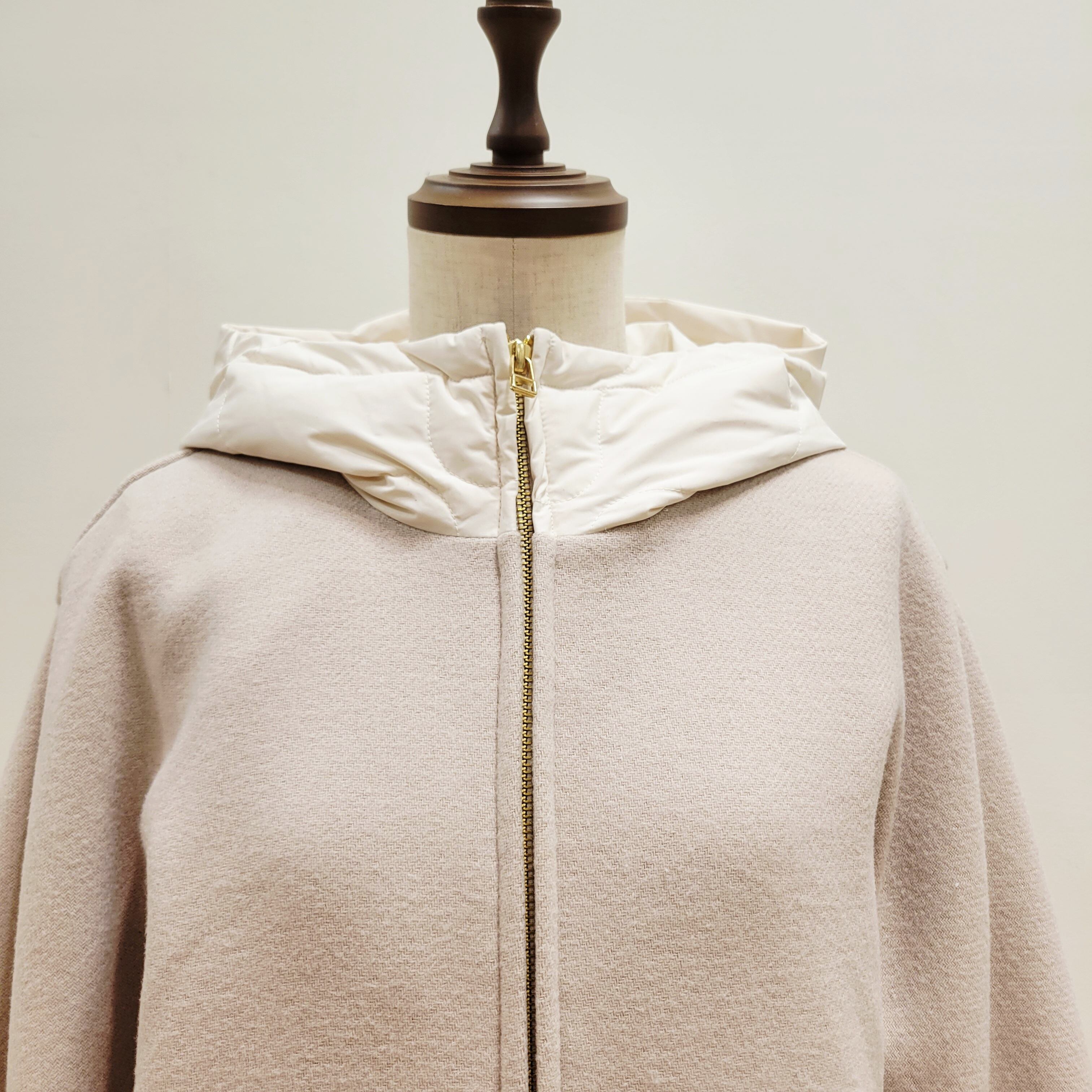 表面はふんわりとしたウールタッチと、裏には軽量なダウンを使用。
