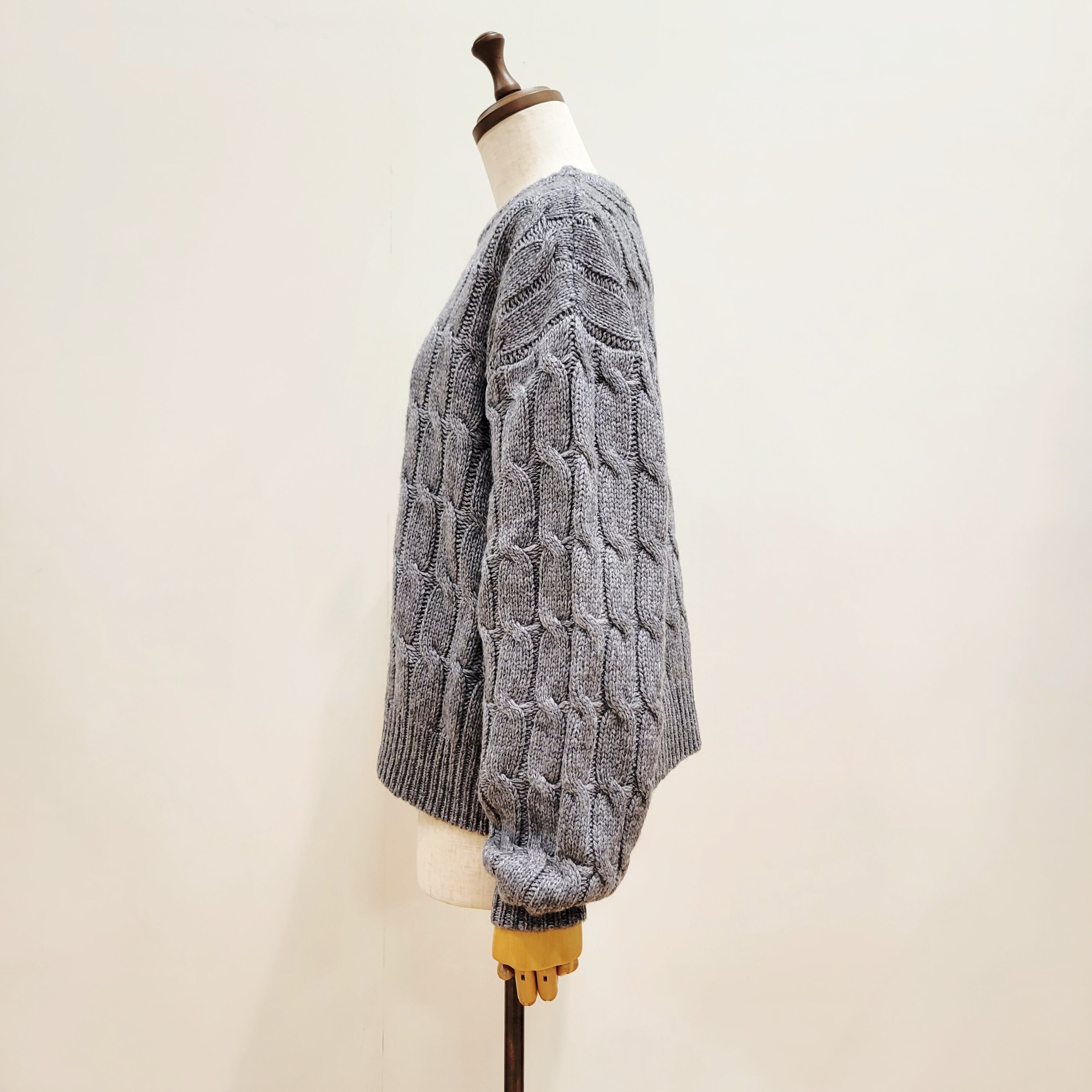 ざっくりと編まれた編み目が特徴のケーブルニットプルオーバー。軽くて暖かい、着まわしやすい一着です。