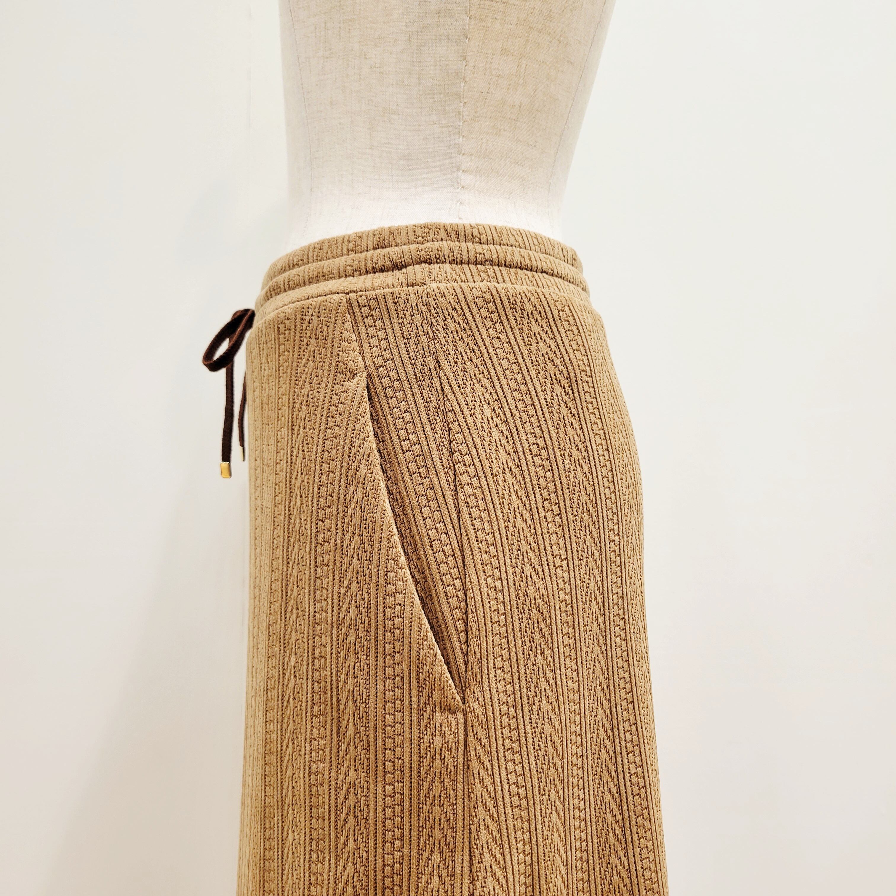 ウェストはゴム仕様、ドロスト付きで調整可能です。