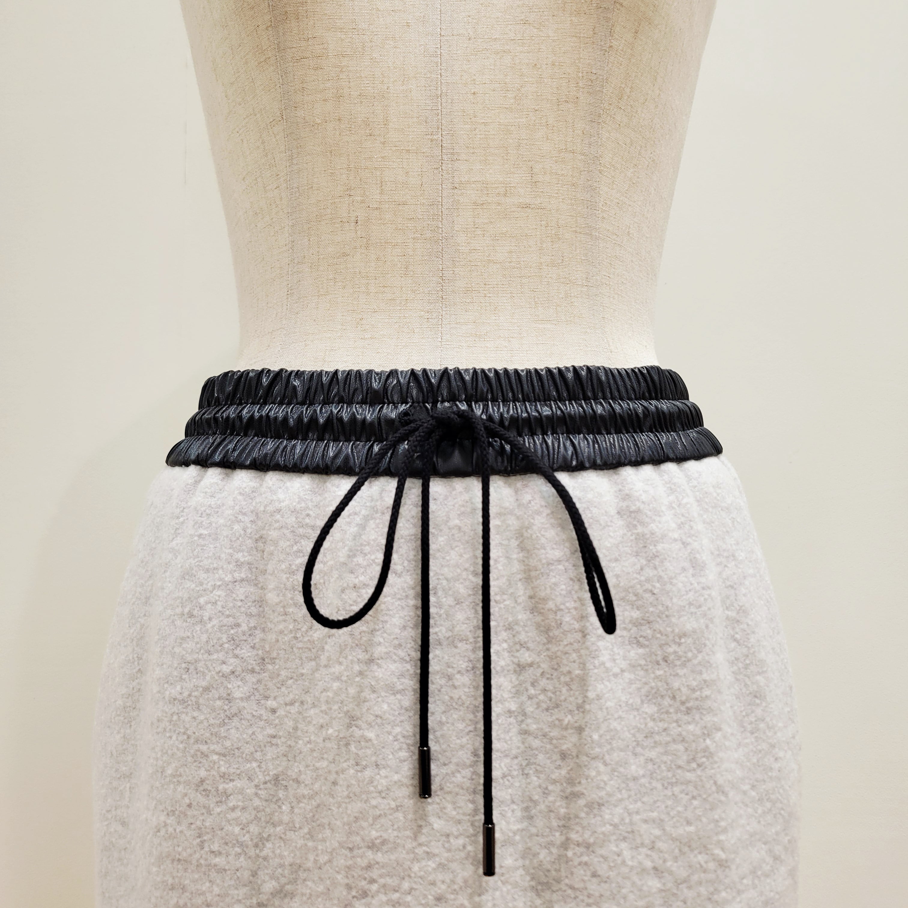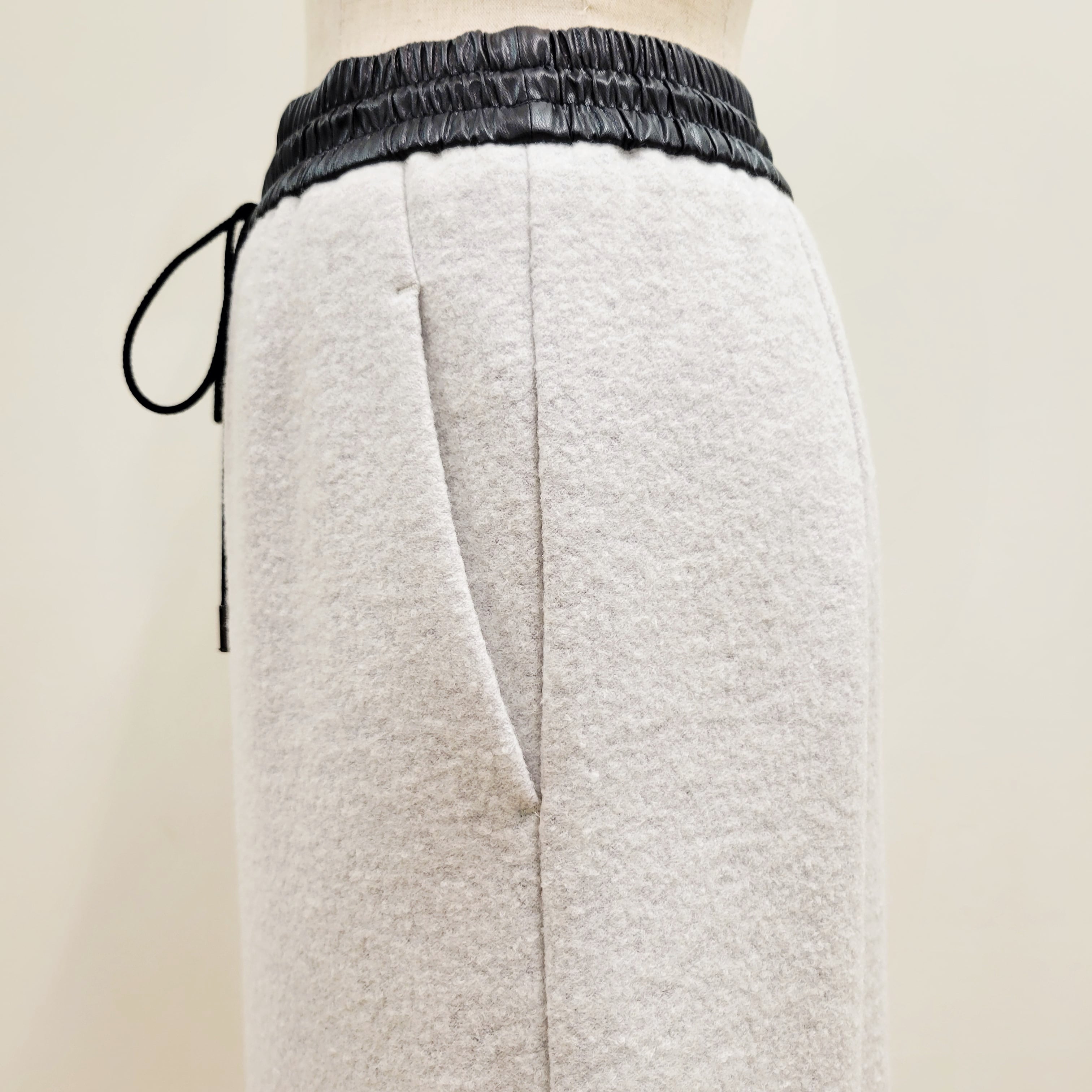 ウェストはゴム仕様、ドロスト付きで調整可能です。