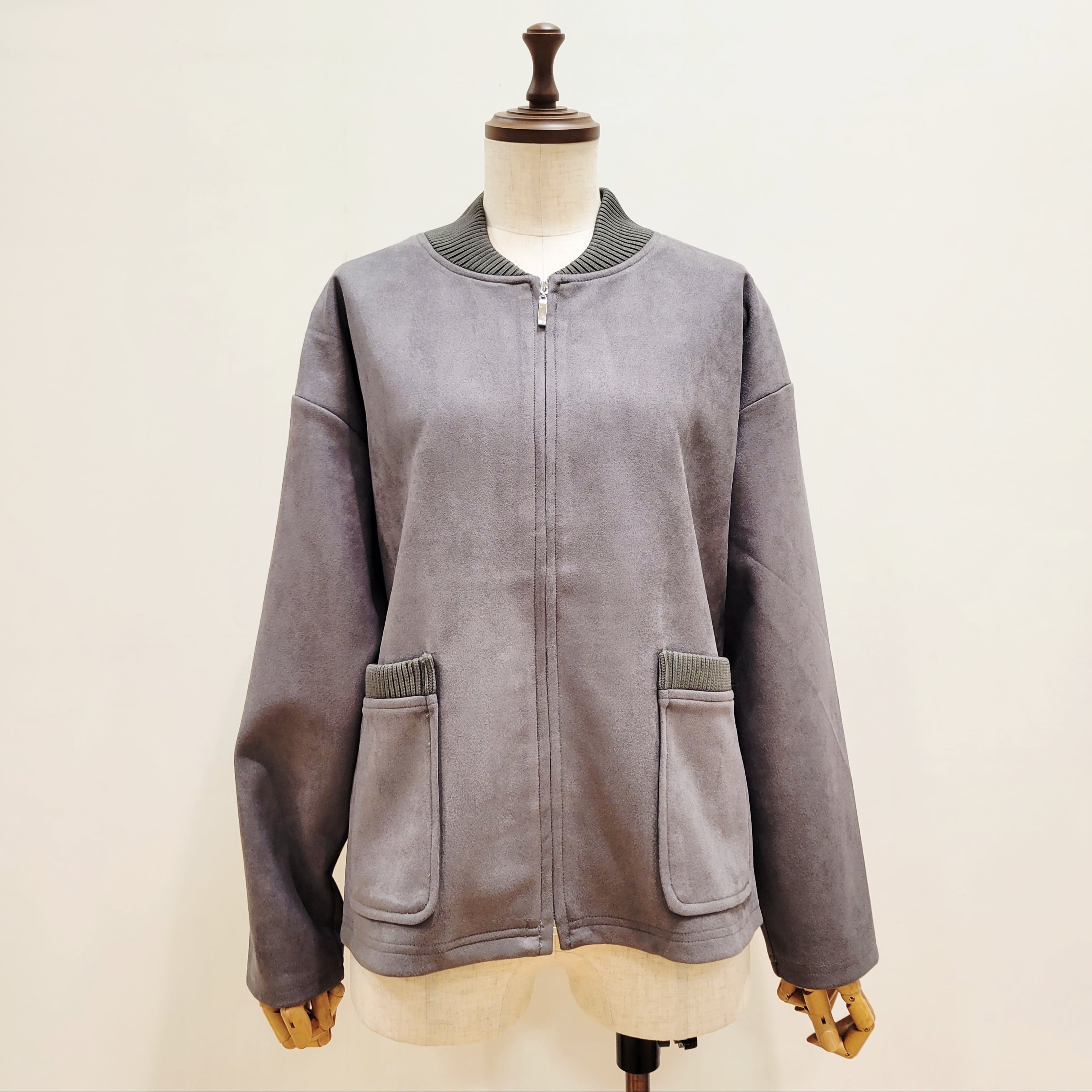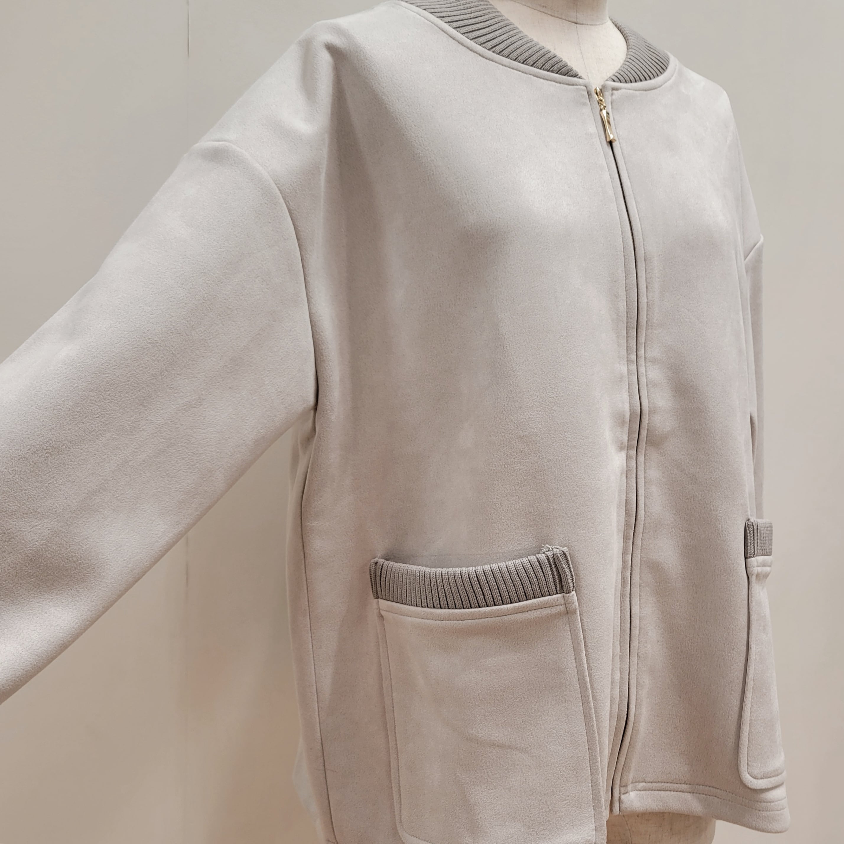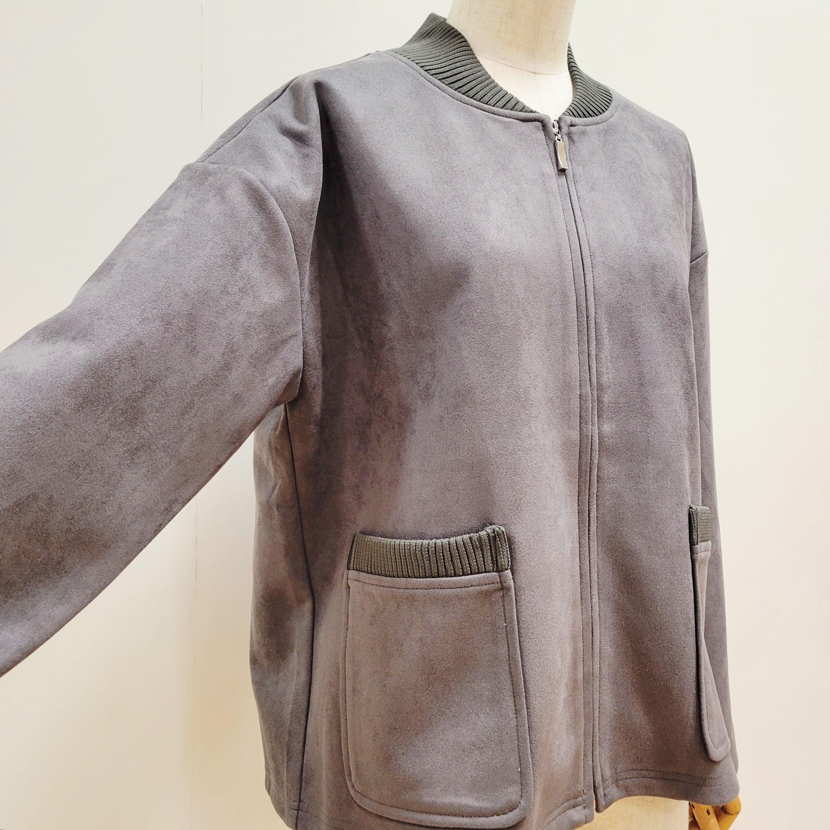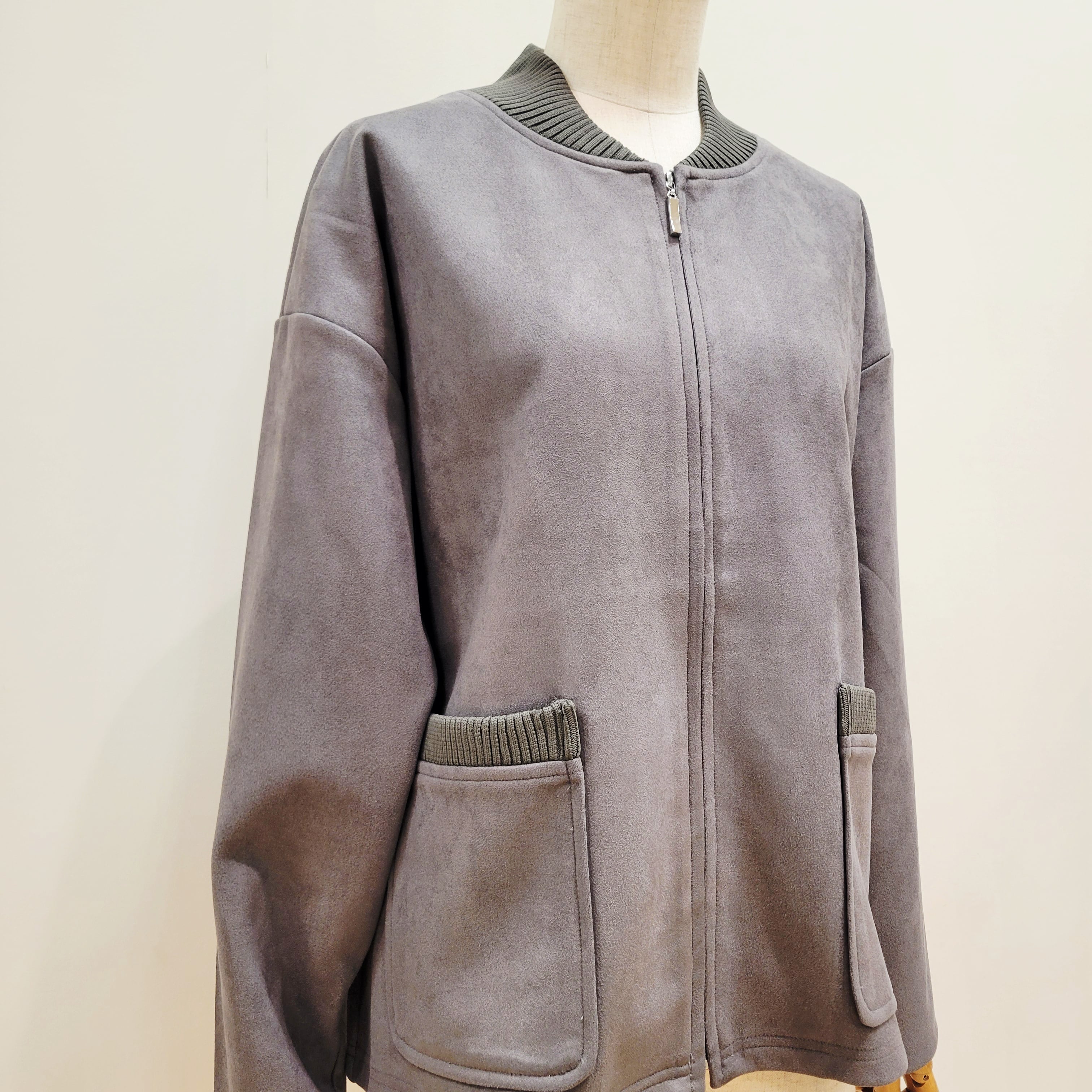 上品感のあるフェイクスエード素材を用いたブルゾン。