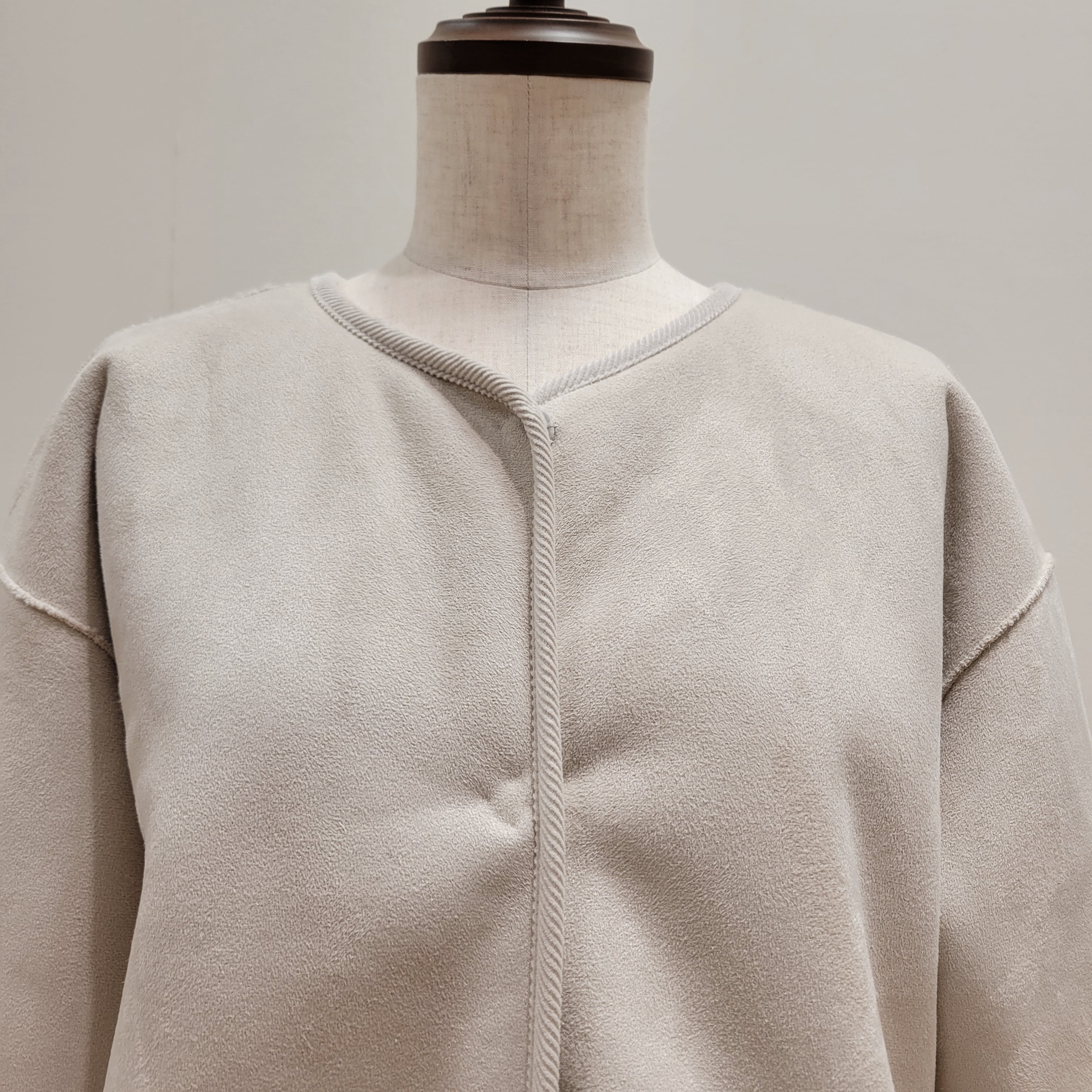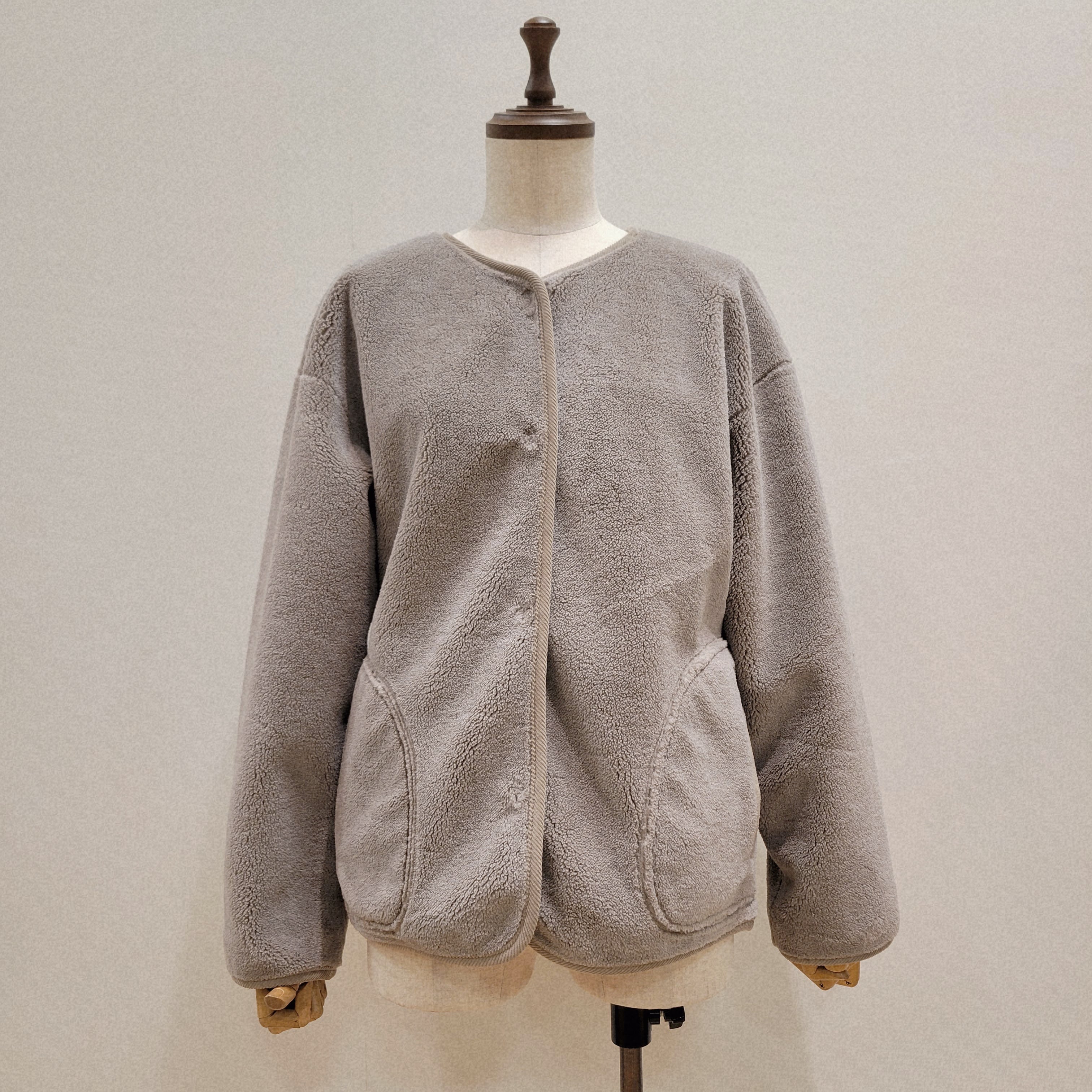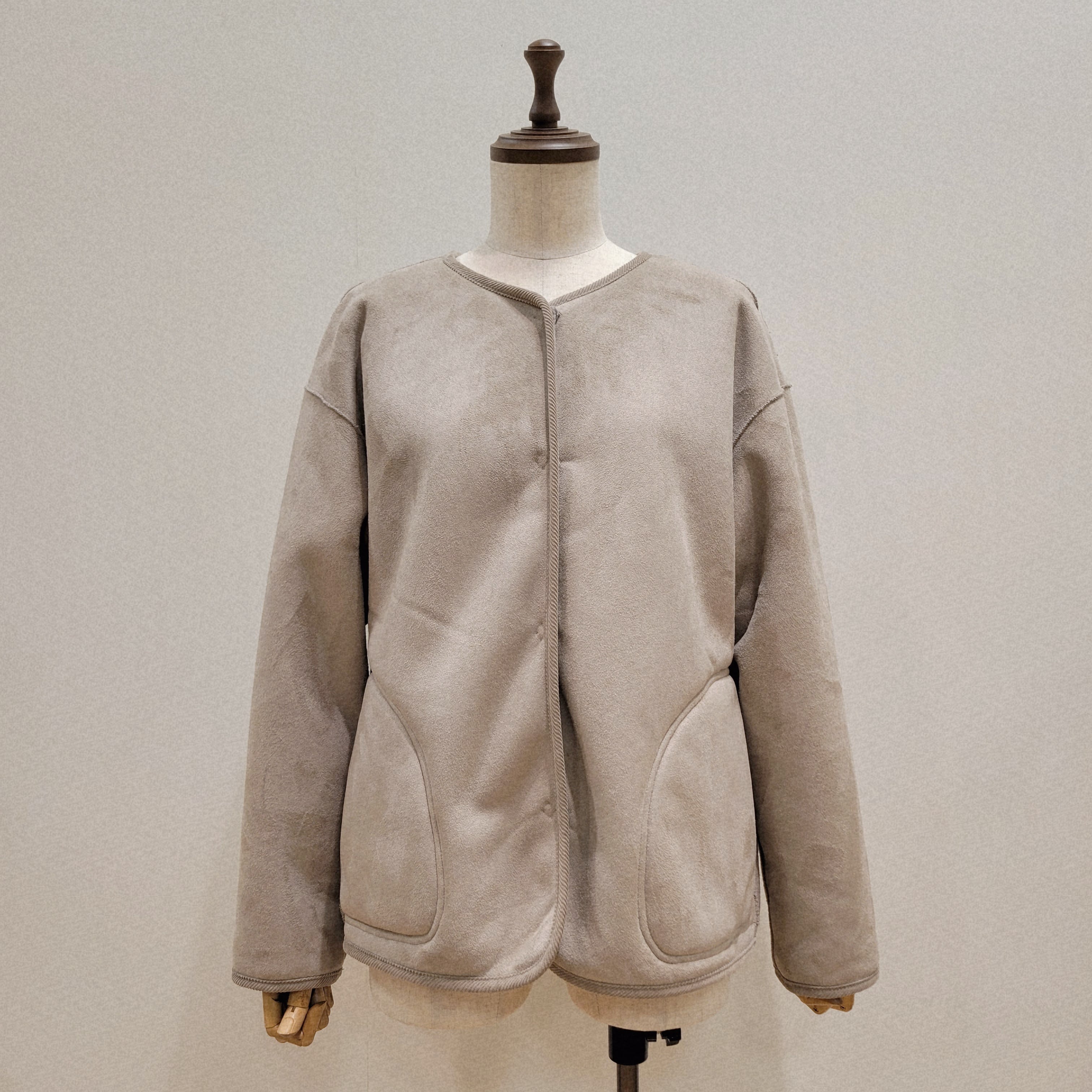 シンプルなオープンフロントデザインが特徴で、気軽に羽織れる一枚です。