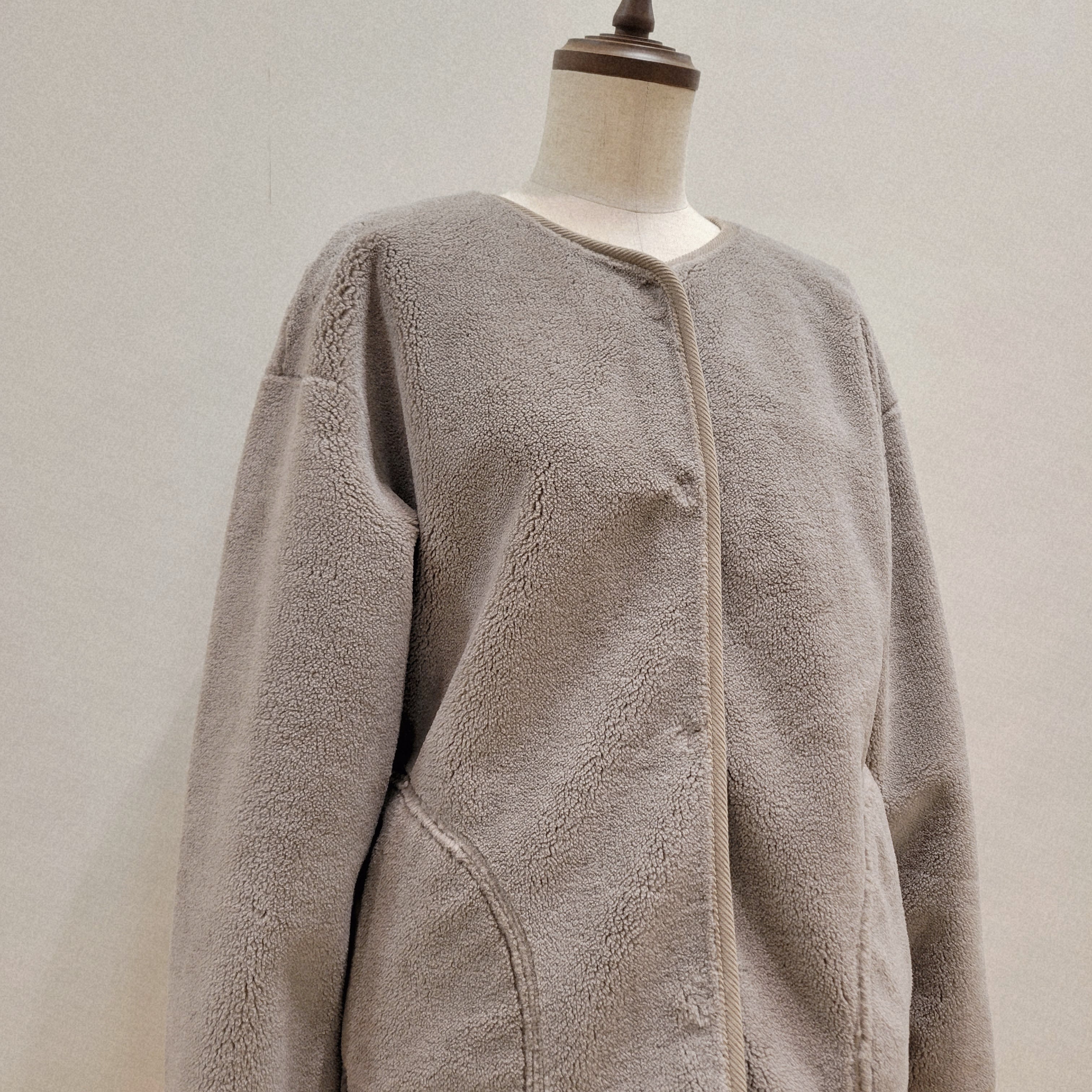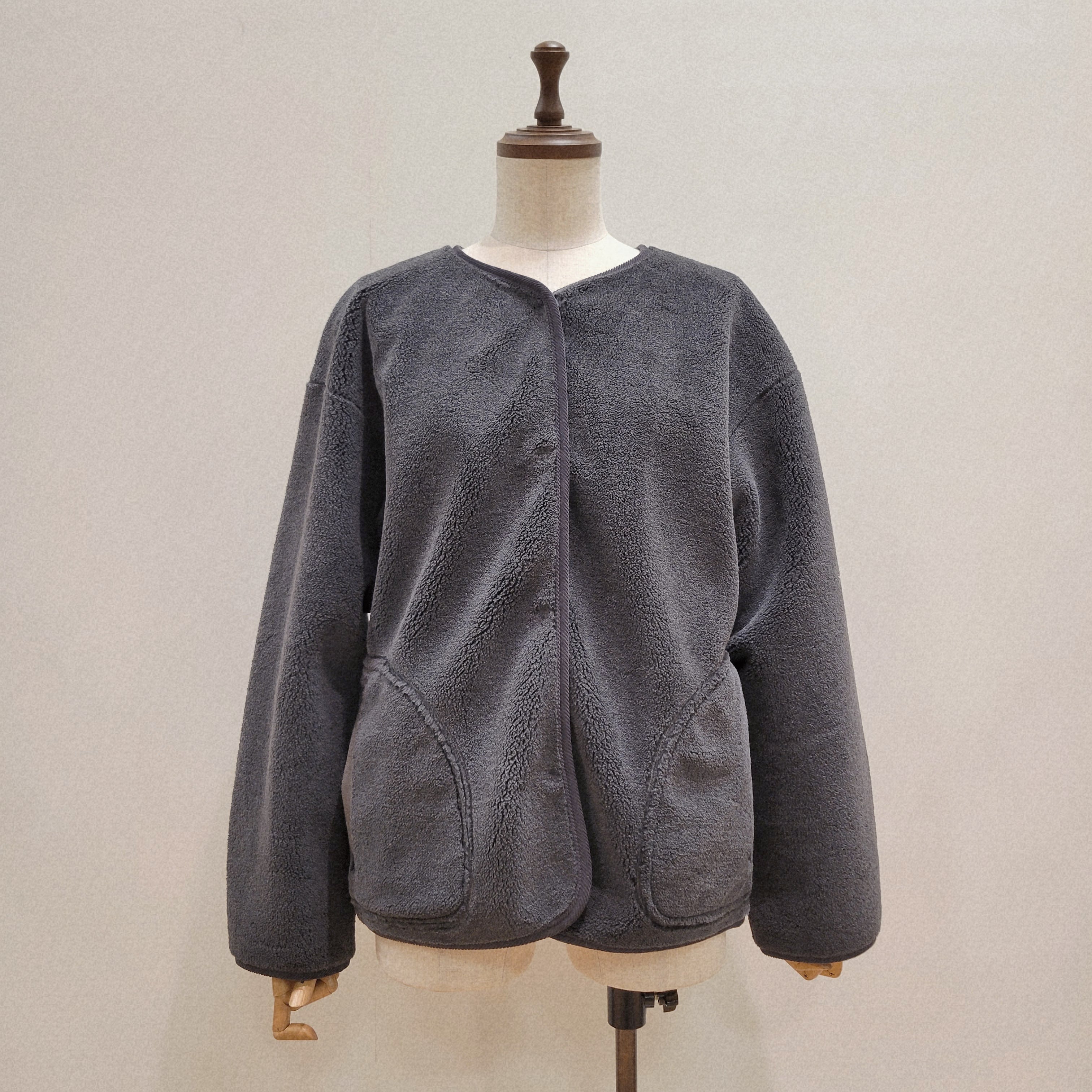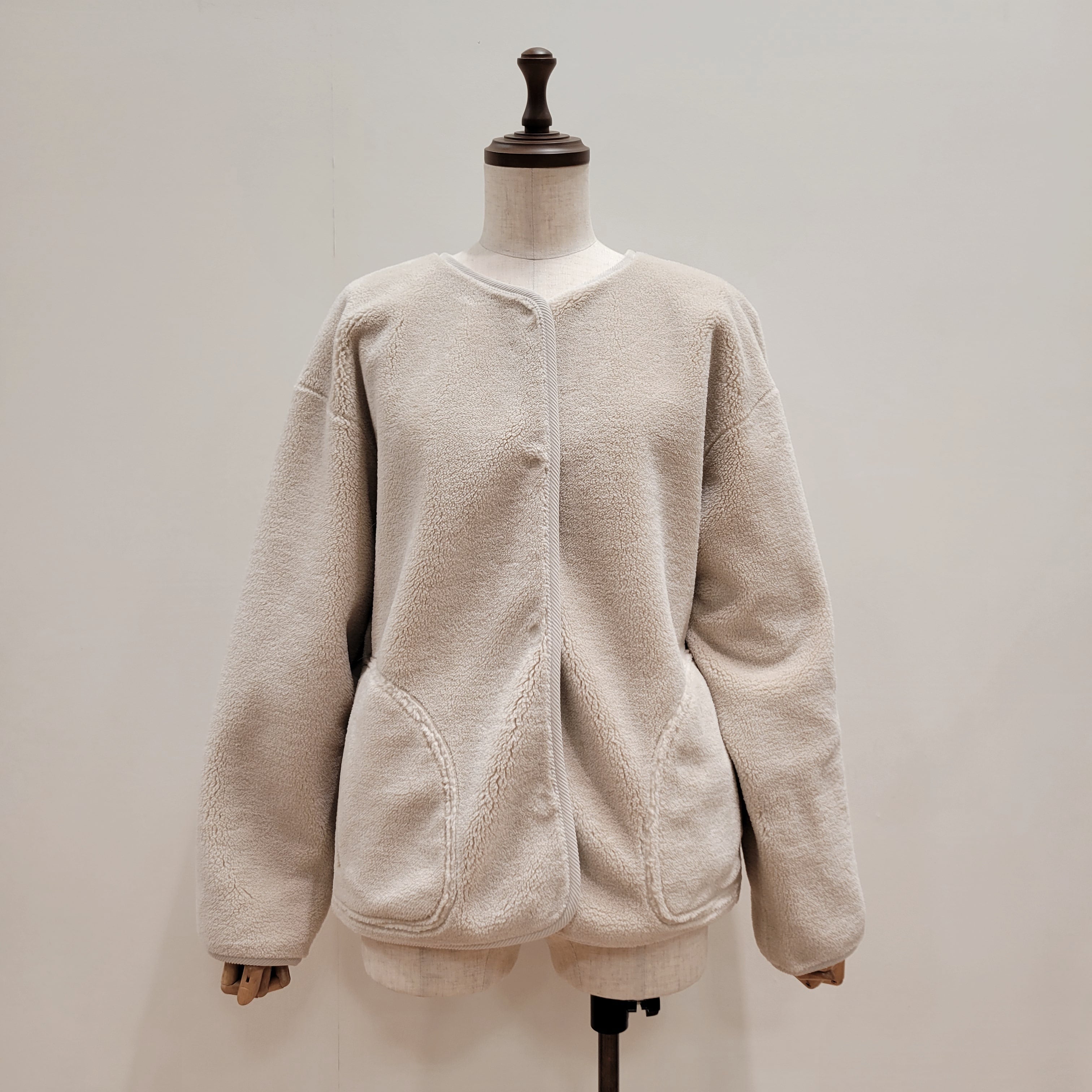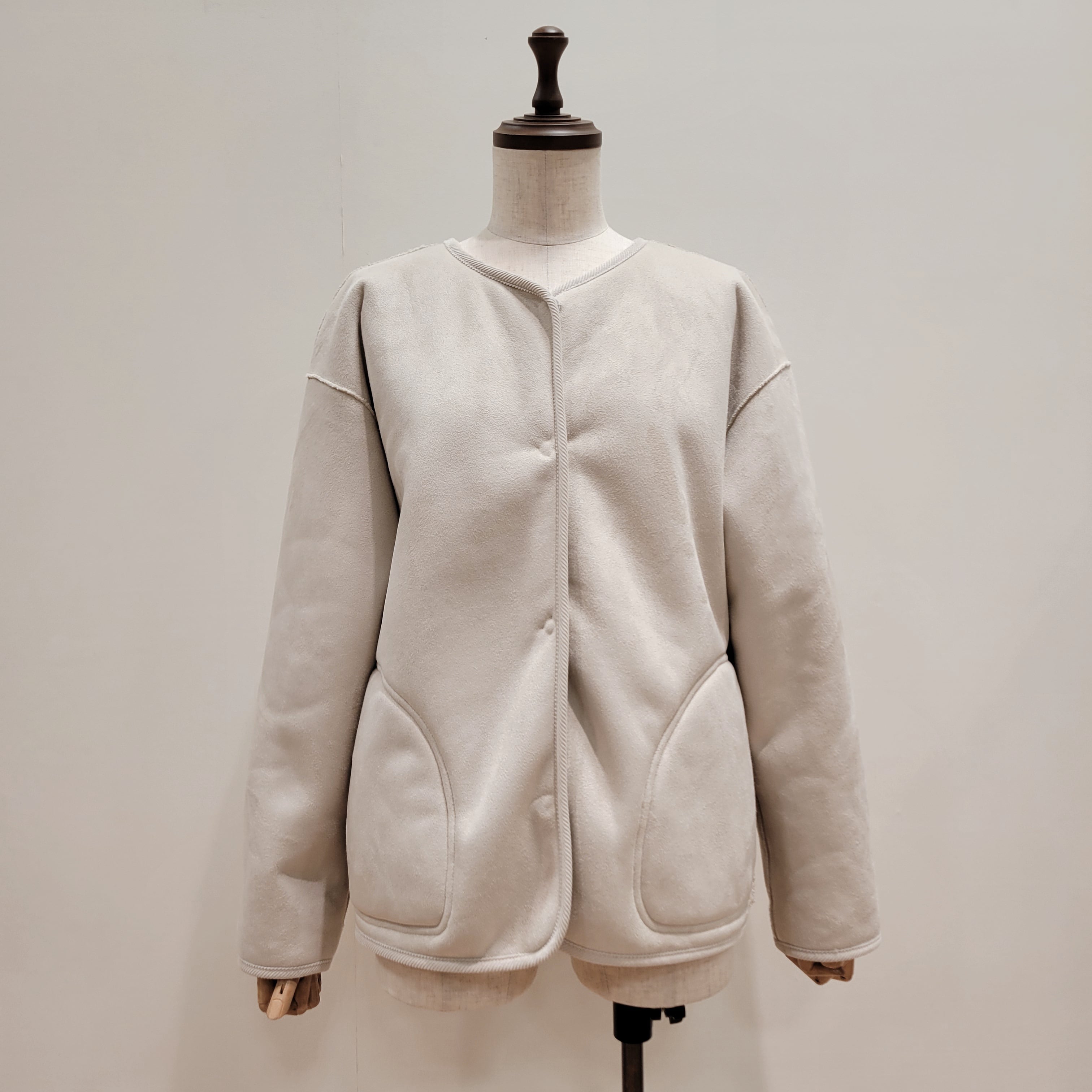 シンプルなオープンフロントデザインが特徴で、気軽に羽織れる一枚です。
