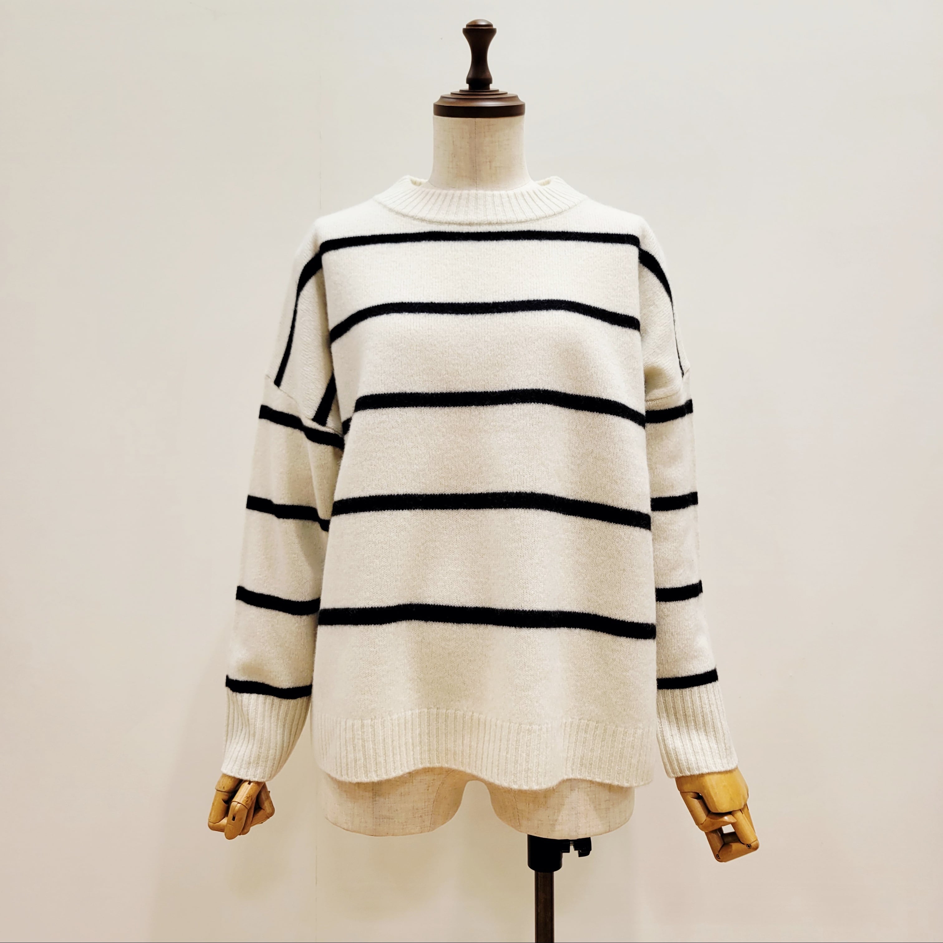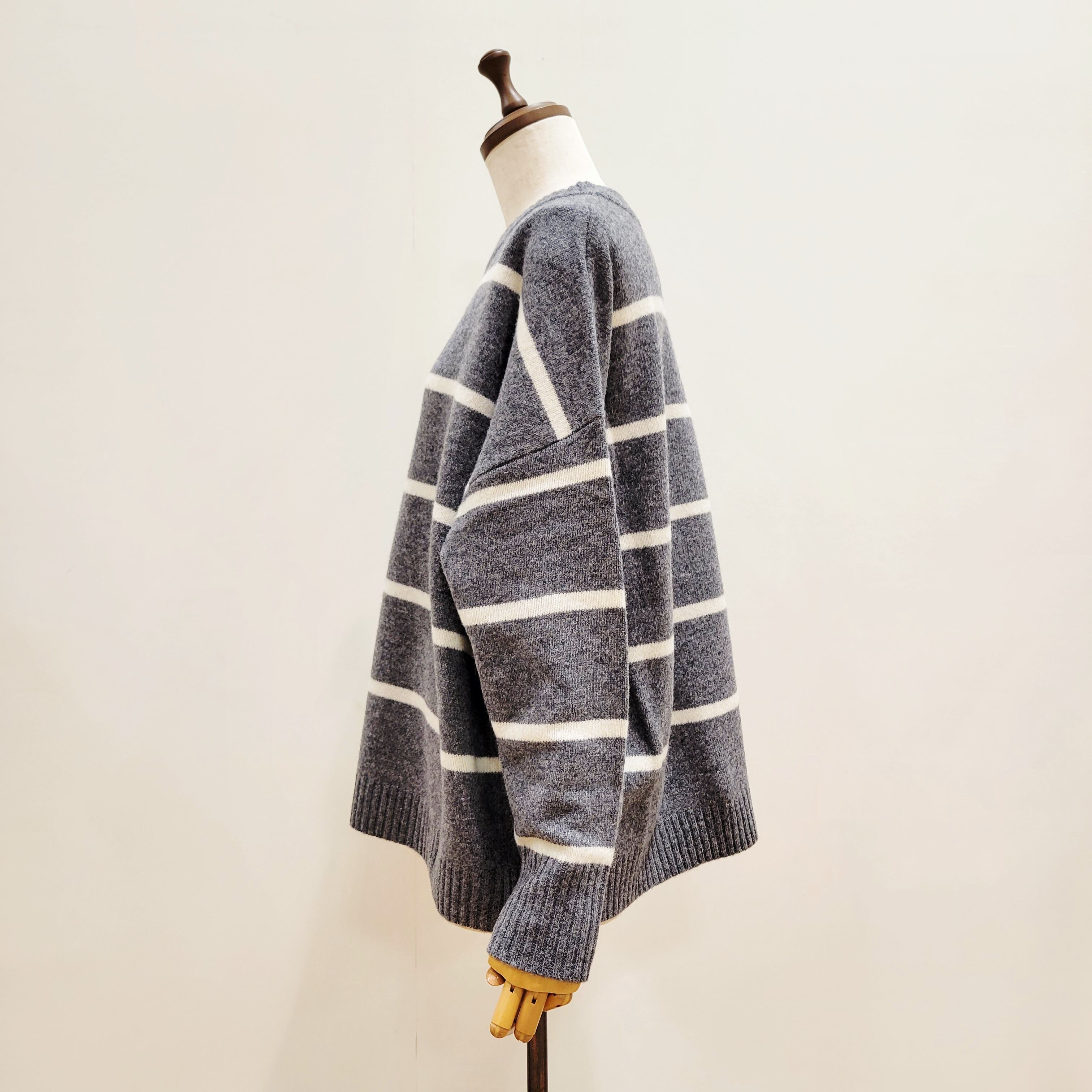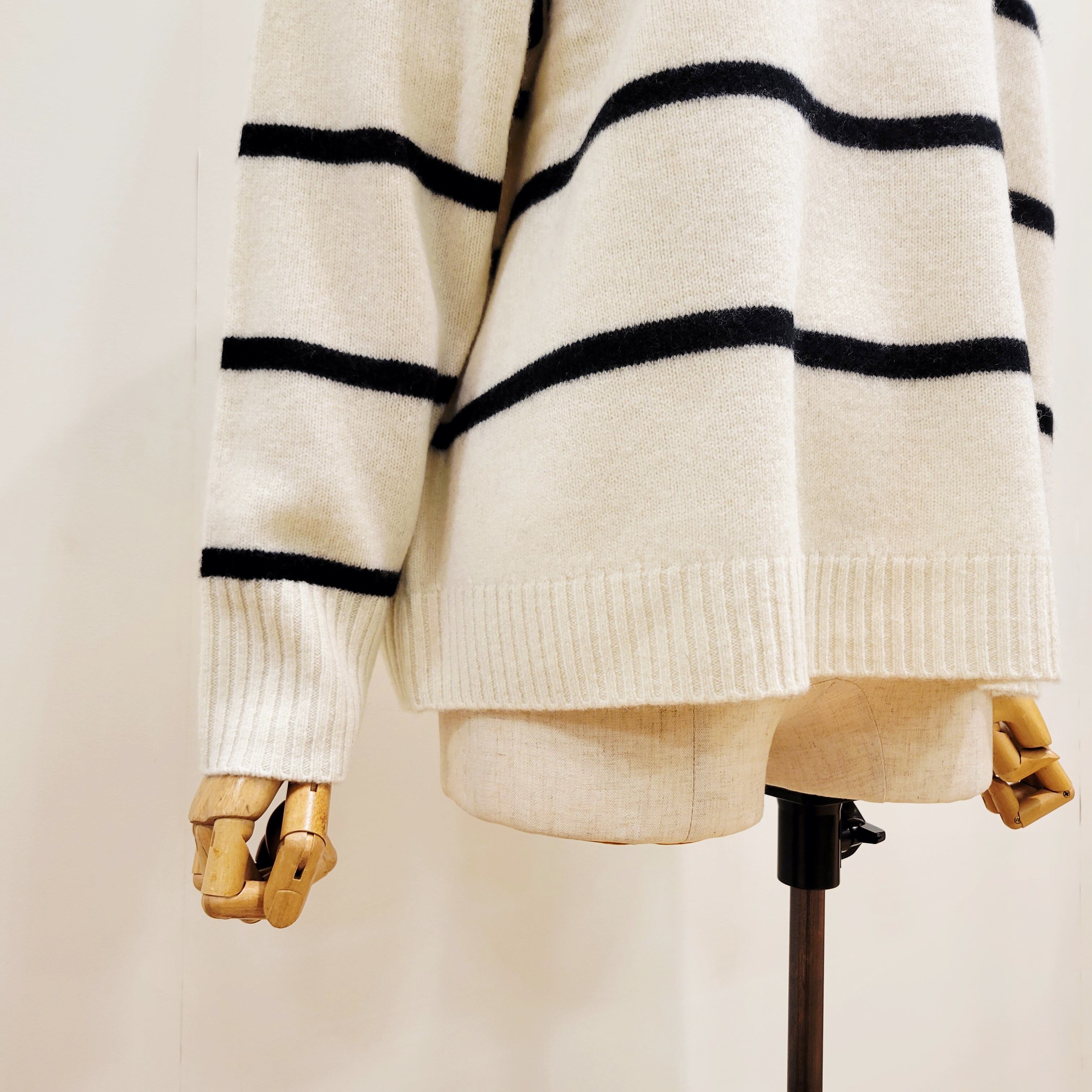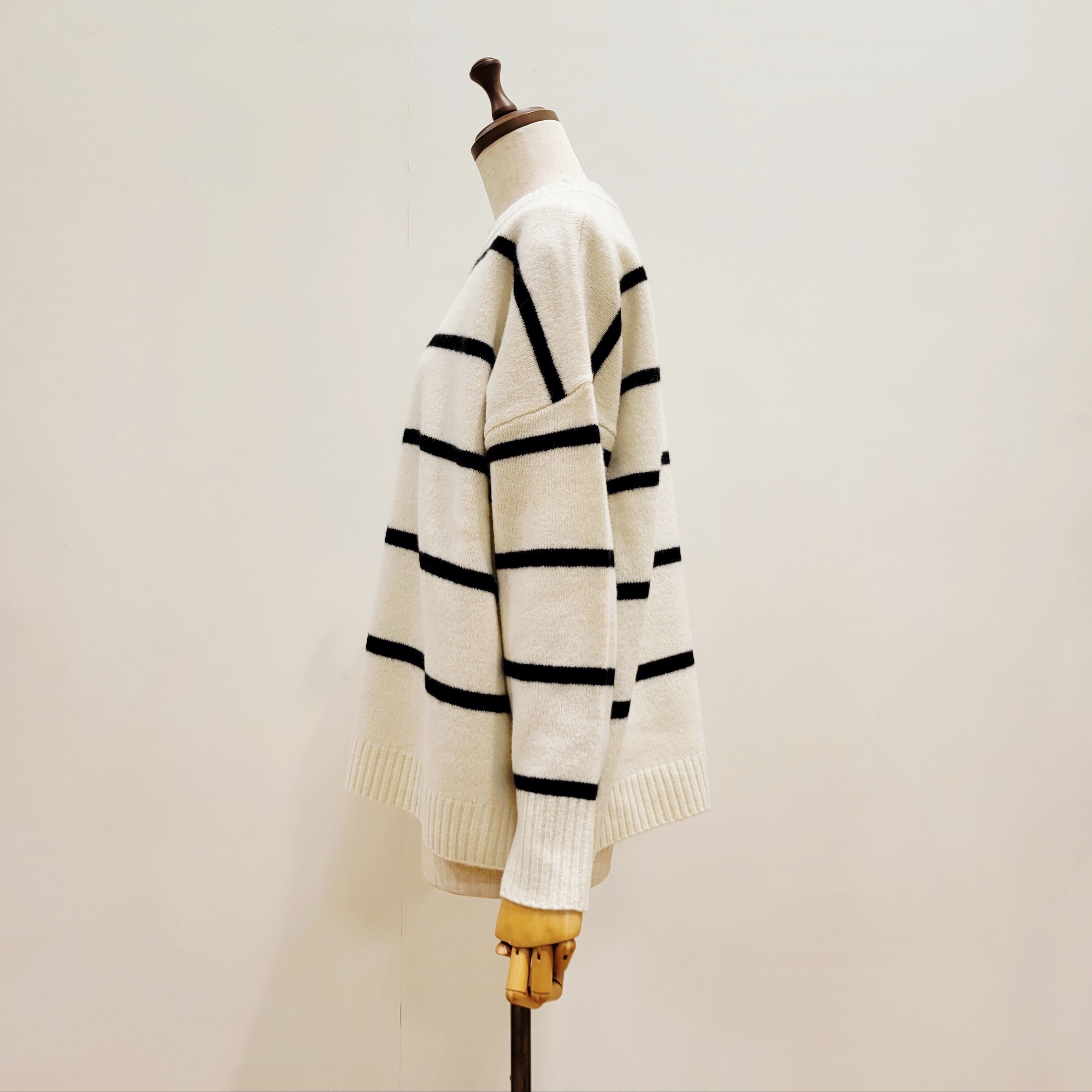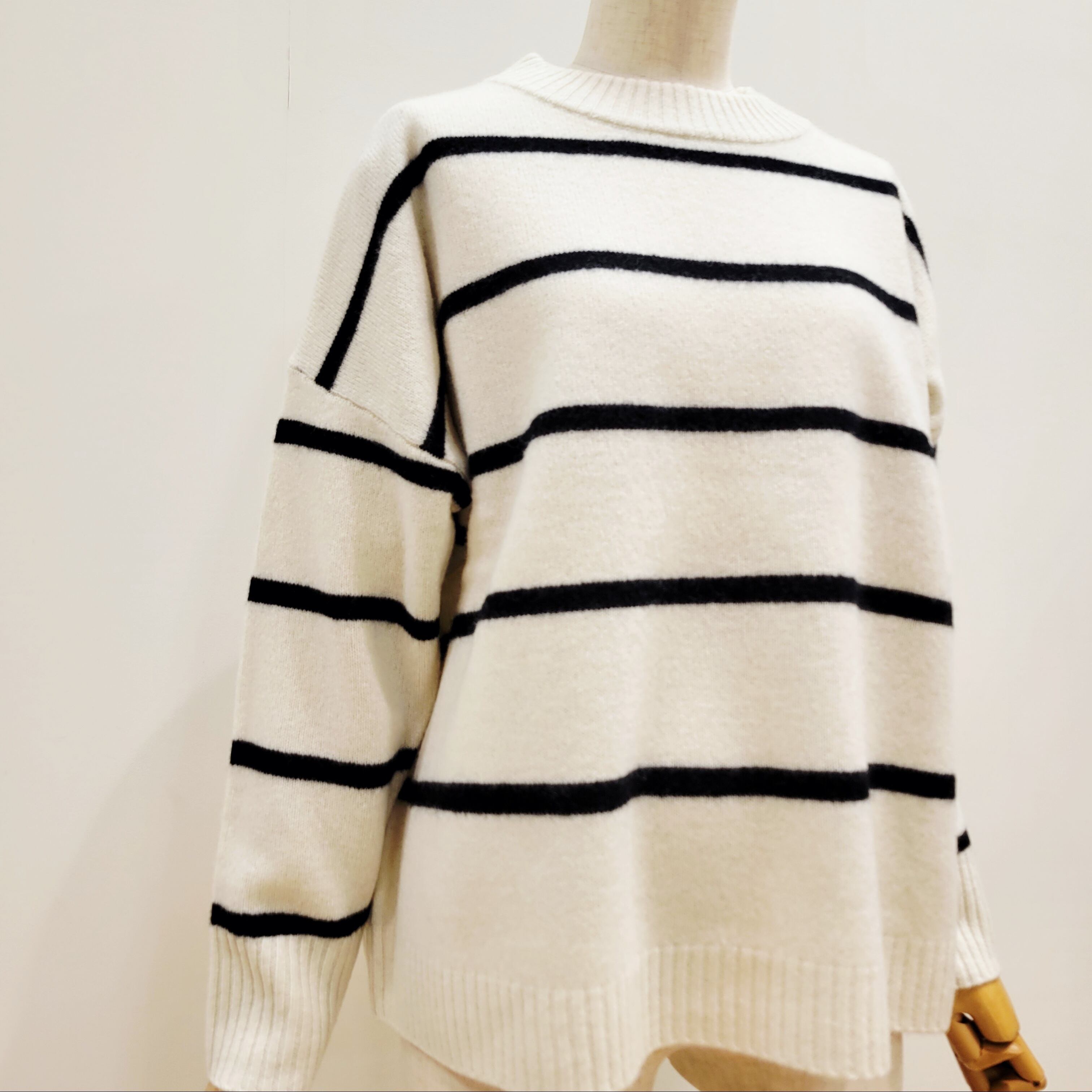 ゆったりとしたワイドシルエットのウオッシャブルウールボーダーニット。