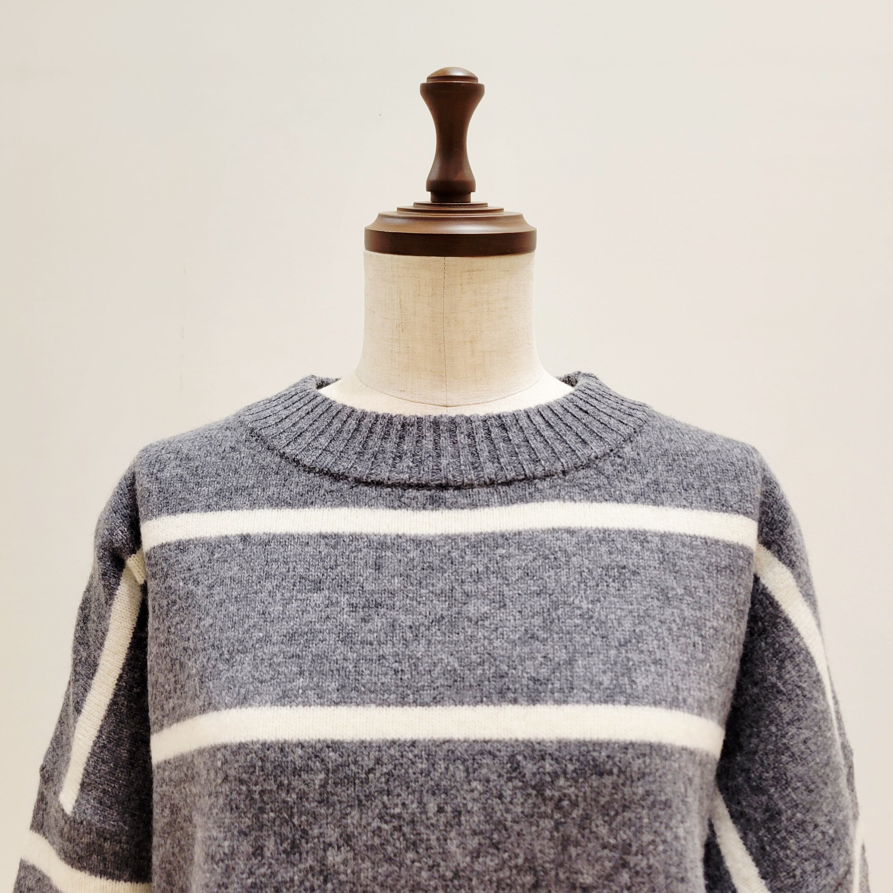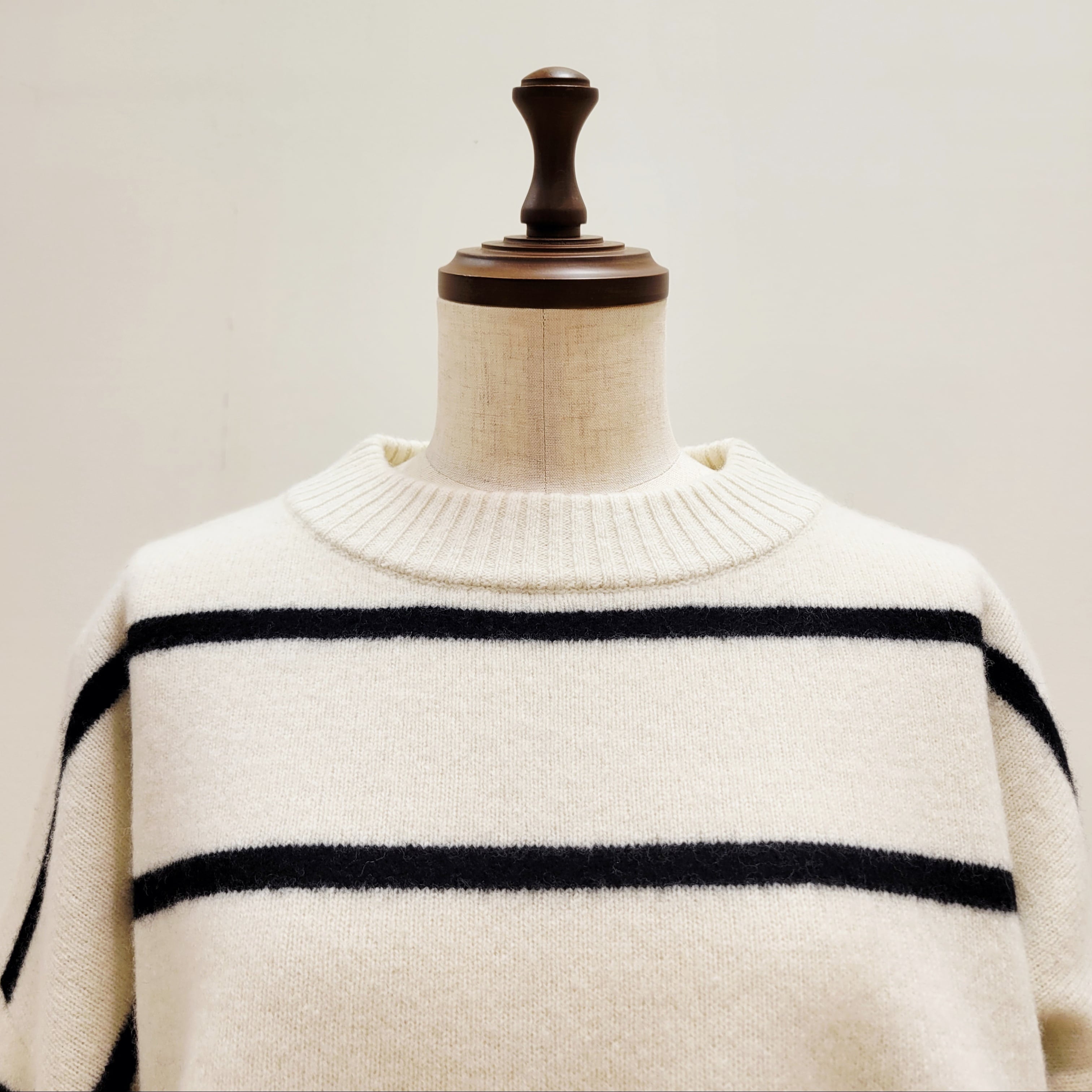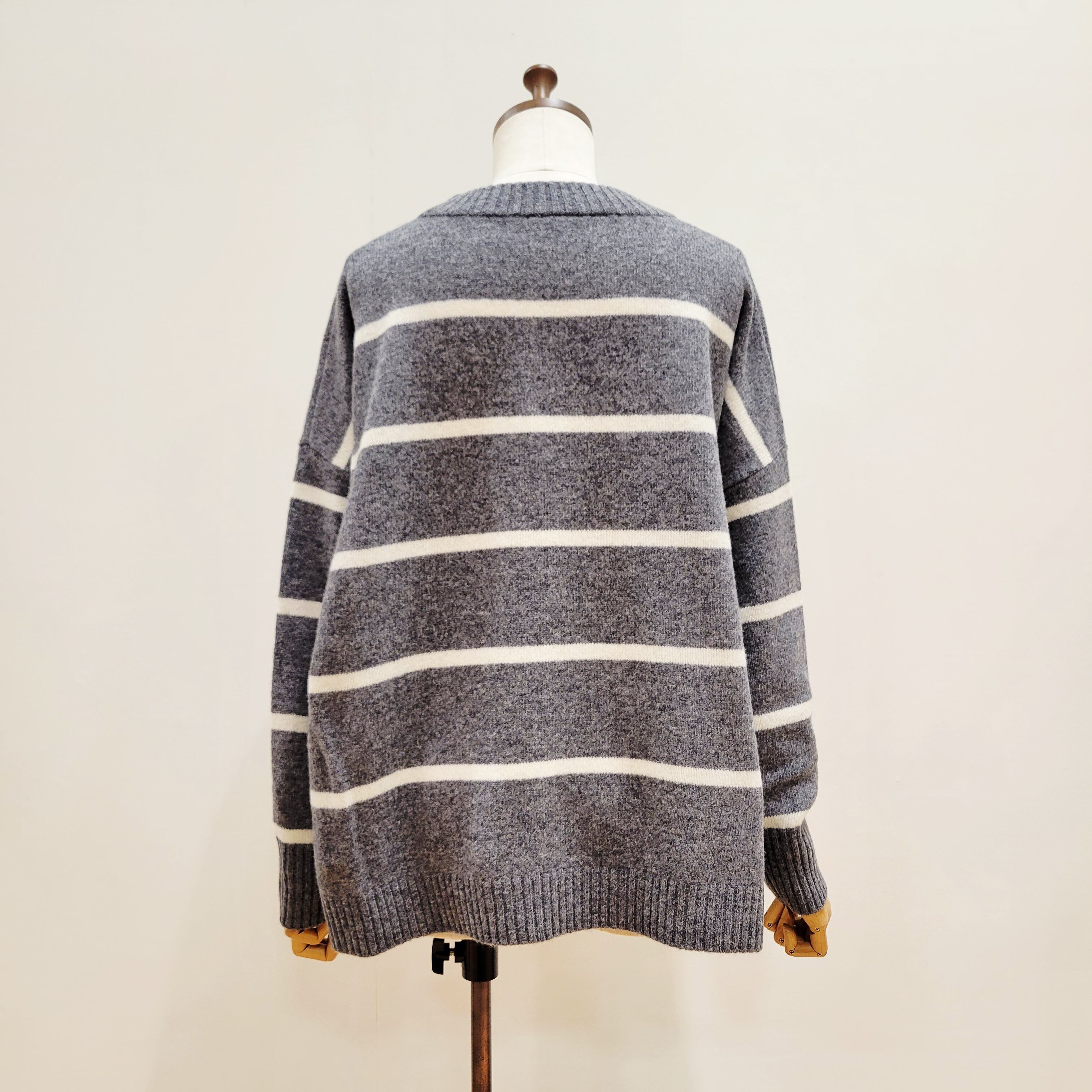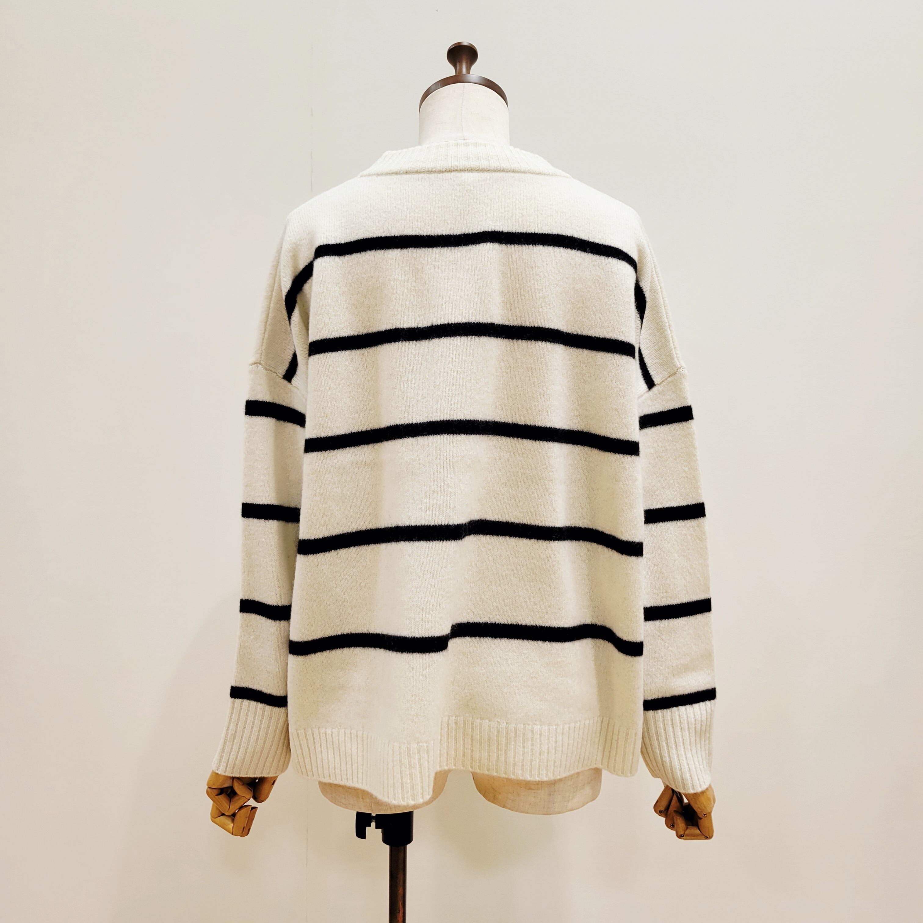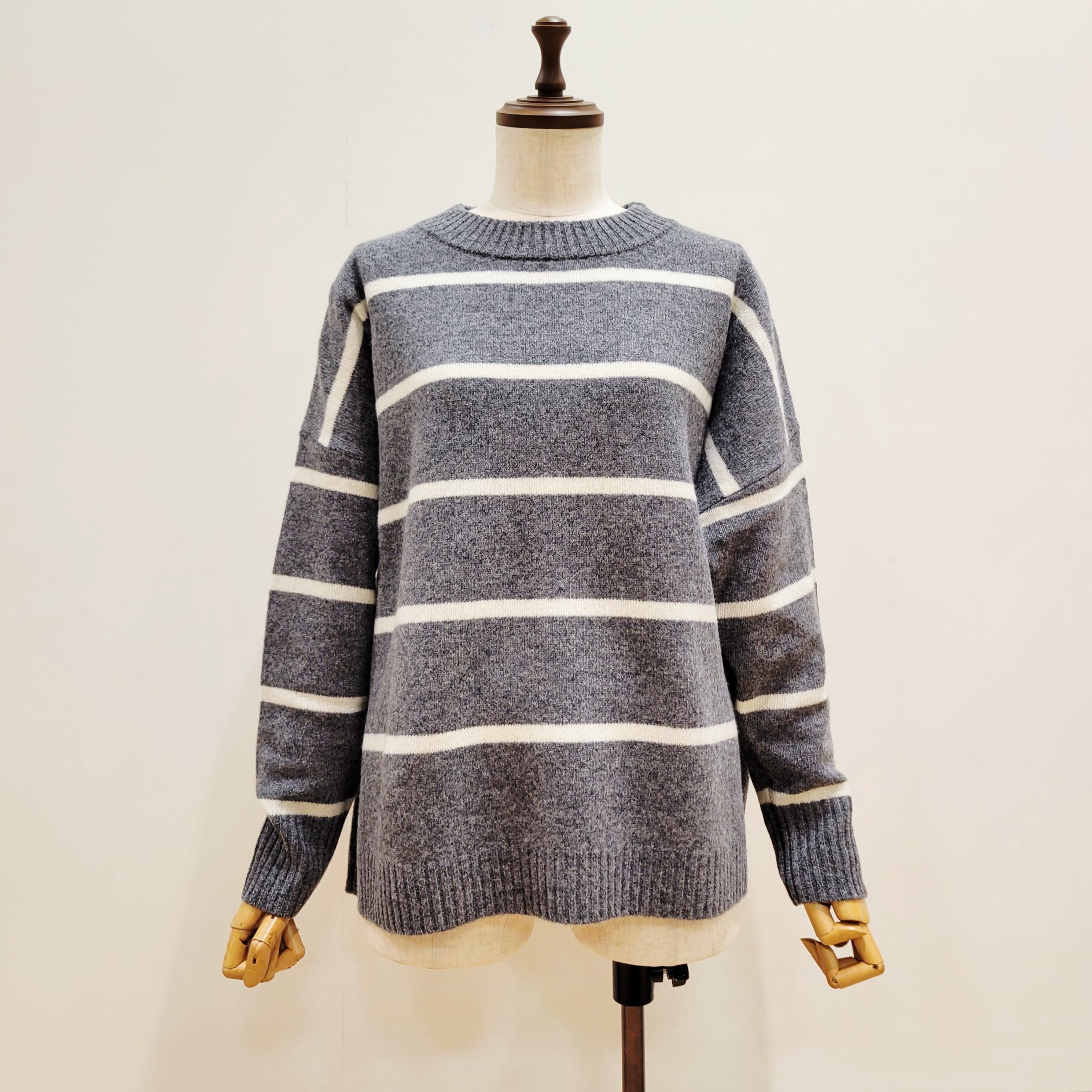ゆったりとしたワイドシルエットのウオッシャブルウールボーダーニット。
