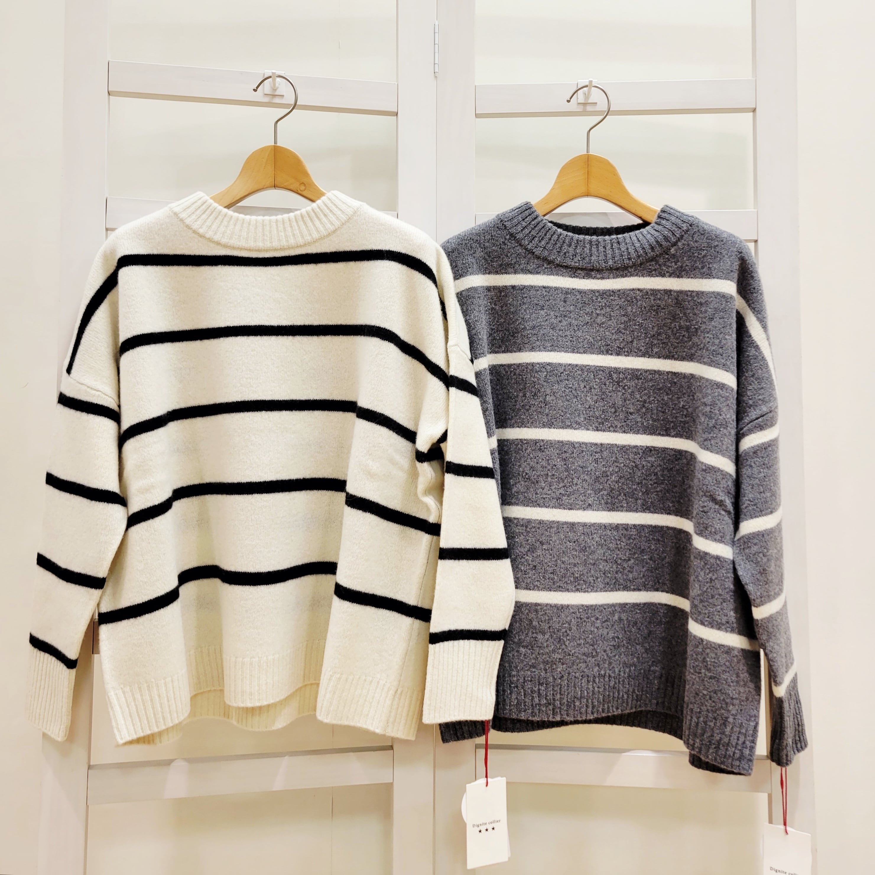 【Dignite collier(ディニテコリエ)】ウォッシャブル ウールボーダーニット