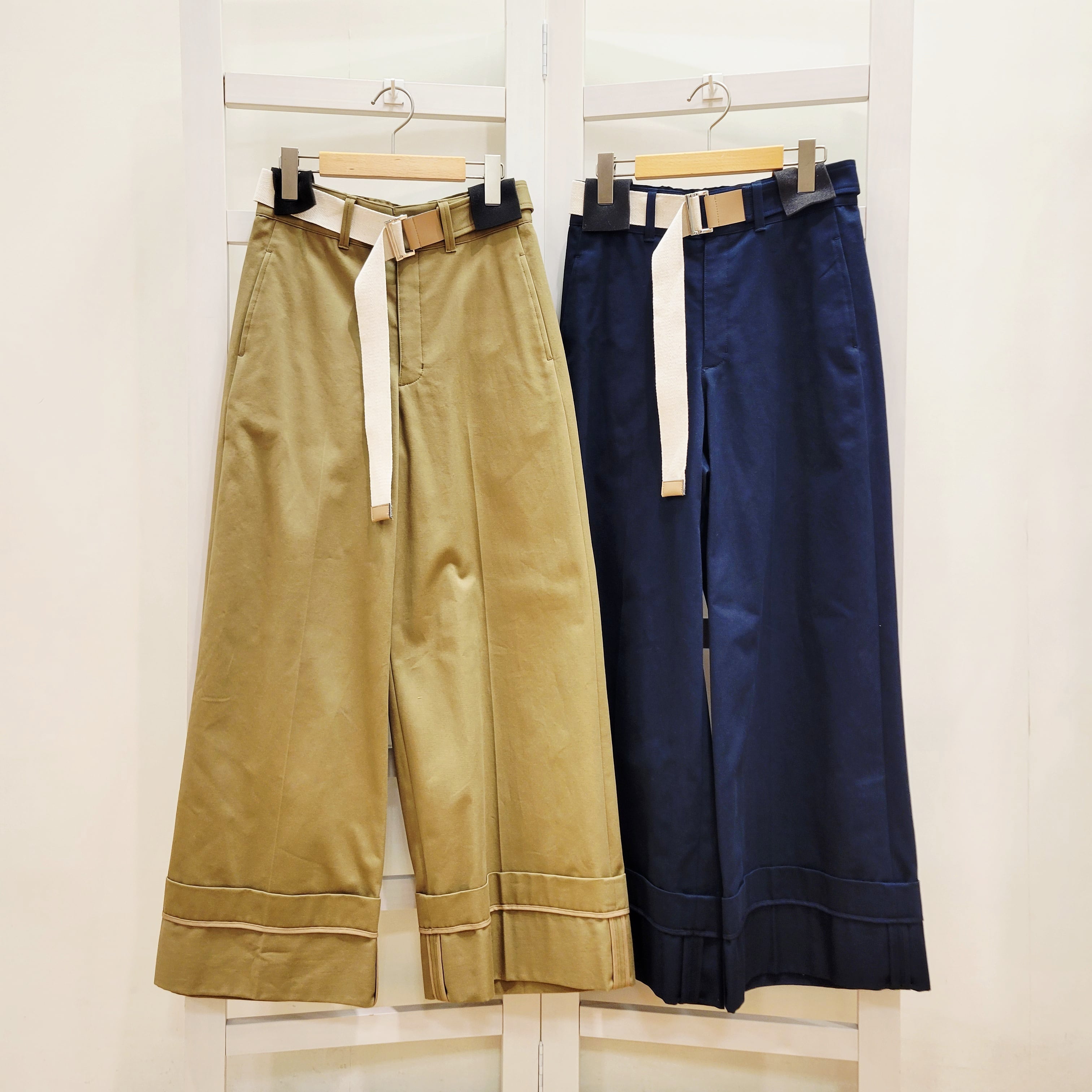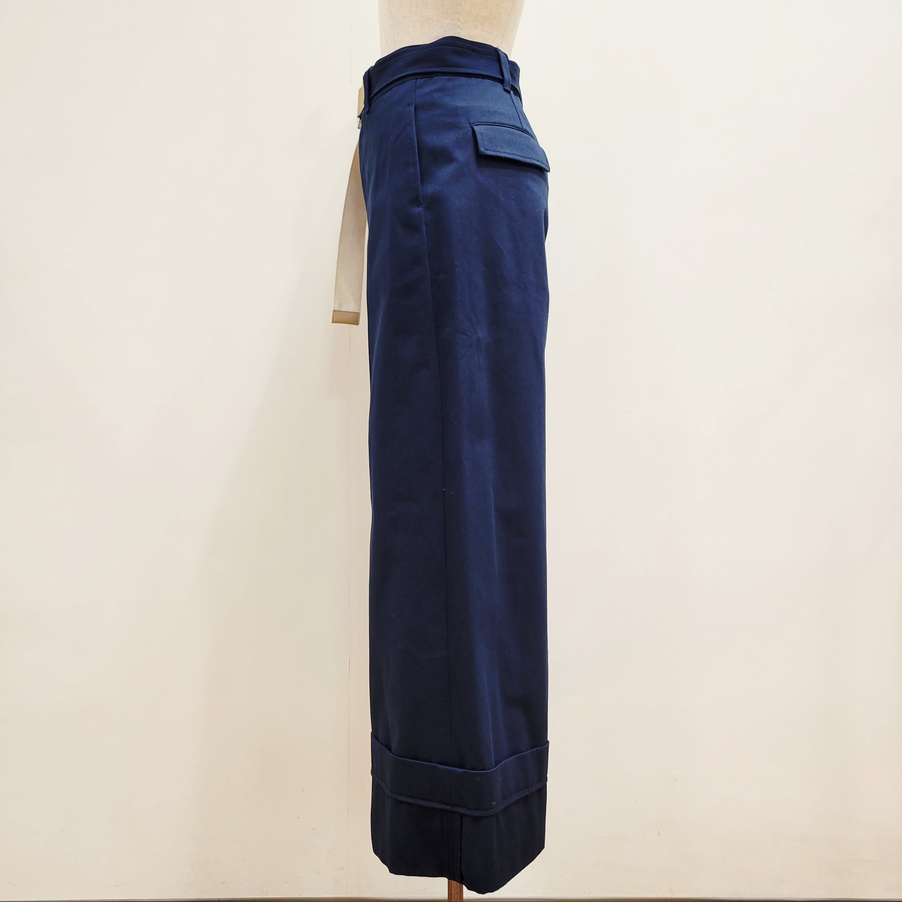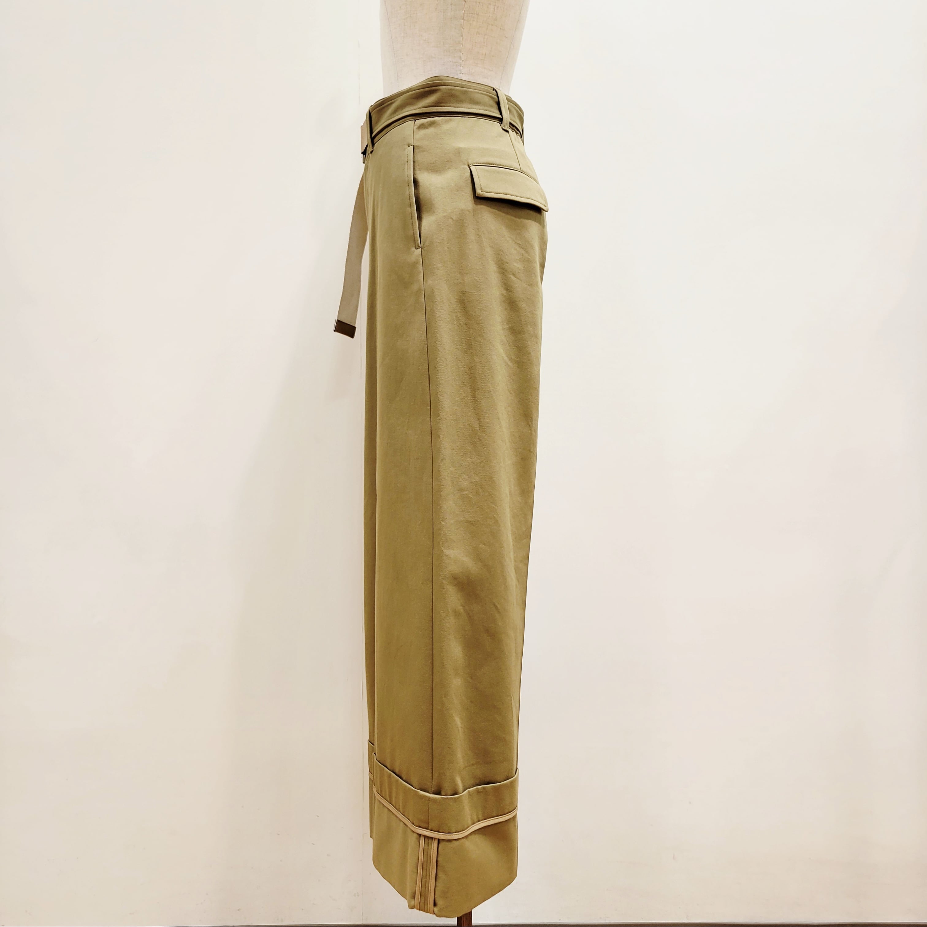 裾を大きくロールアップしたようなデザインが特徴のチノワイドパンツ。