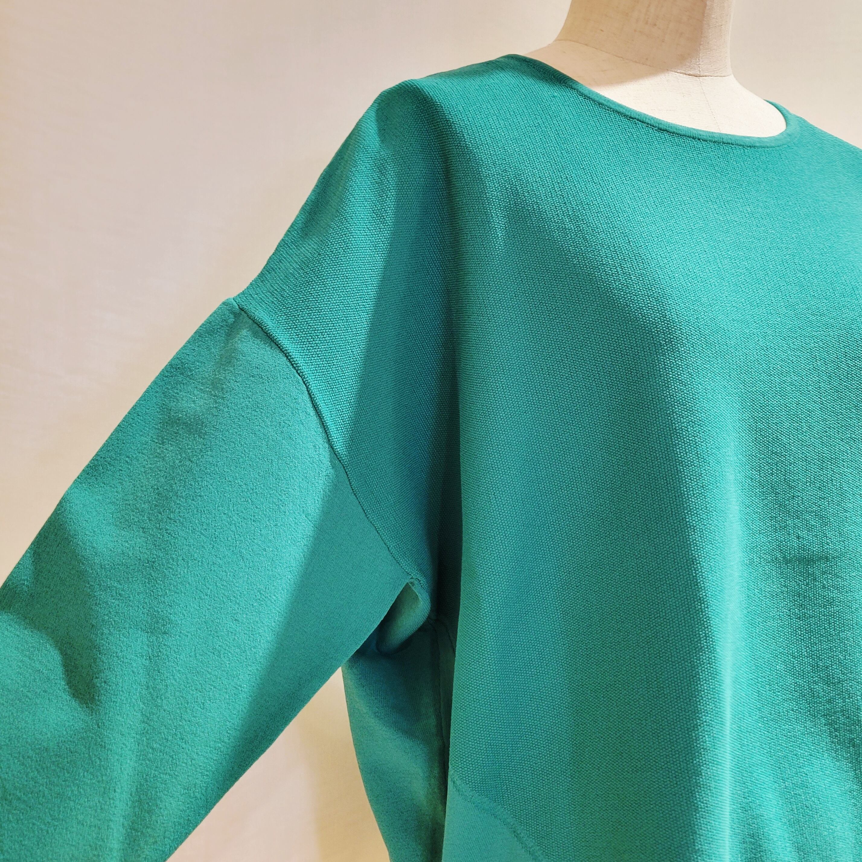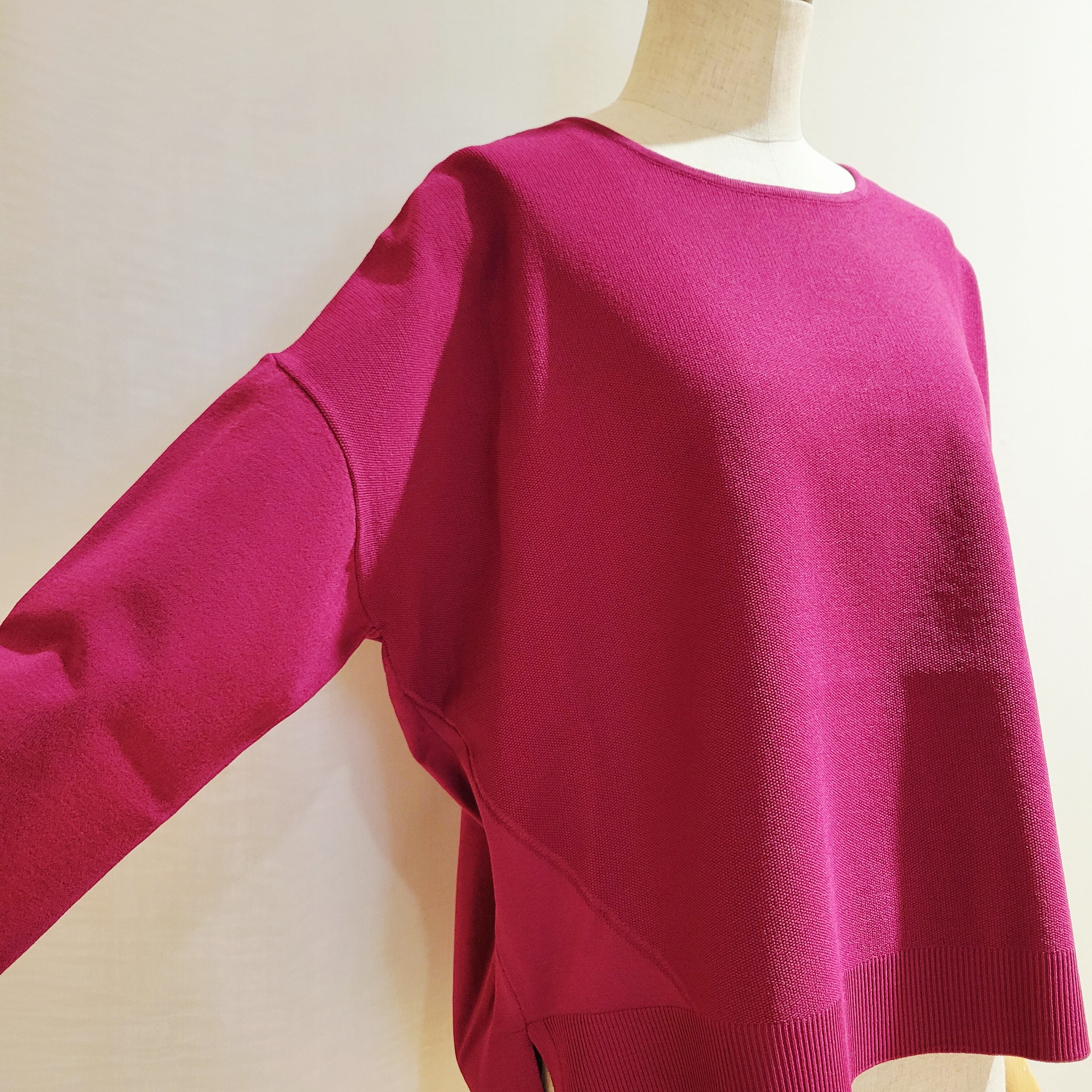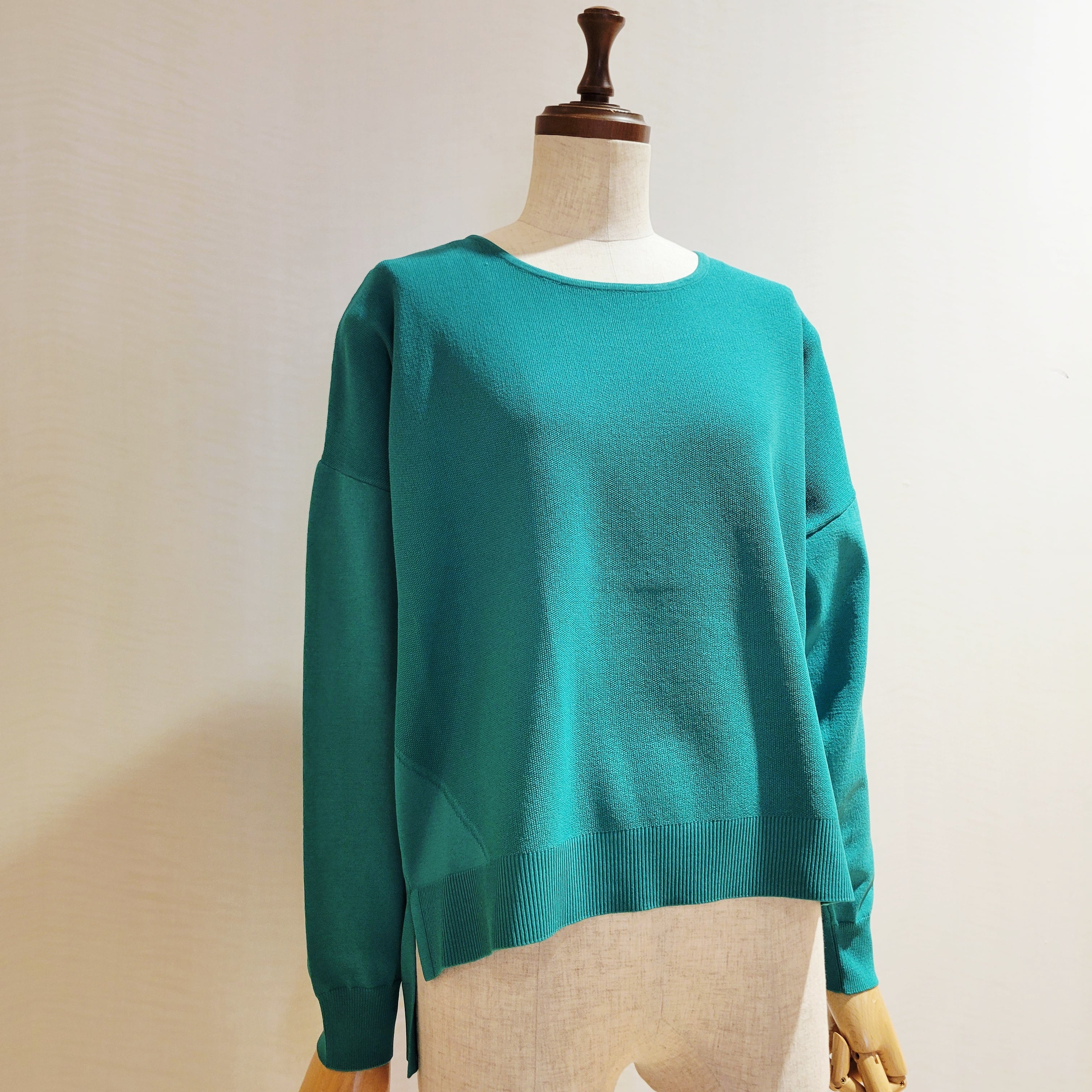 サラッと軽い肌触りで、ニット地ですがカットソー感覚で着ていただけます。
