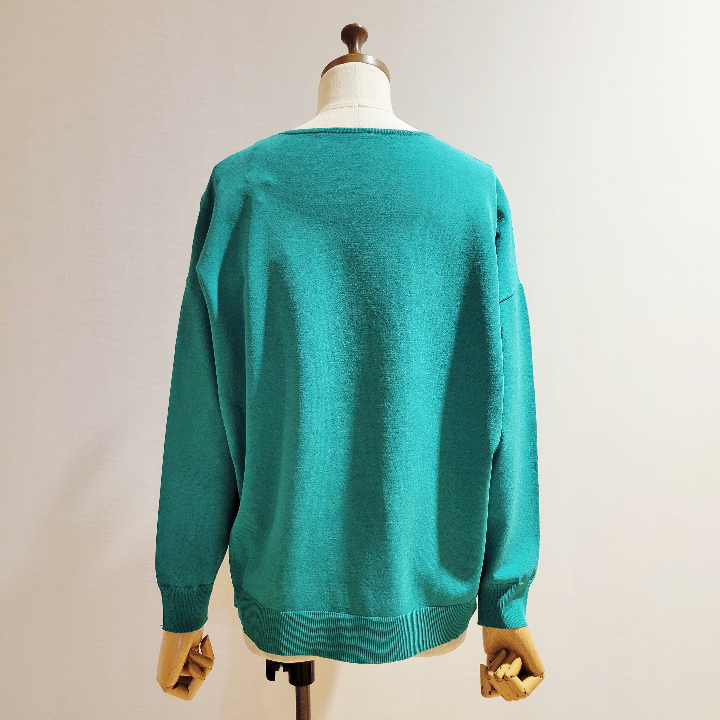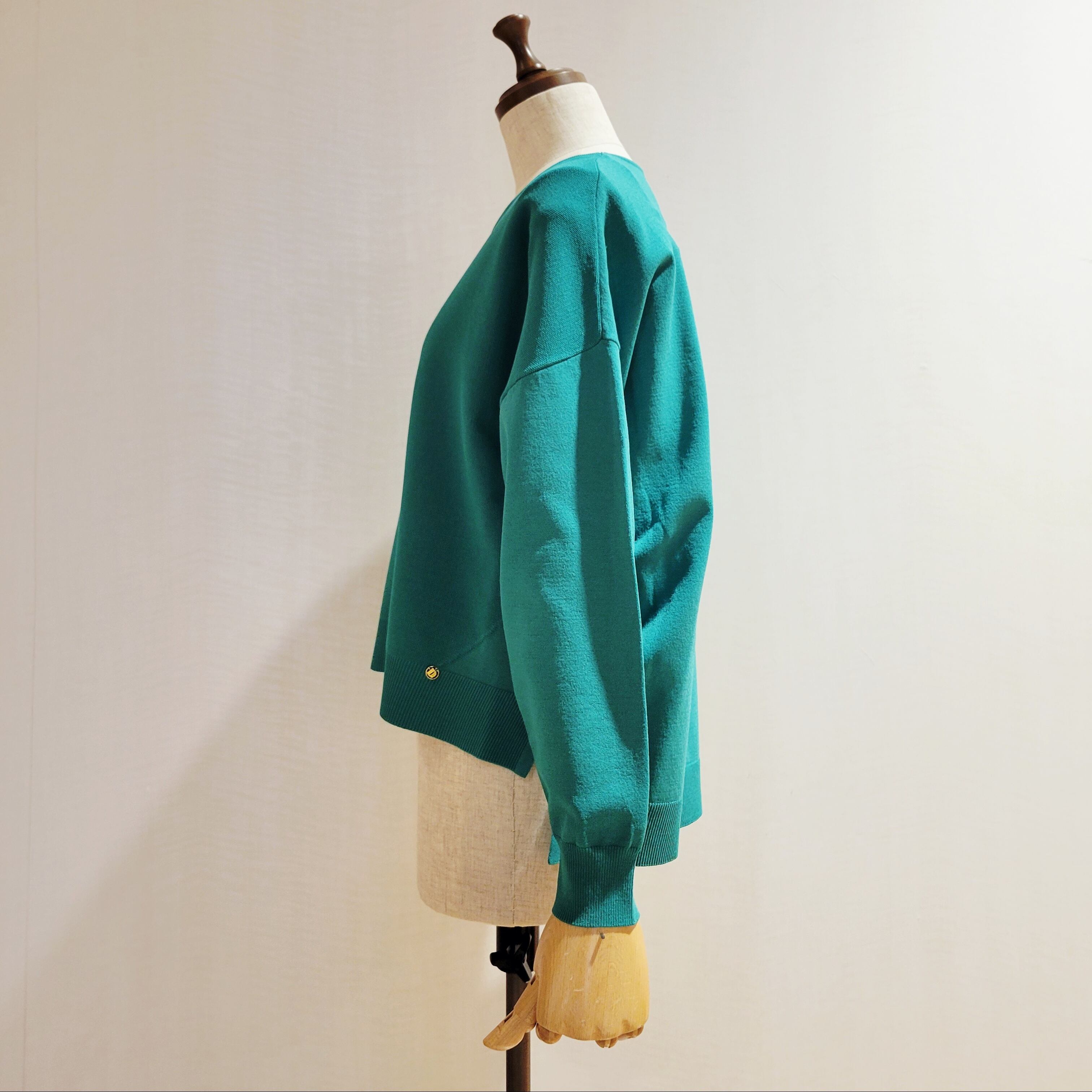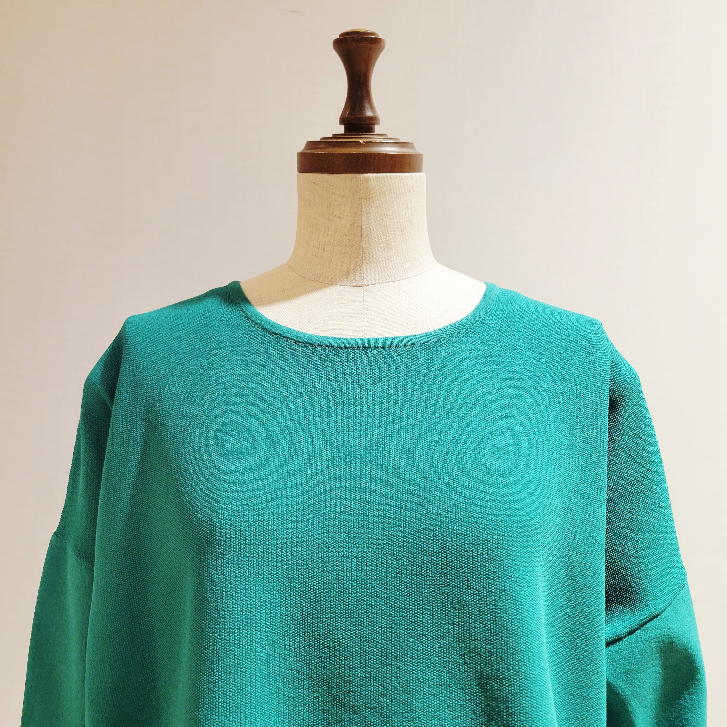 サラッと軽い肌触りで、ニット地ですがカットソー感覚で着ていただけます。