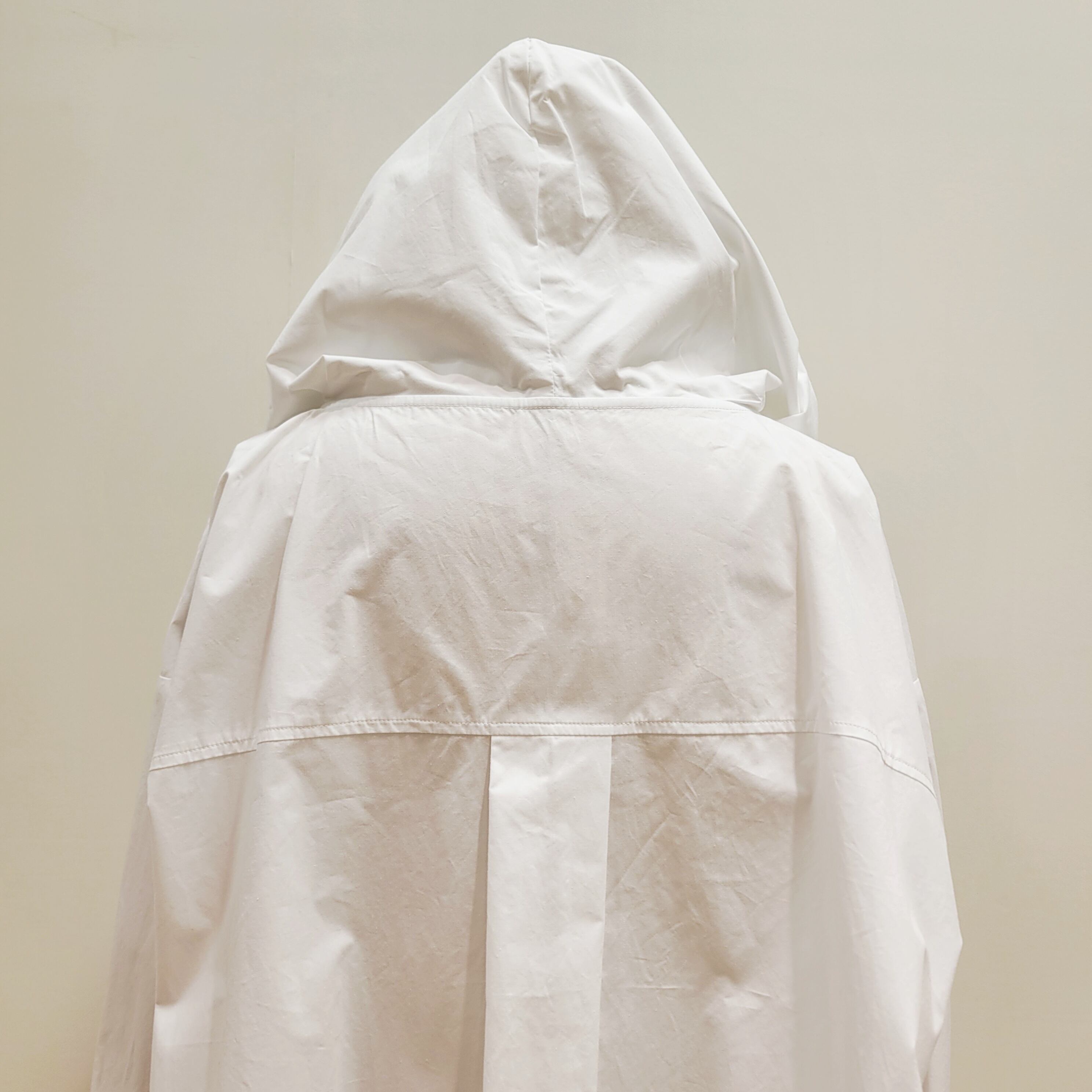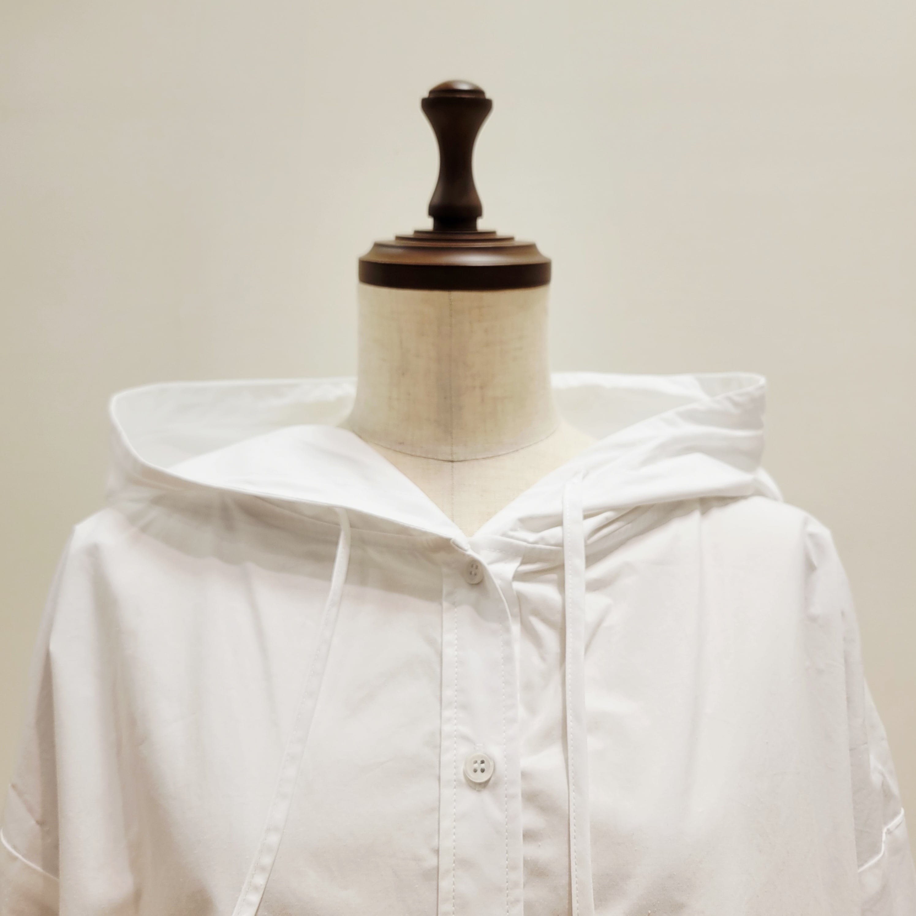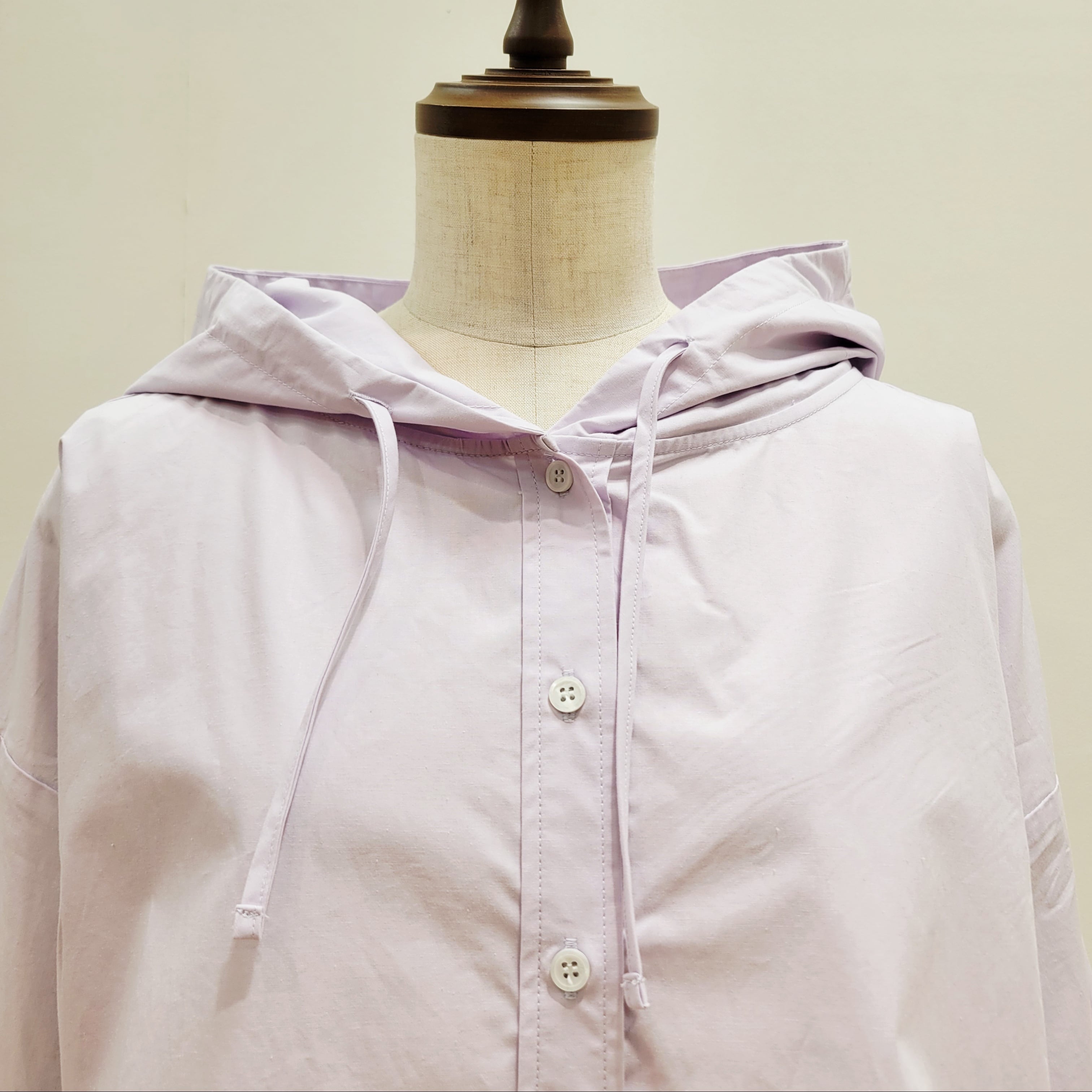 フード部分はひもで絞れる仕様で、ちょっとした羽織としてもシャツとしても使えるアイテムです。
