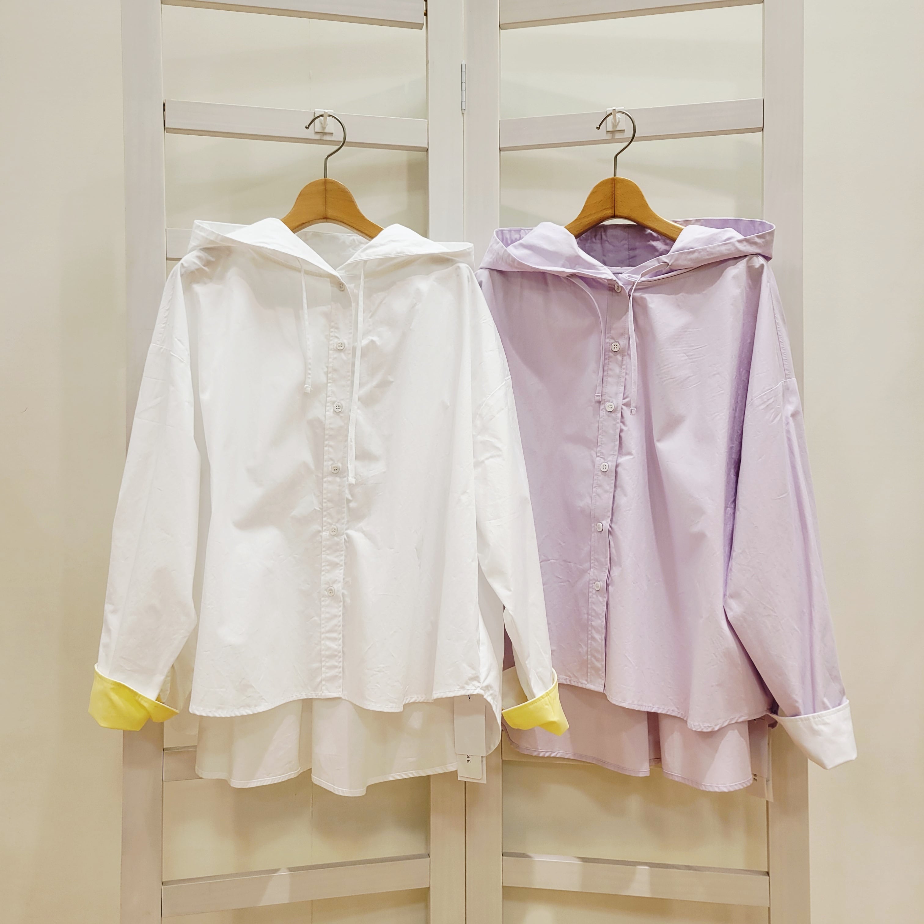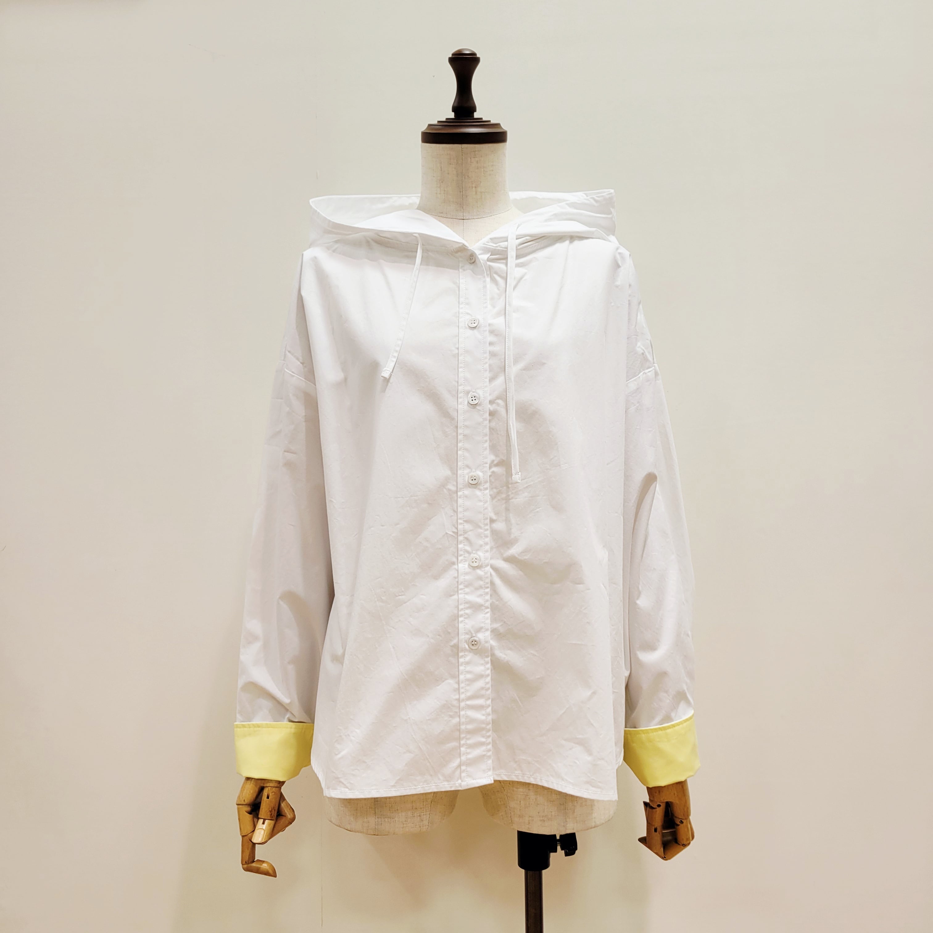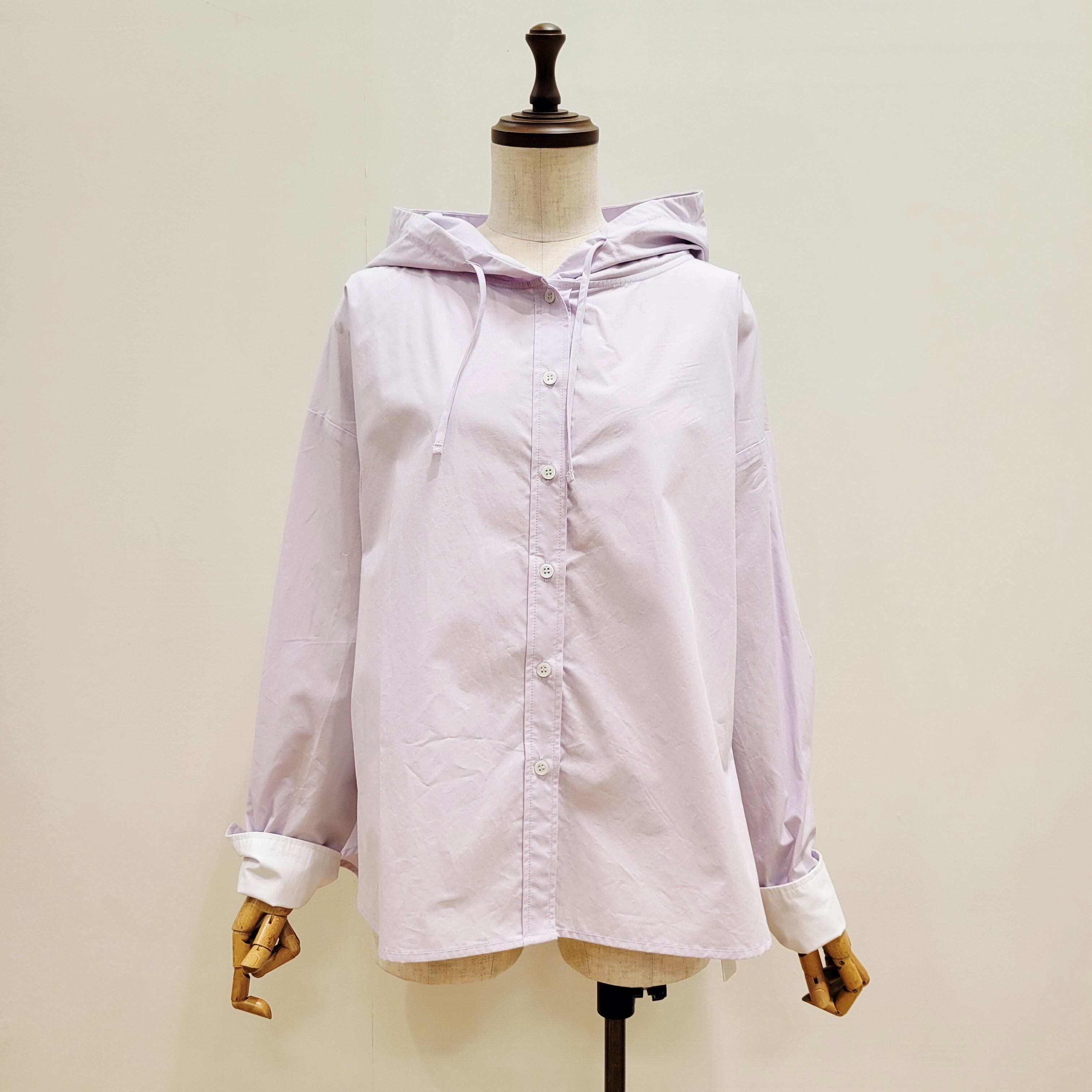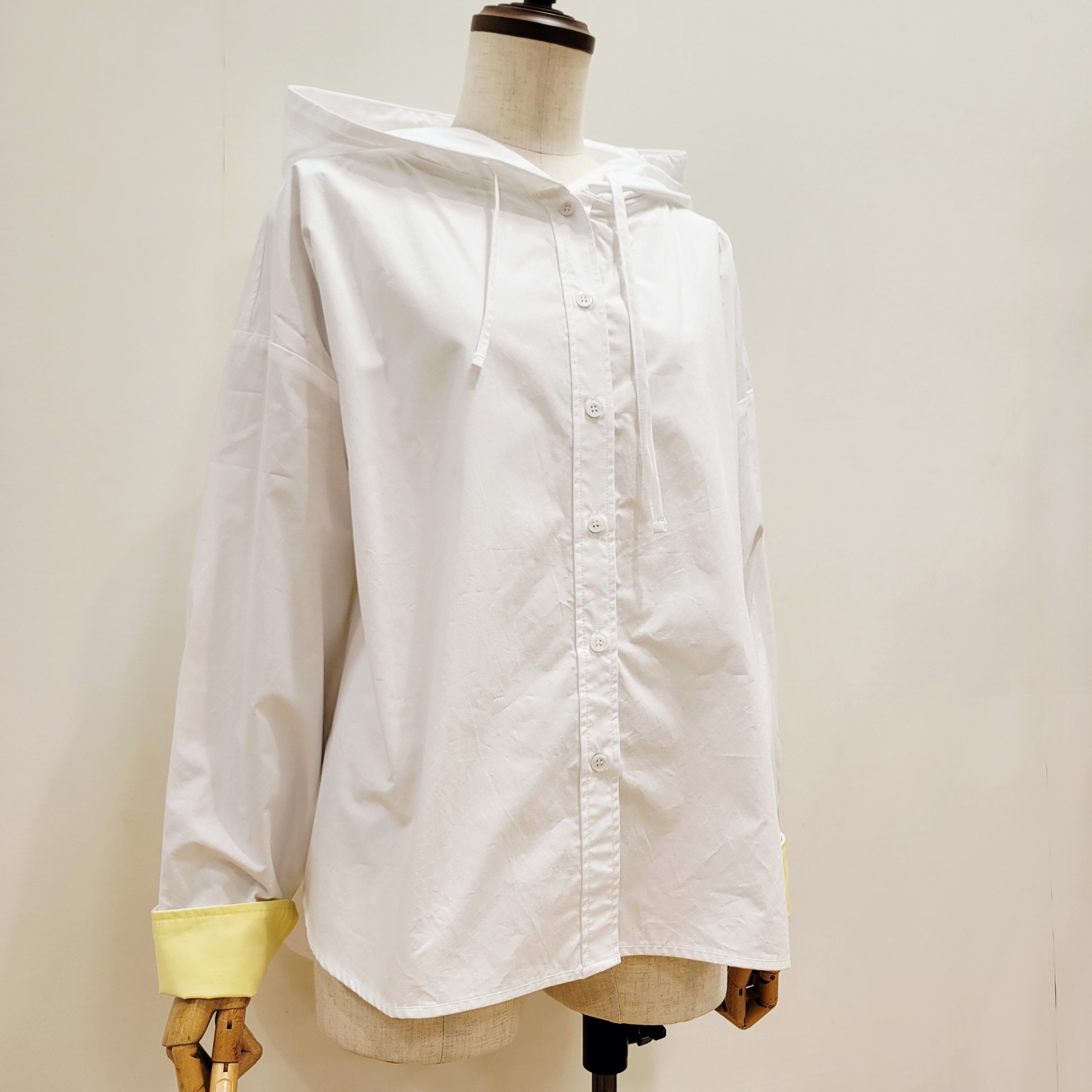 袖口の裏に配色を施し、折り返して着こなしのアクセントにもなるフーディーシャツアウター。