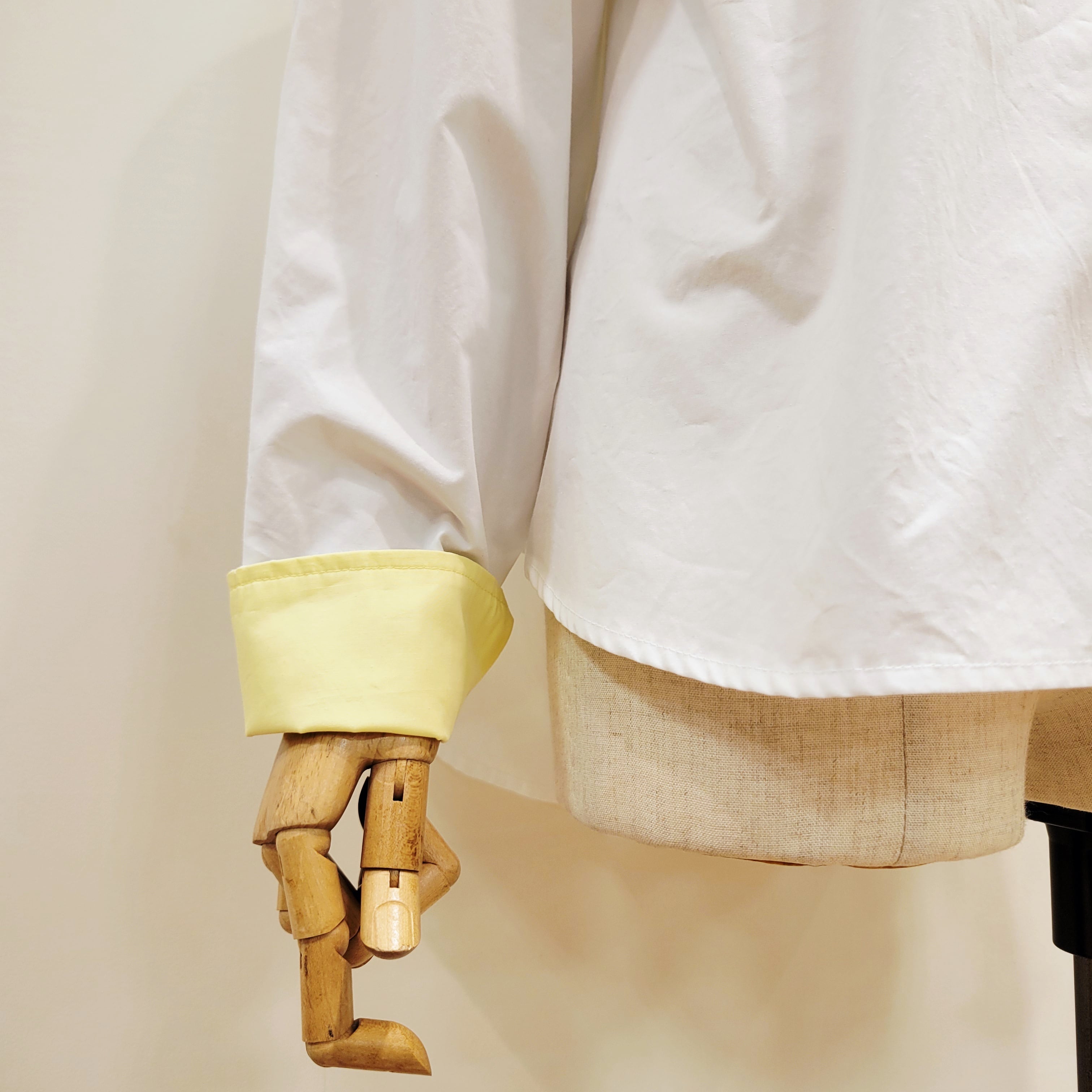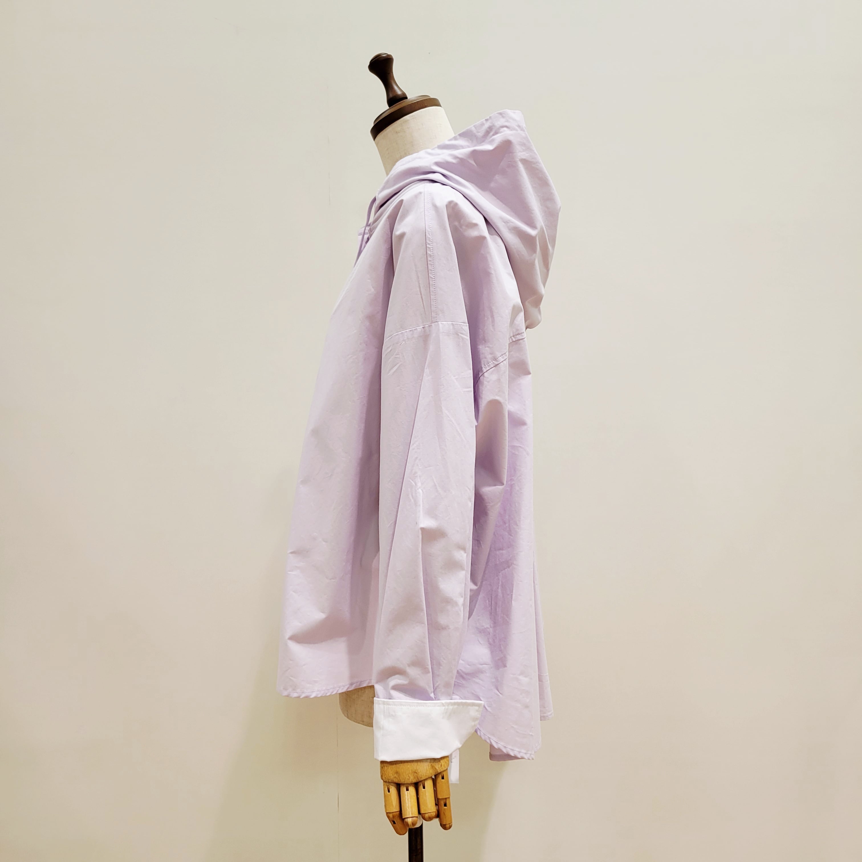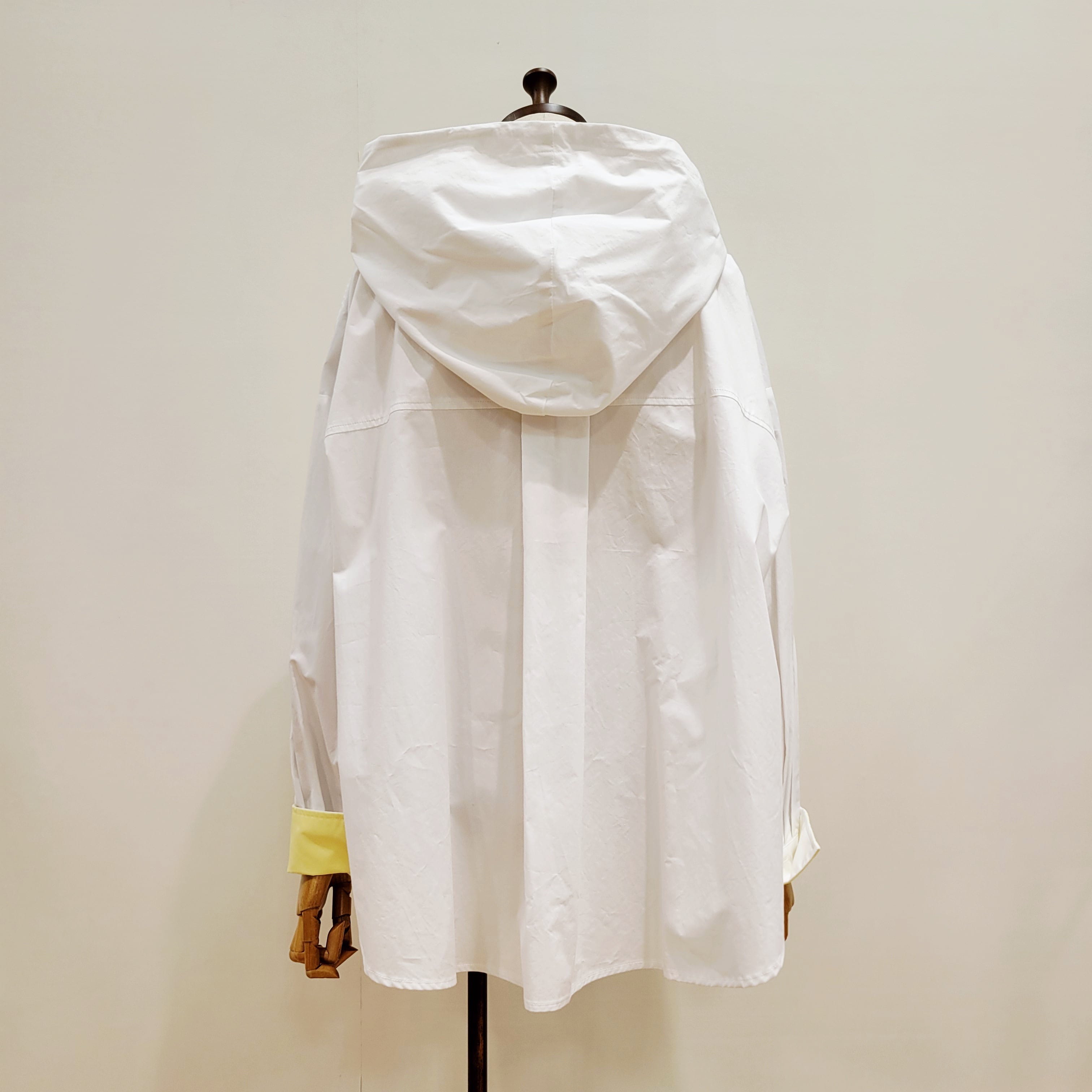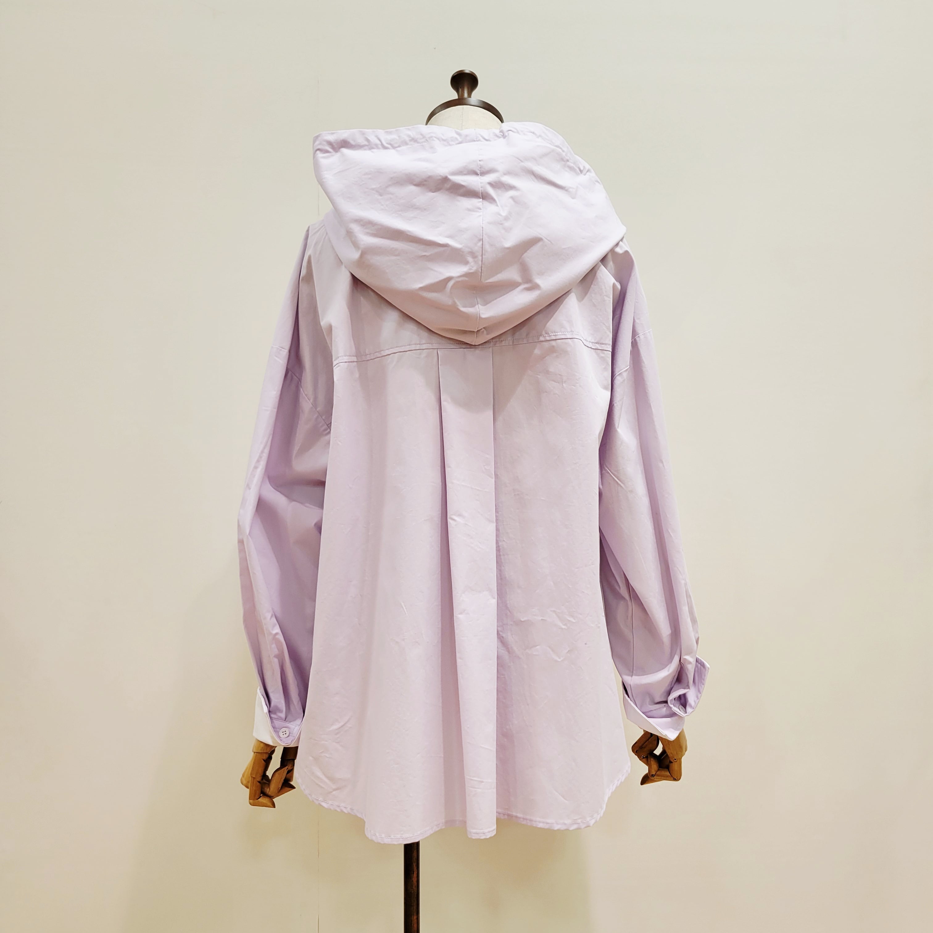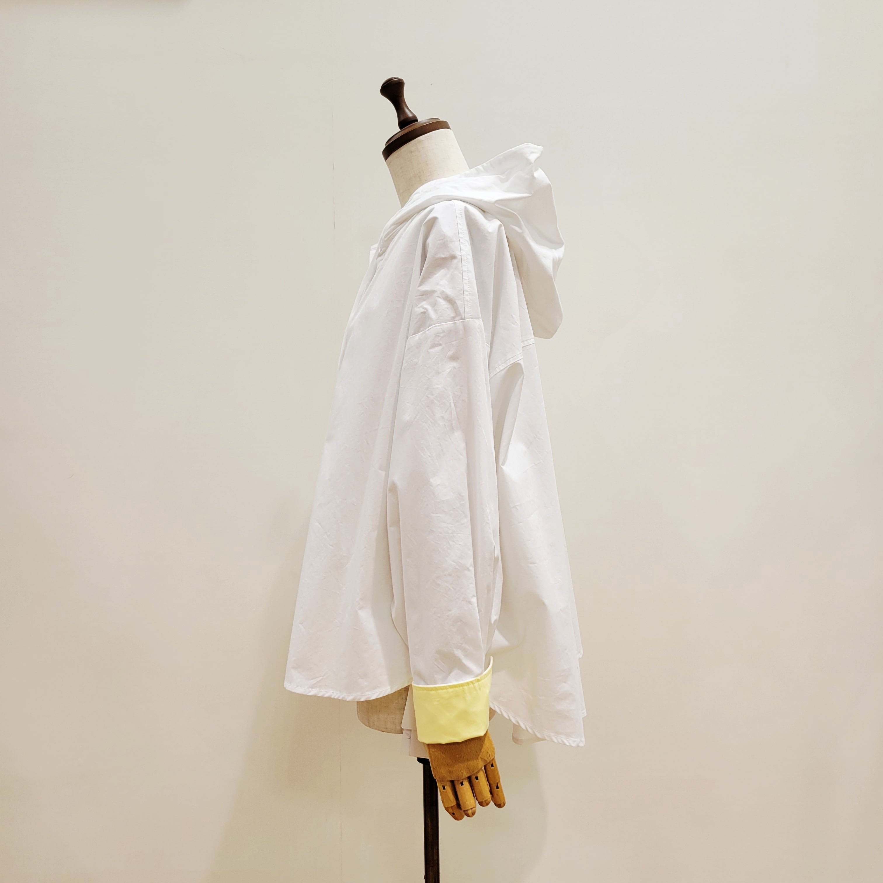 袖口の裏に配色を施し、折り返して着こなしのアクセントにもなるフーディーシャツアウター。