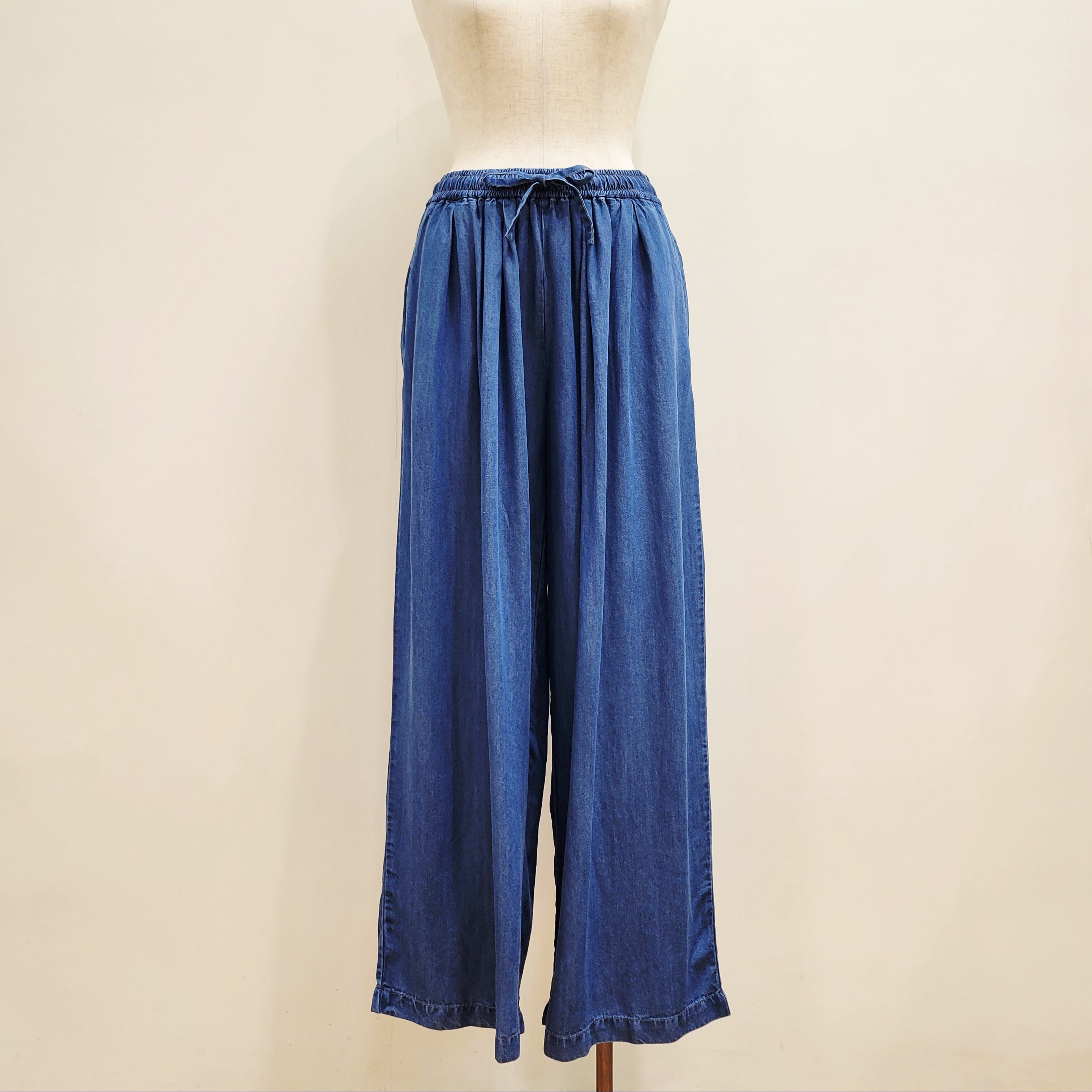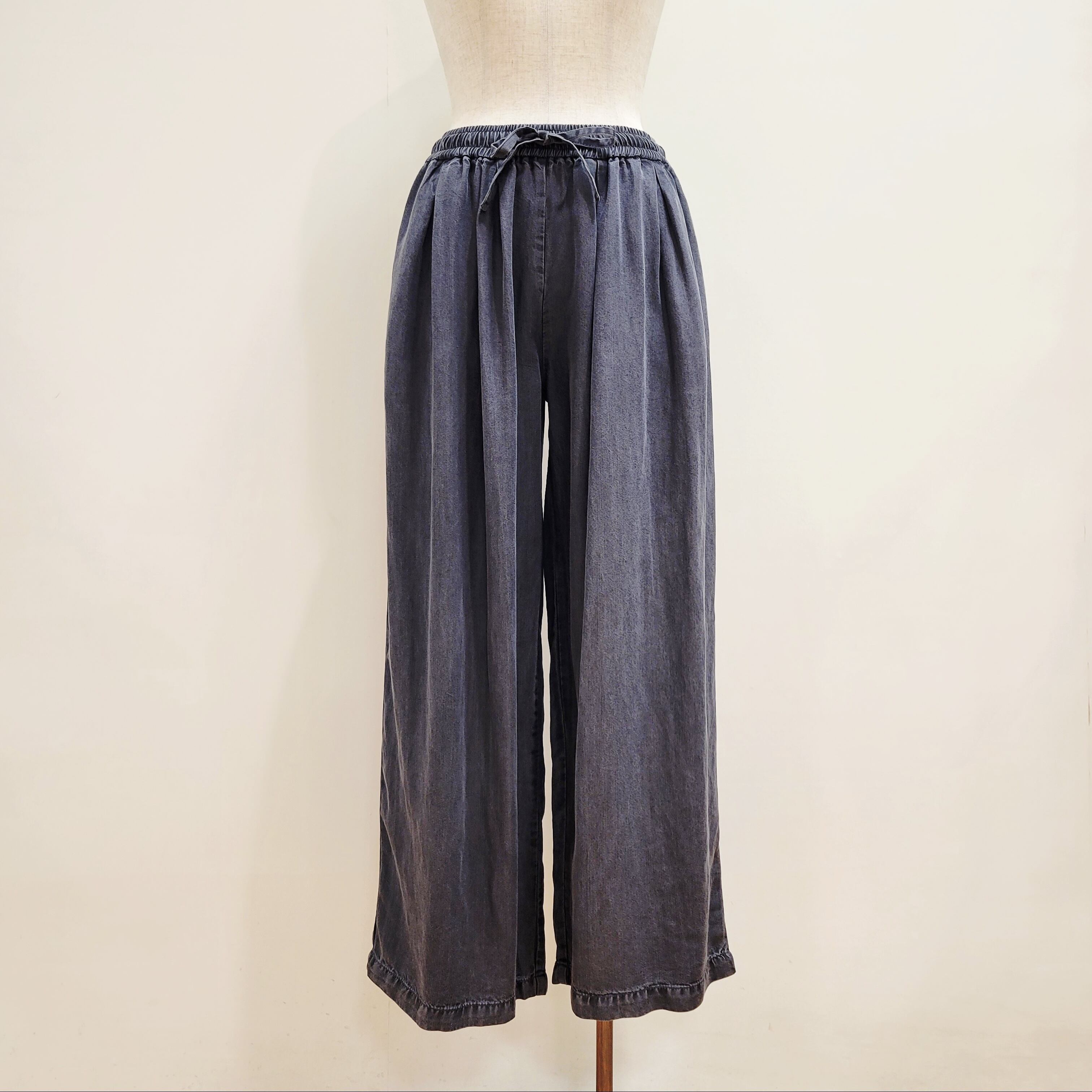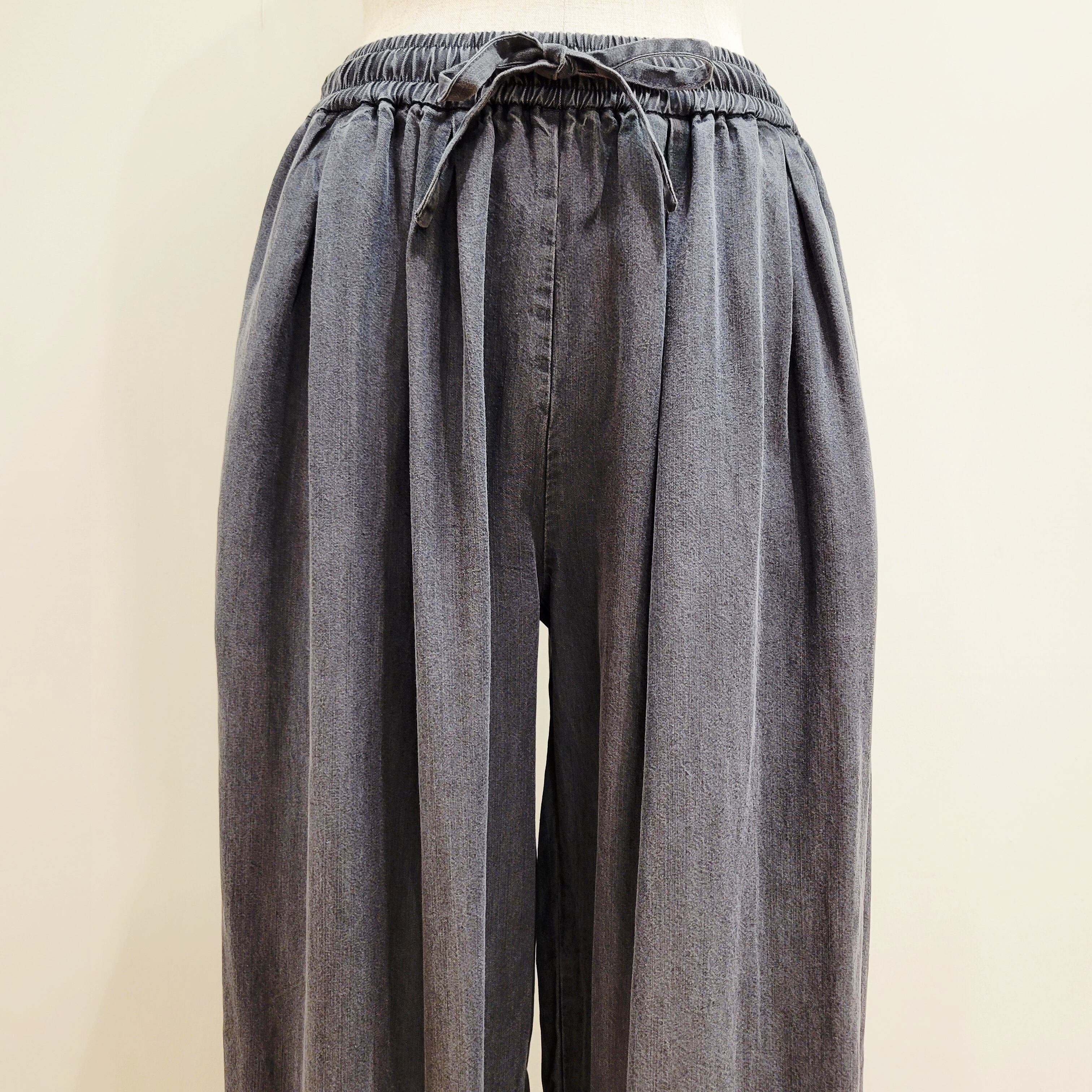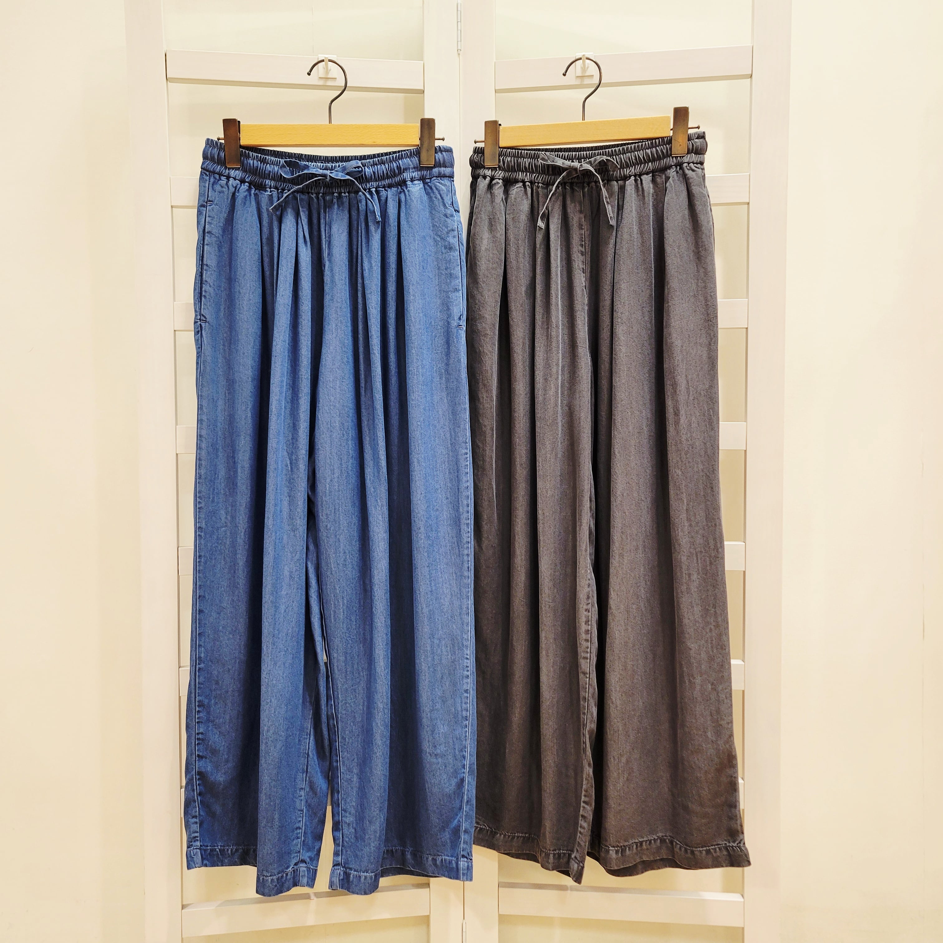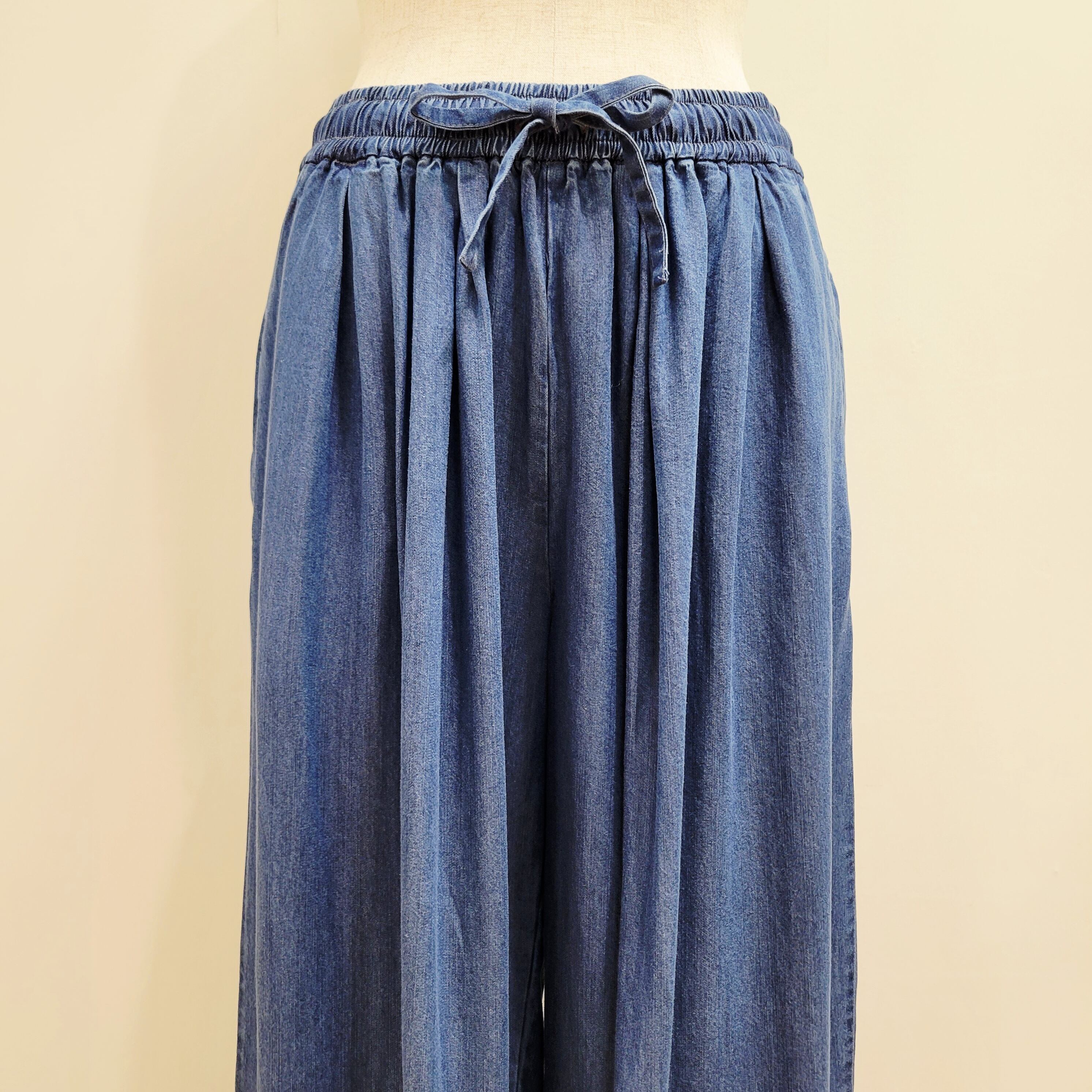 ほどよい光沢と柔らかな風合いが特徴的なテンセルデニムタックパンツ。