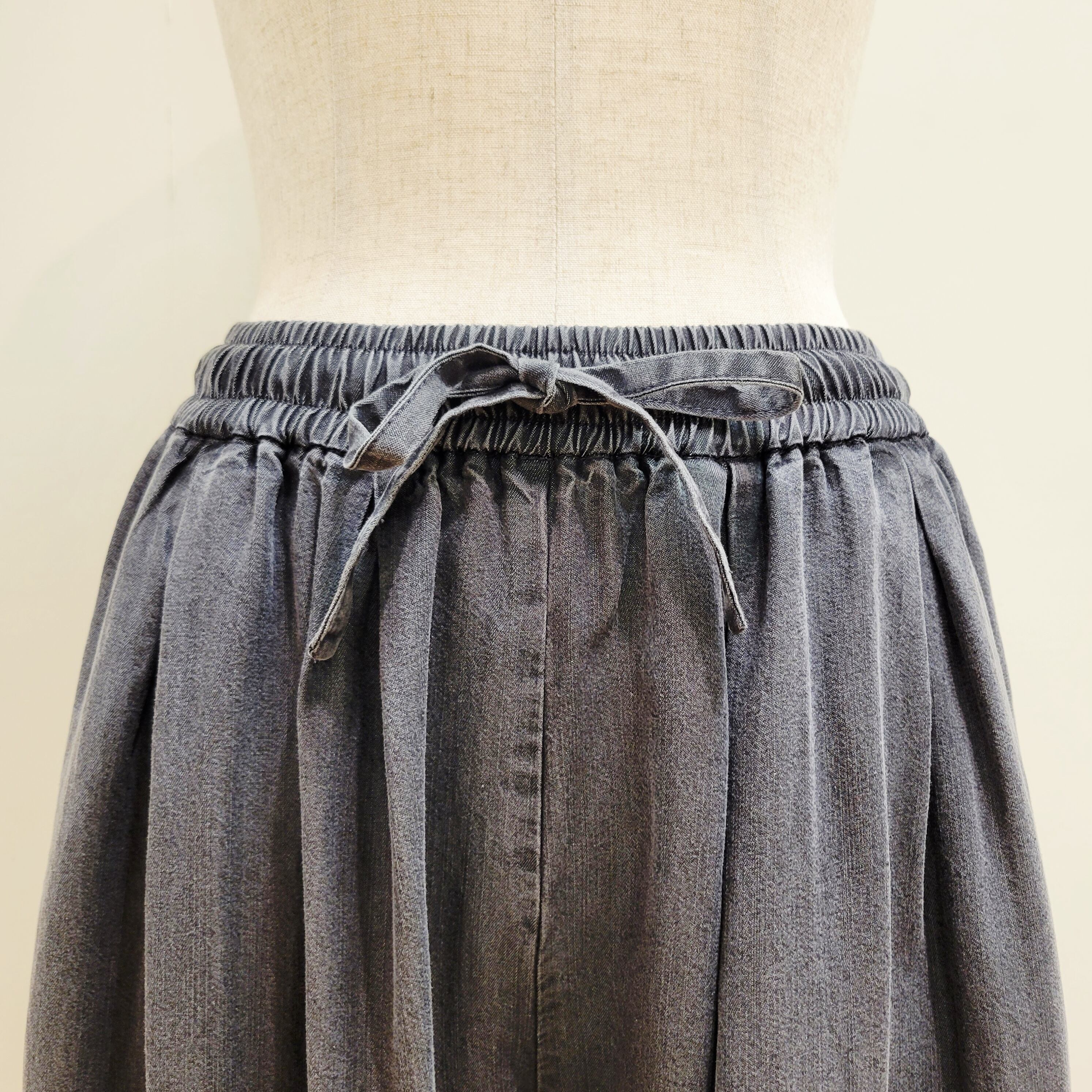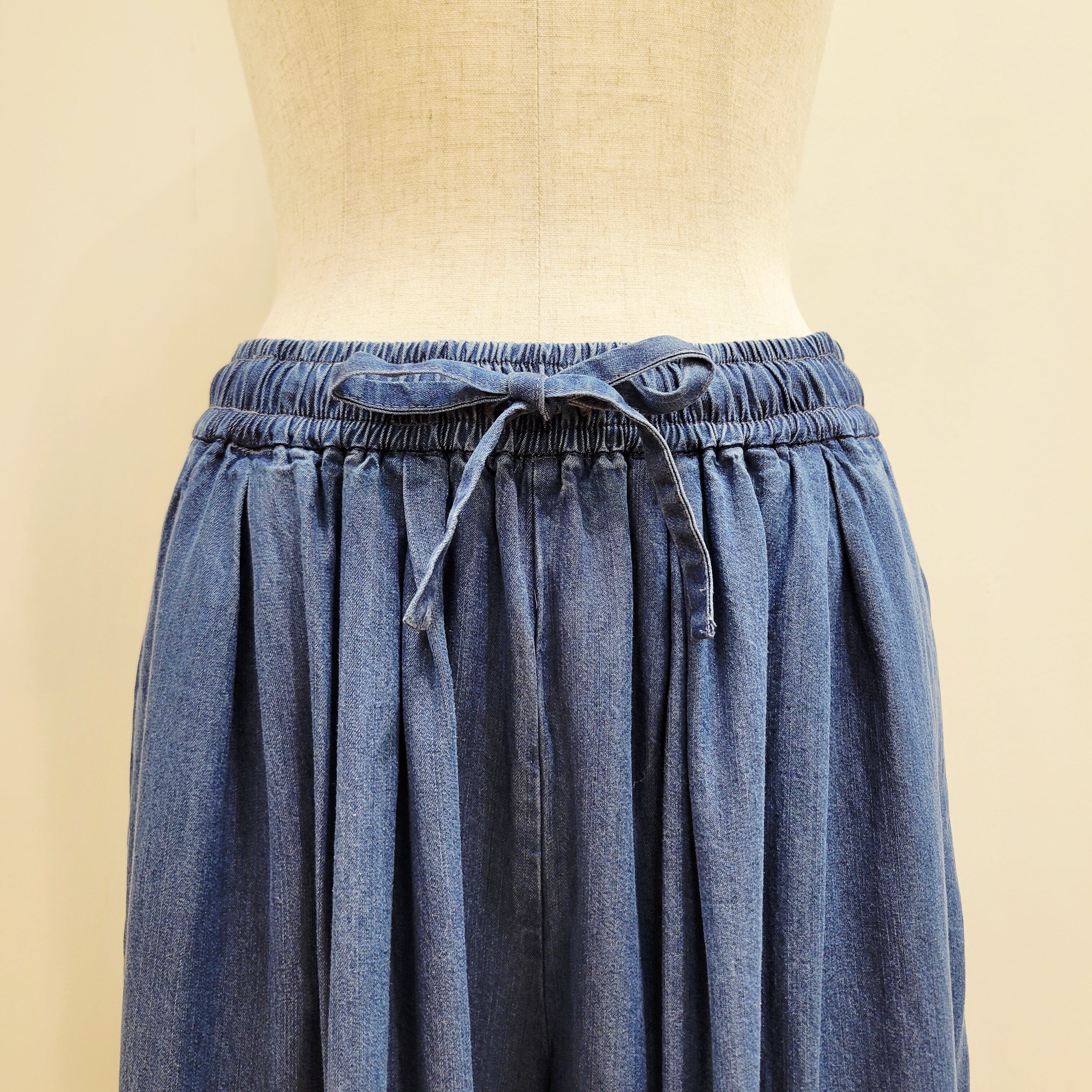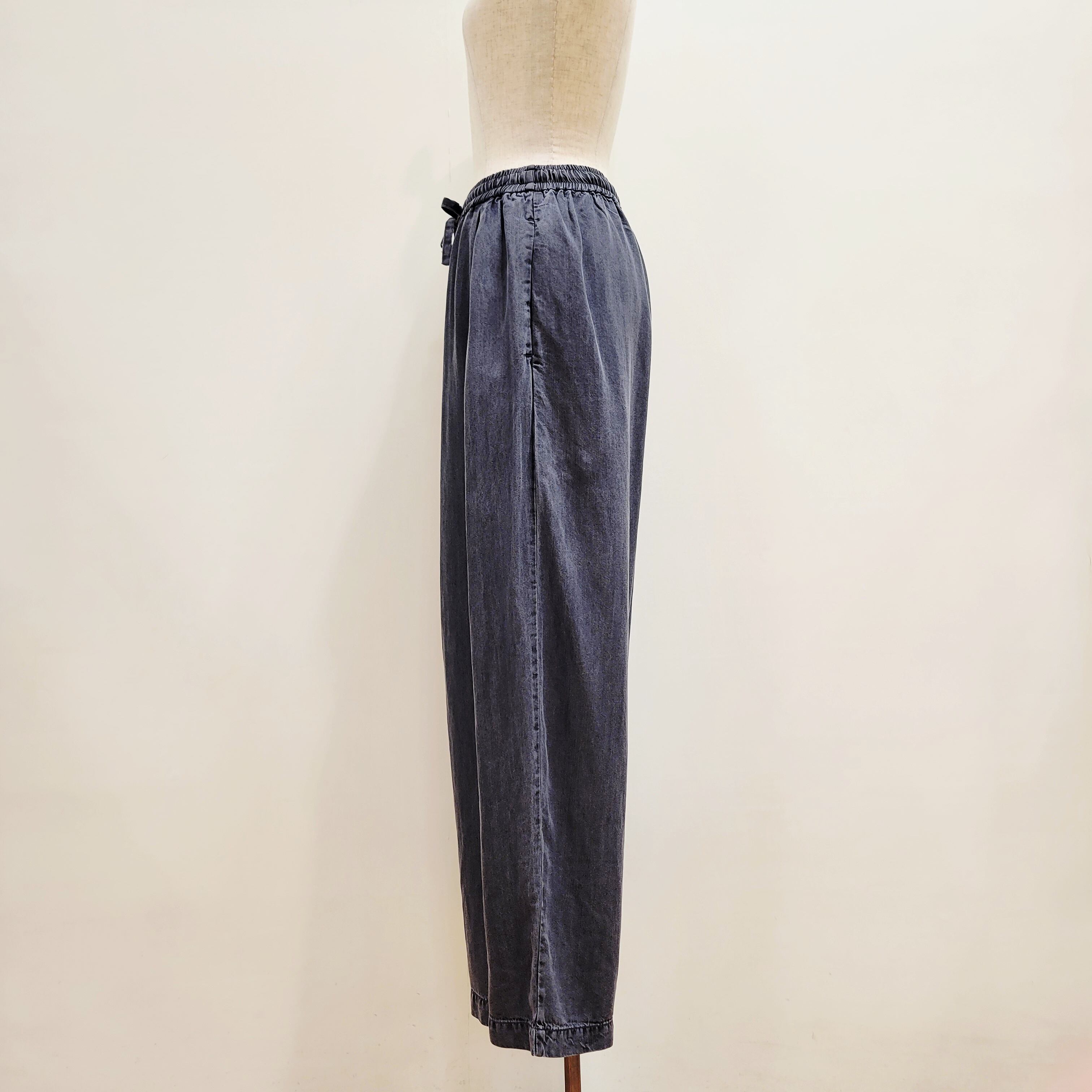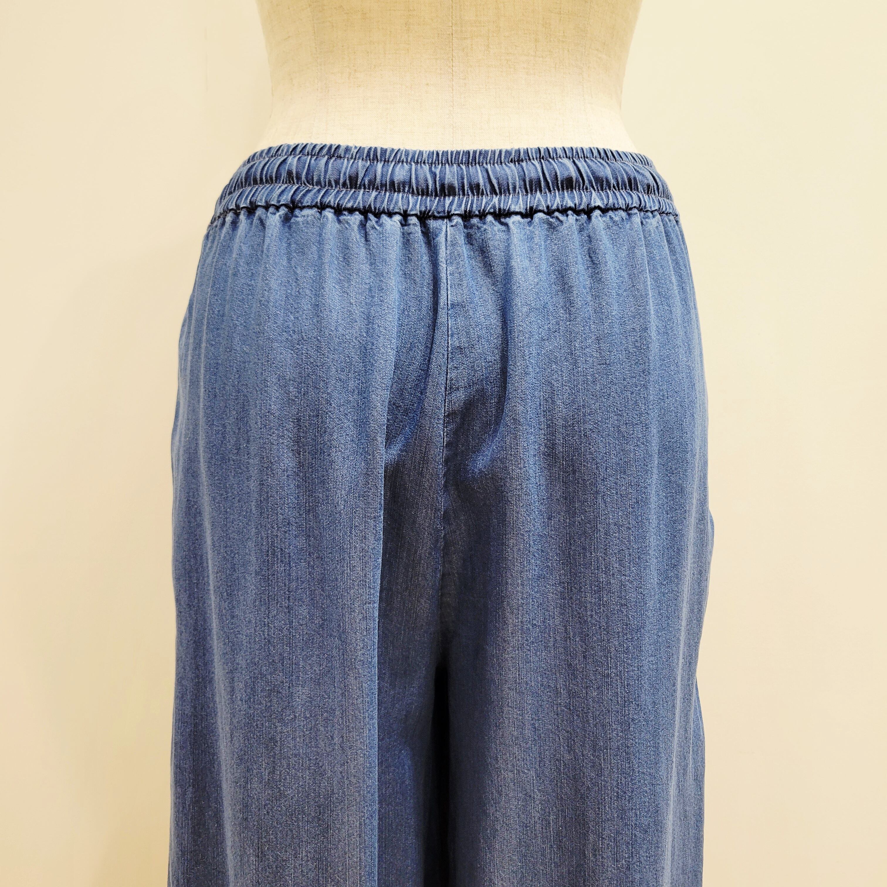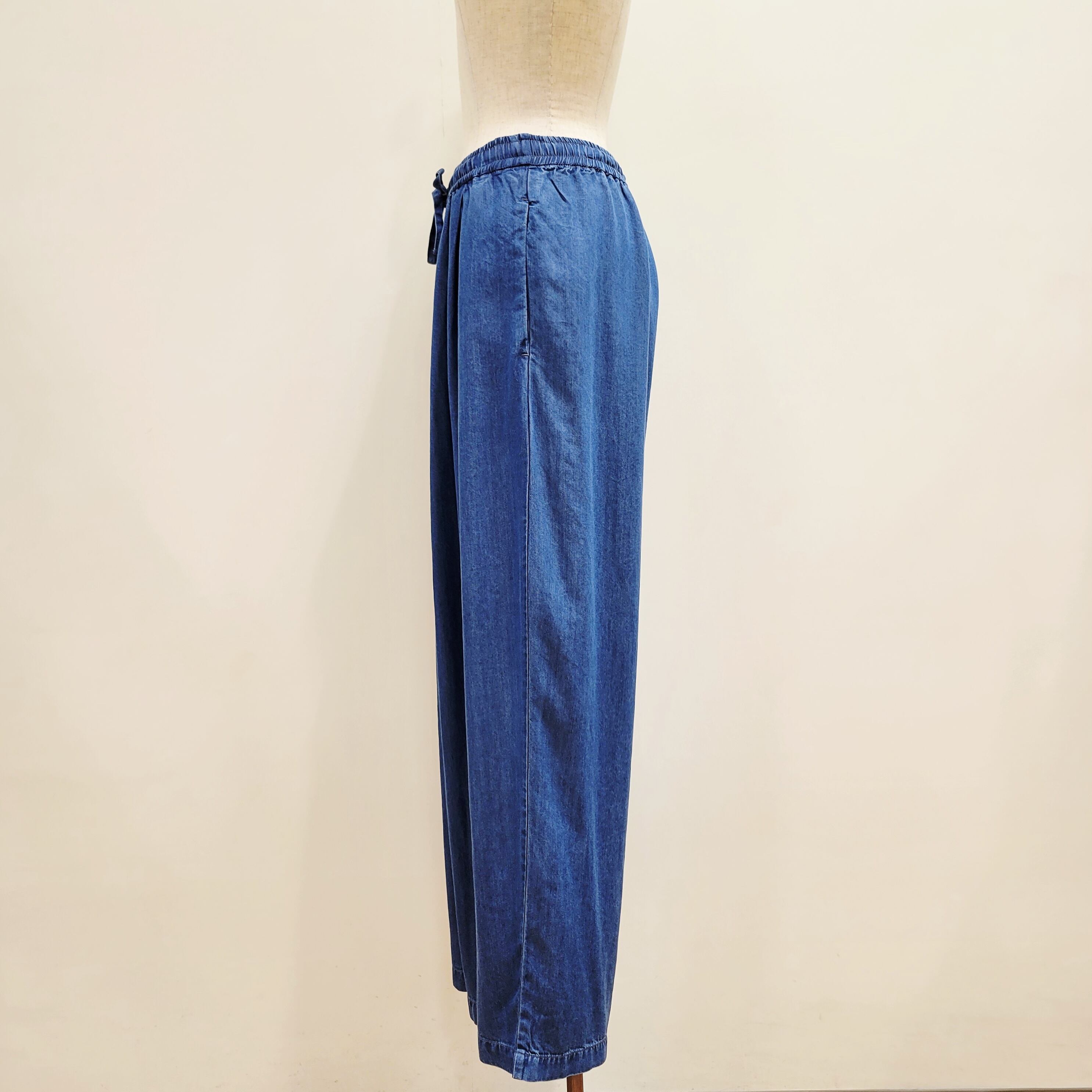 ほどよい光沢と柔らかな風合いが特徴的なテンセルデニムタックパンツ。