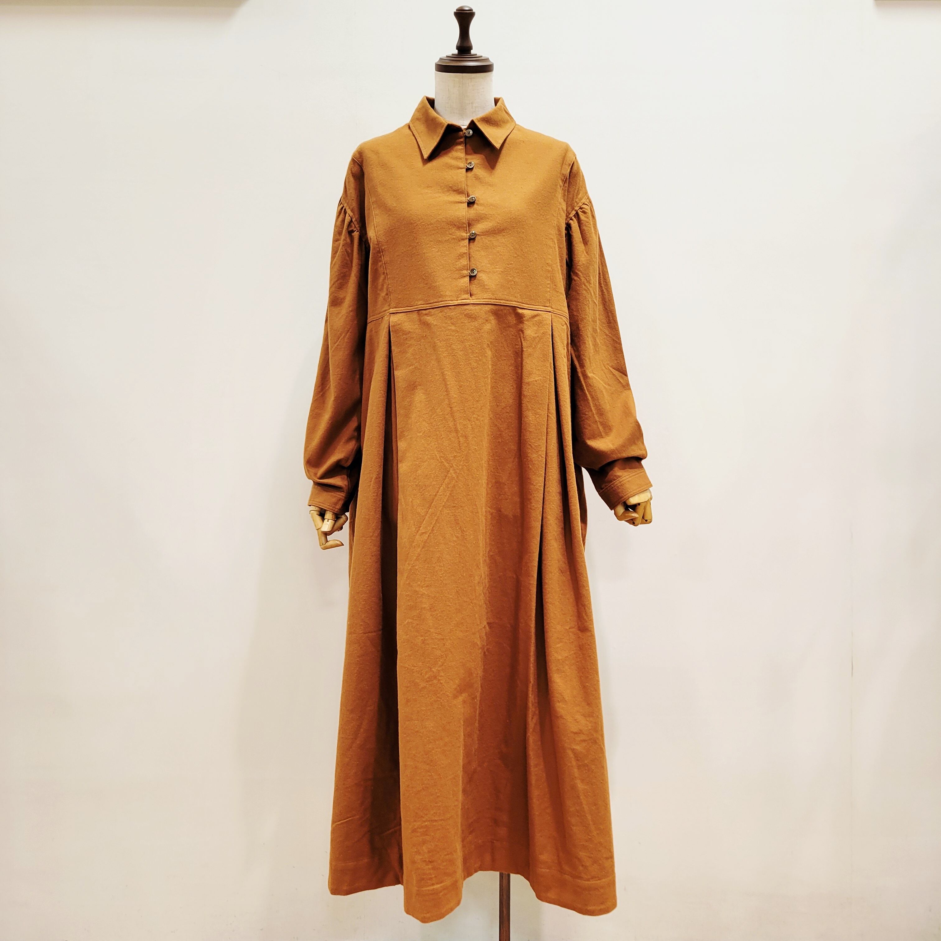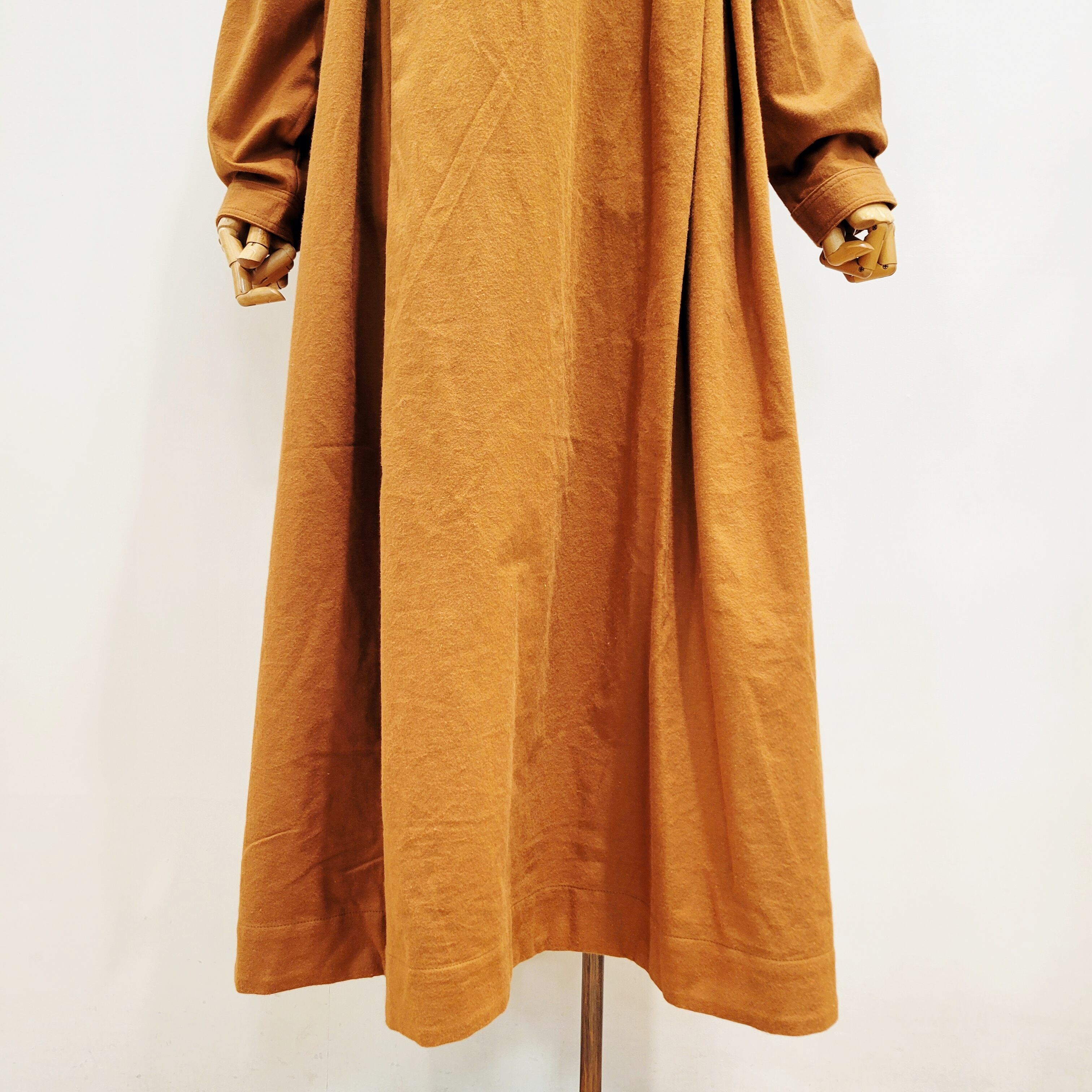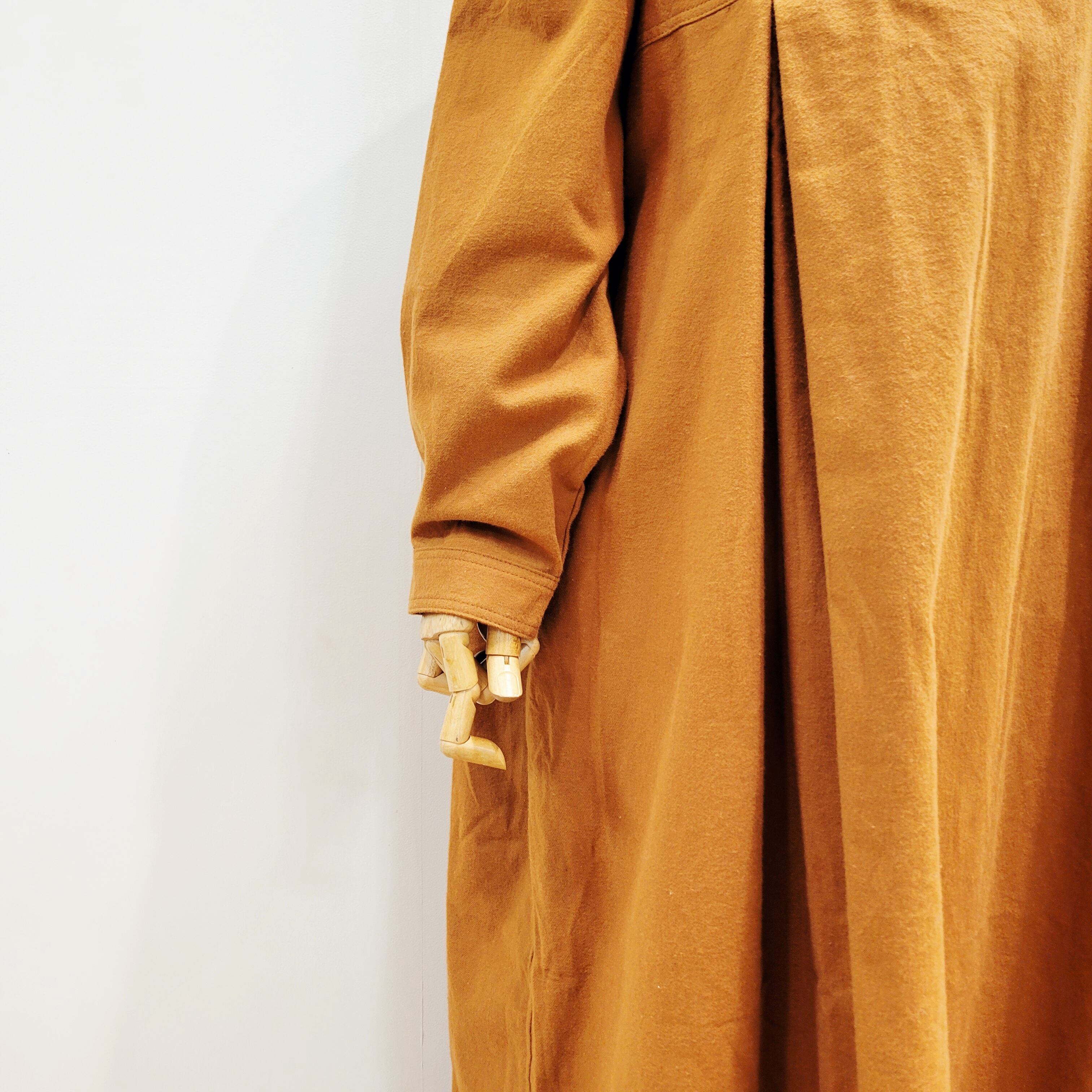 起毛感のあるコットンフランネル素材を使用した、あたたかみのあるワンピース。
