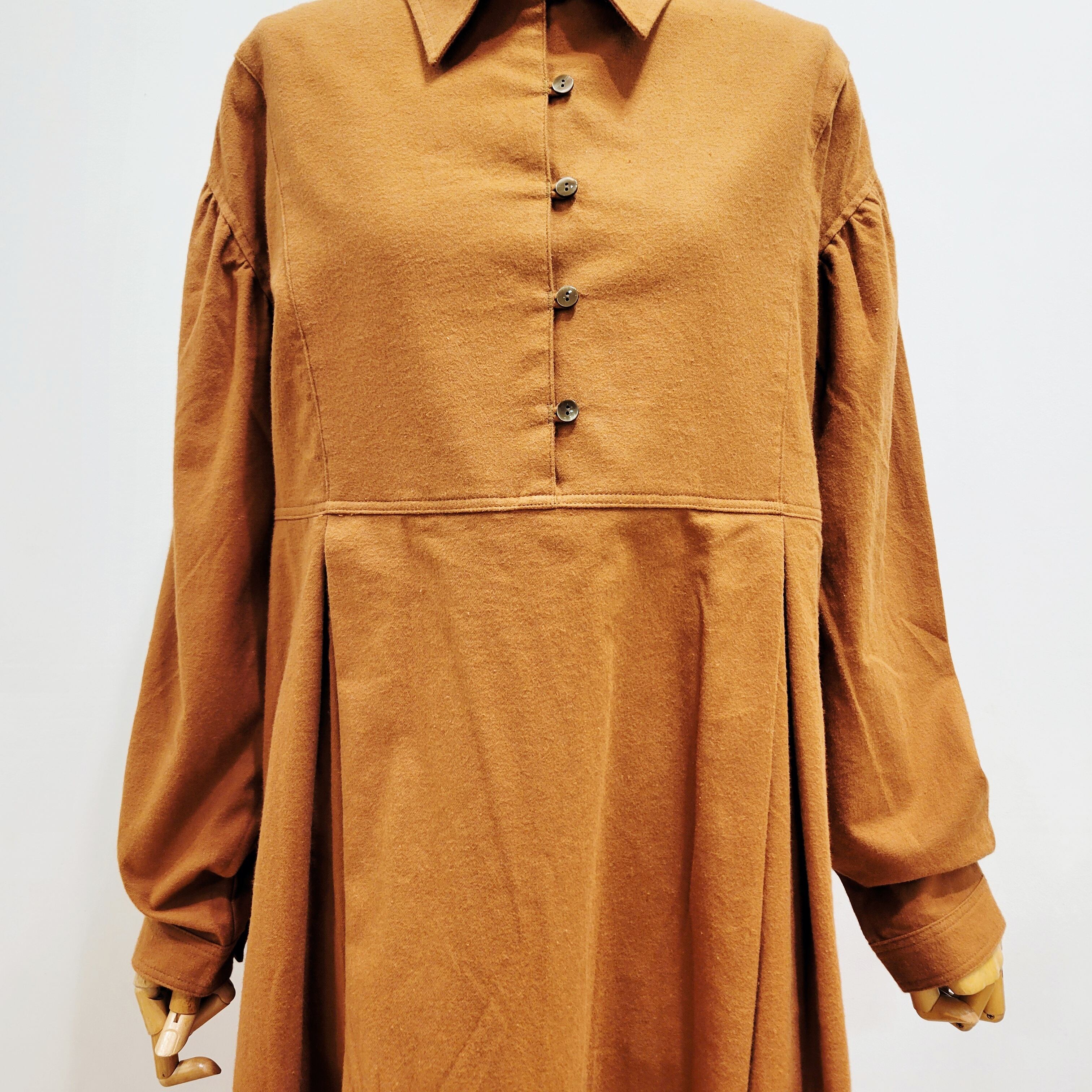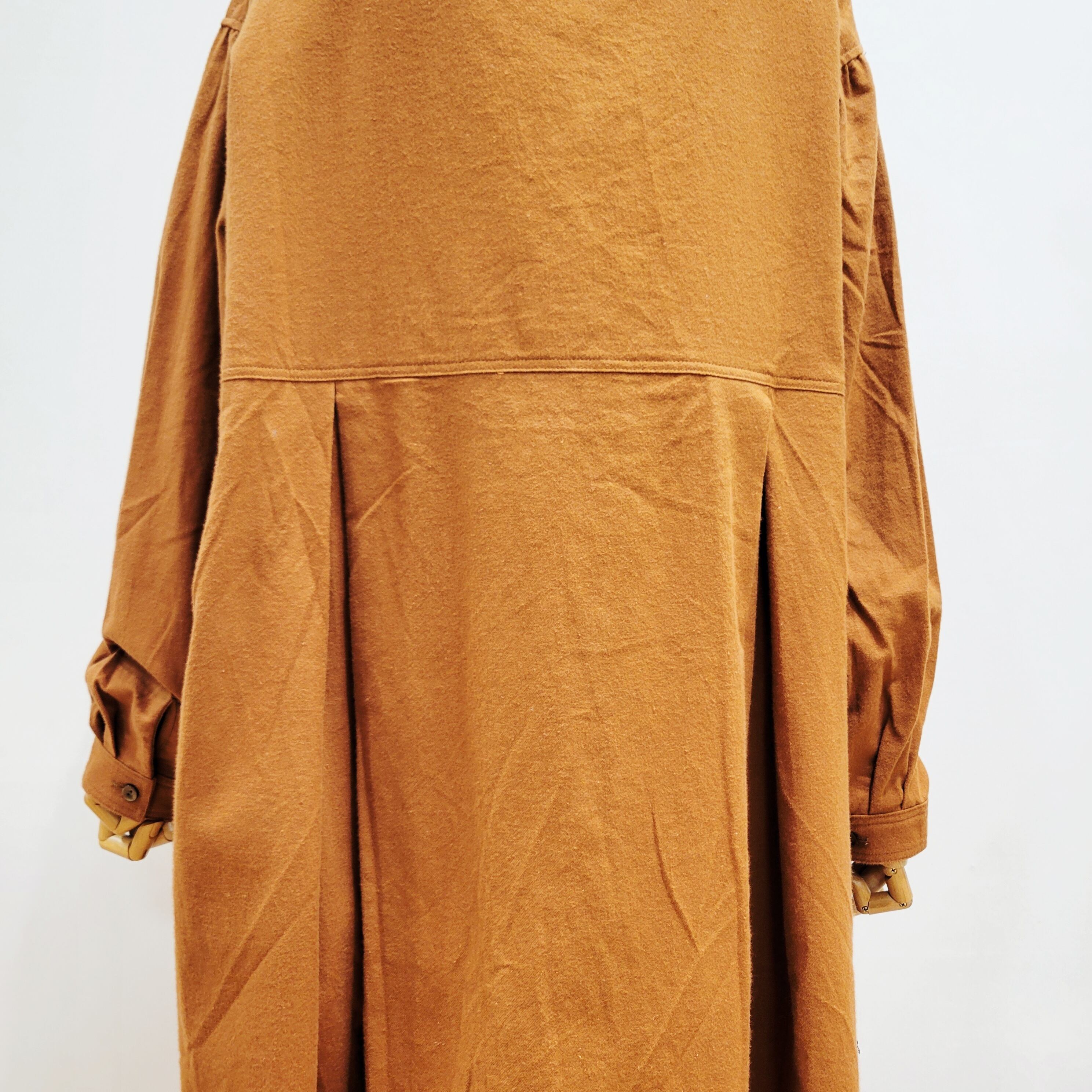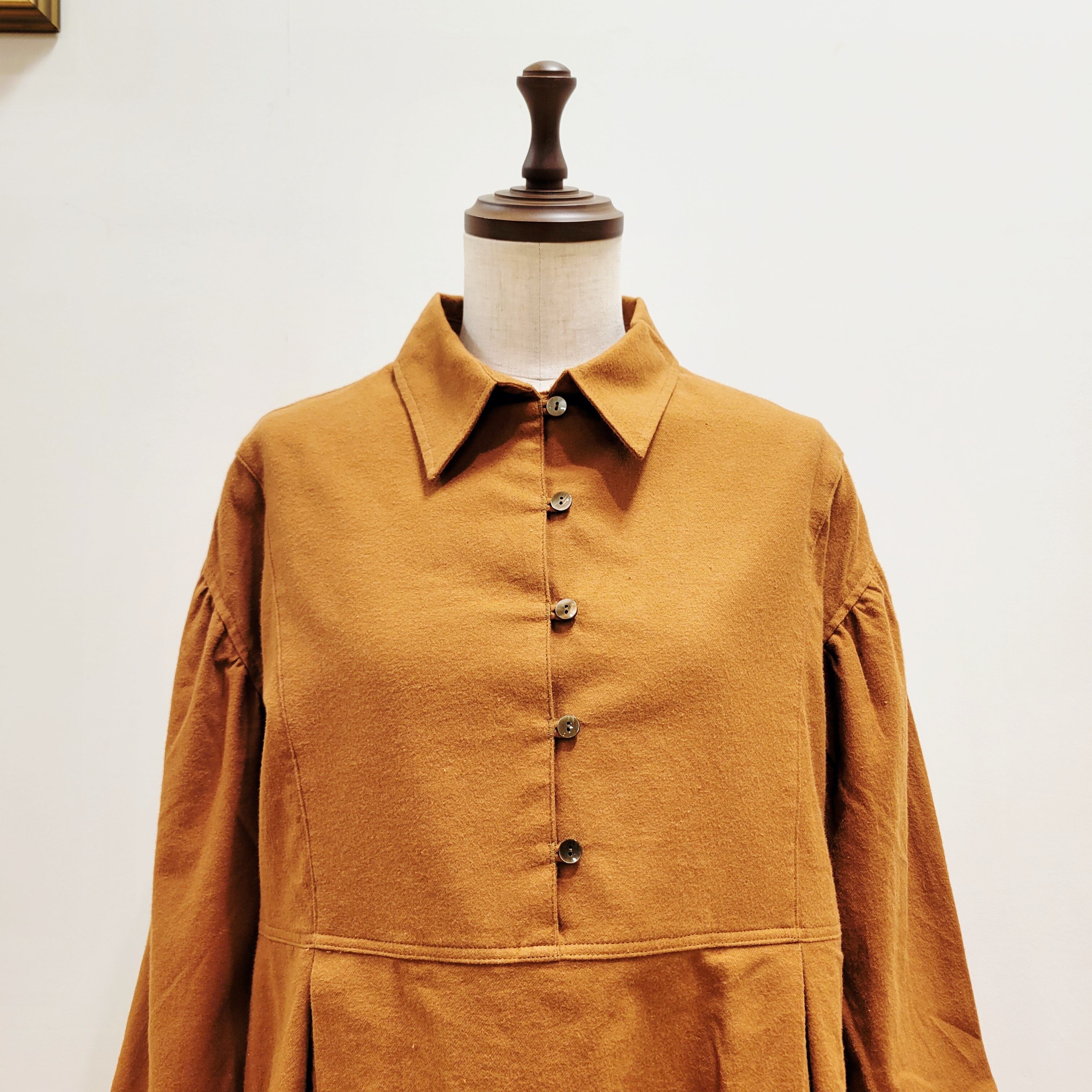 起毛感のあるコットンフランネル素材を使用した、あたたかみのあるワンピース。
