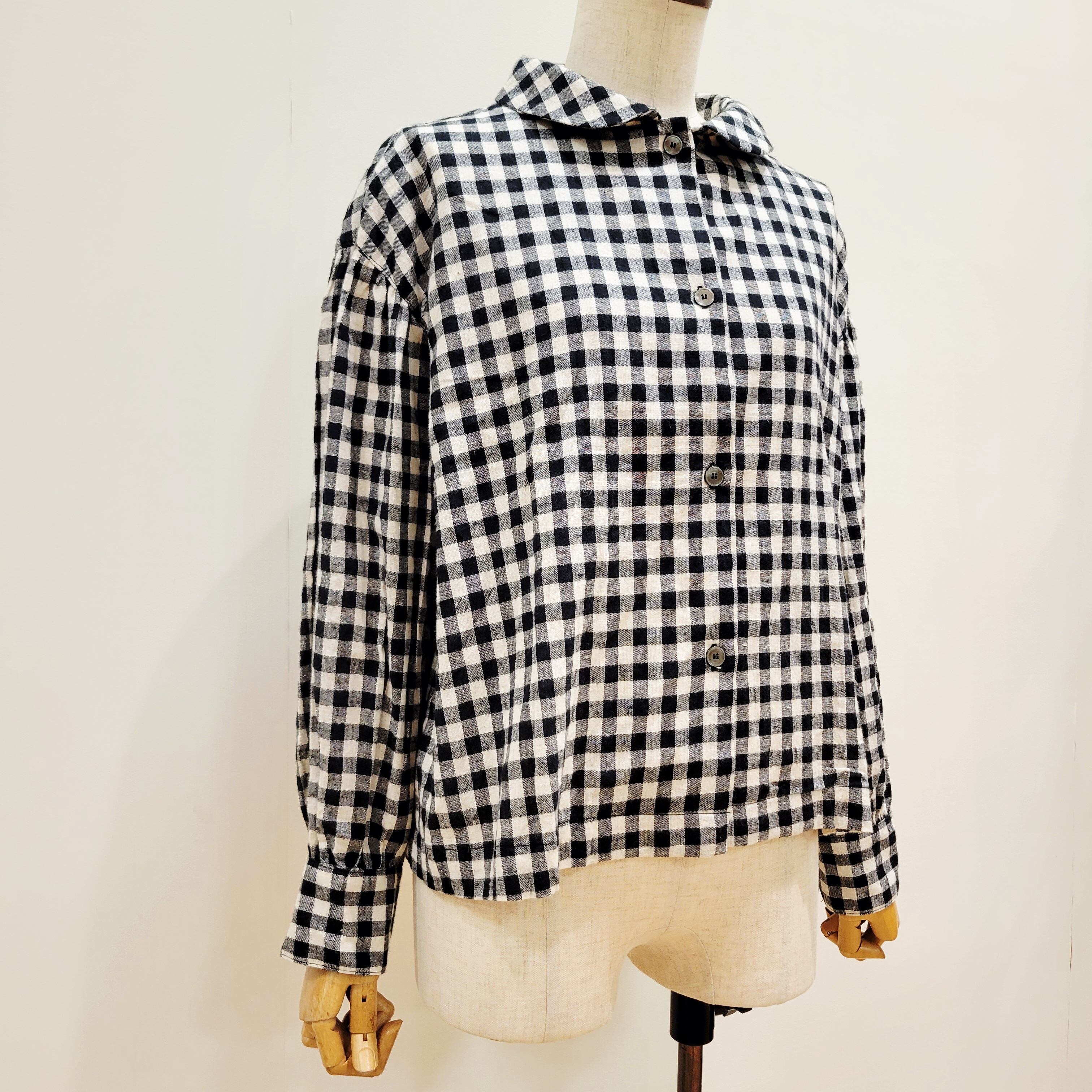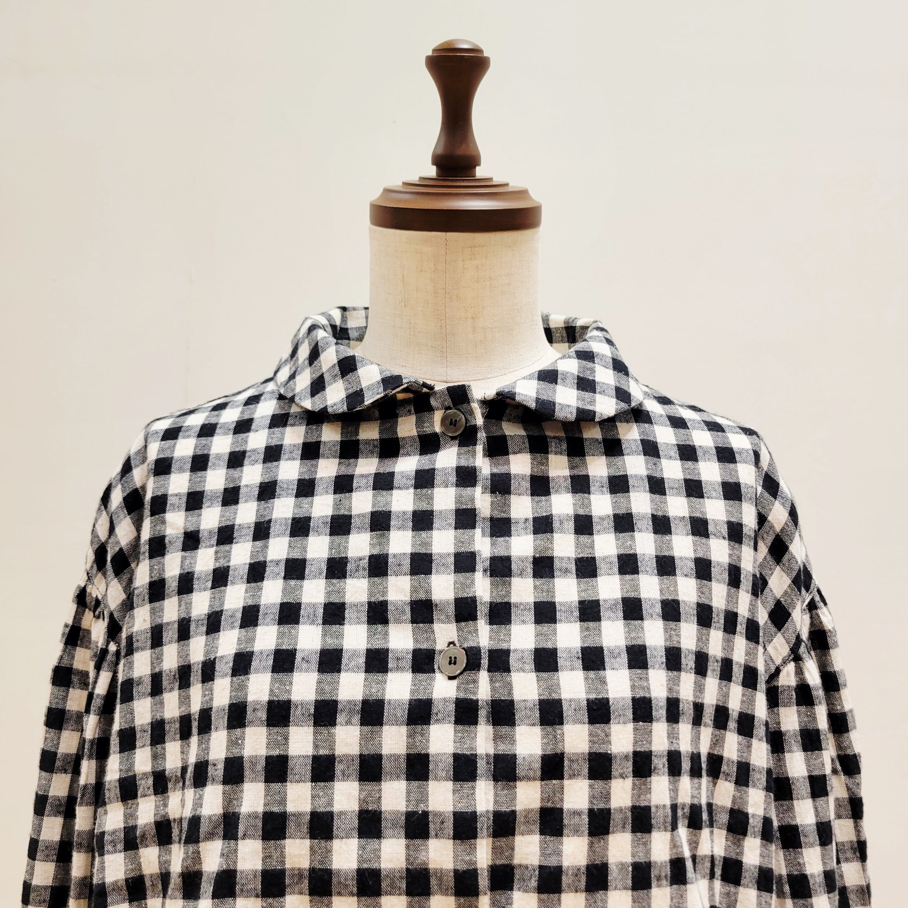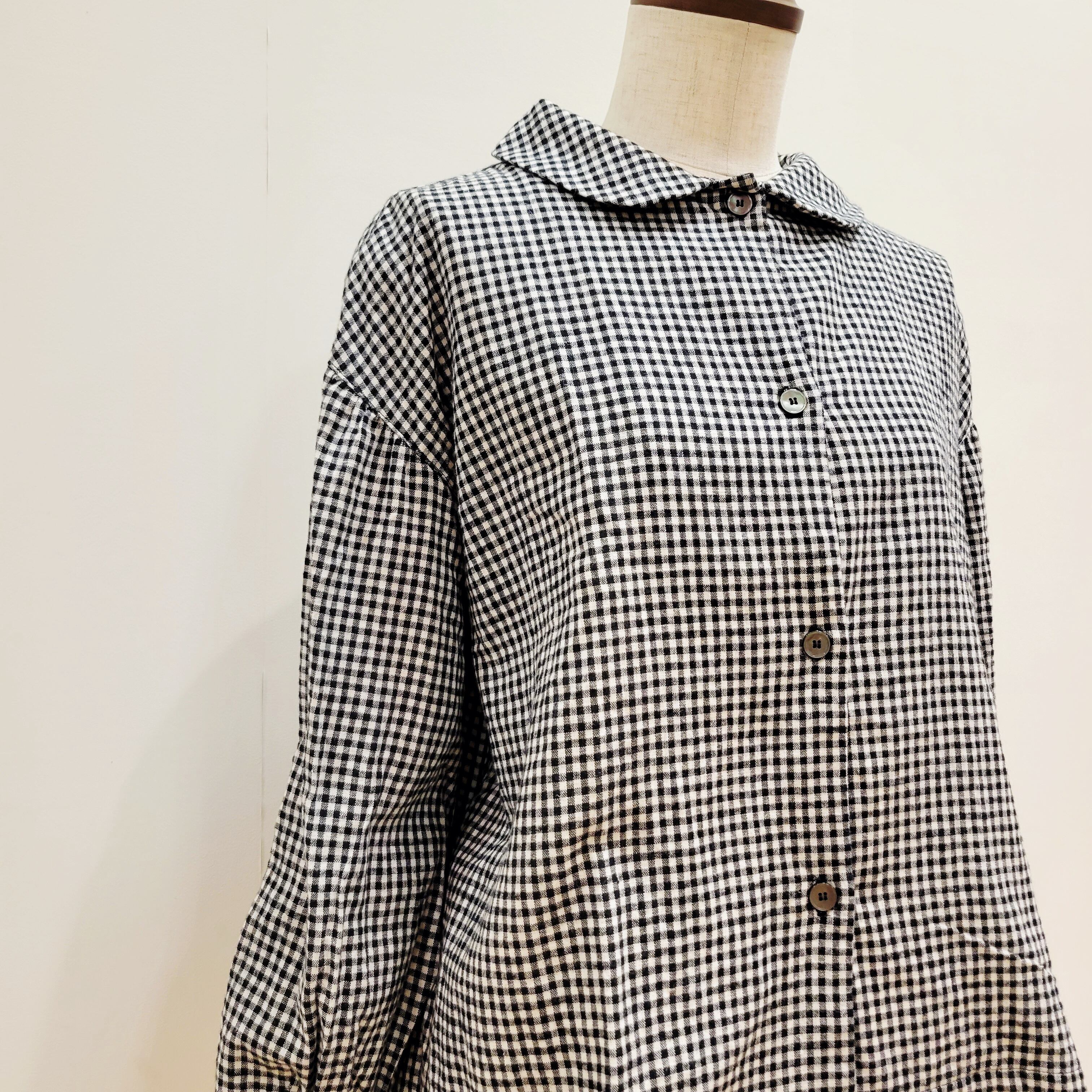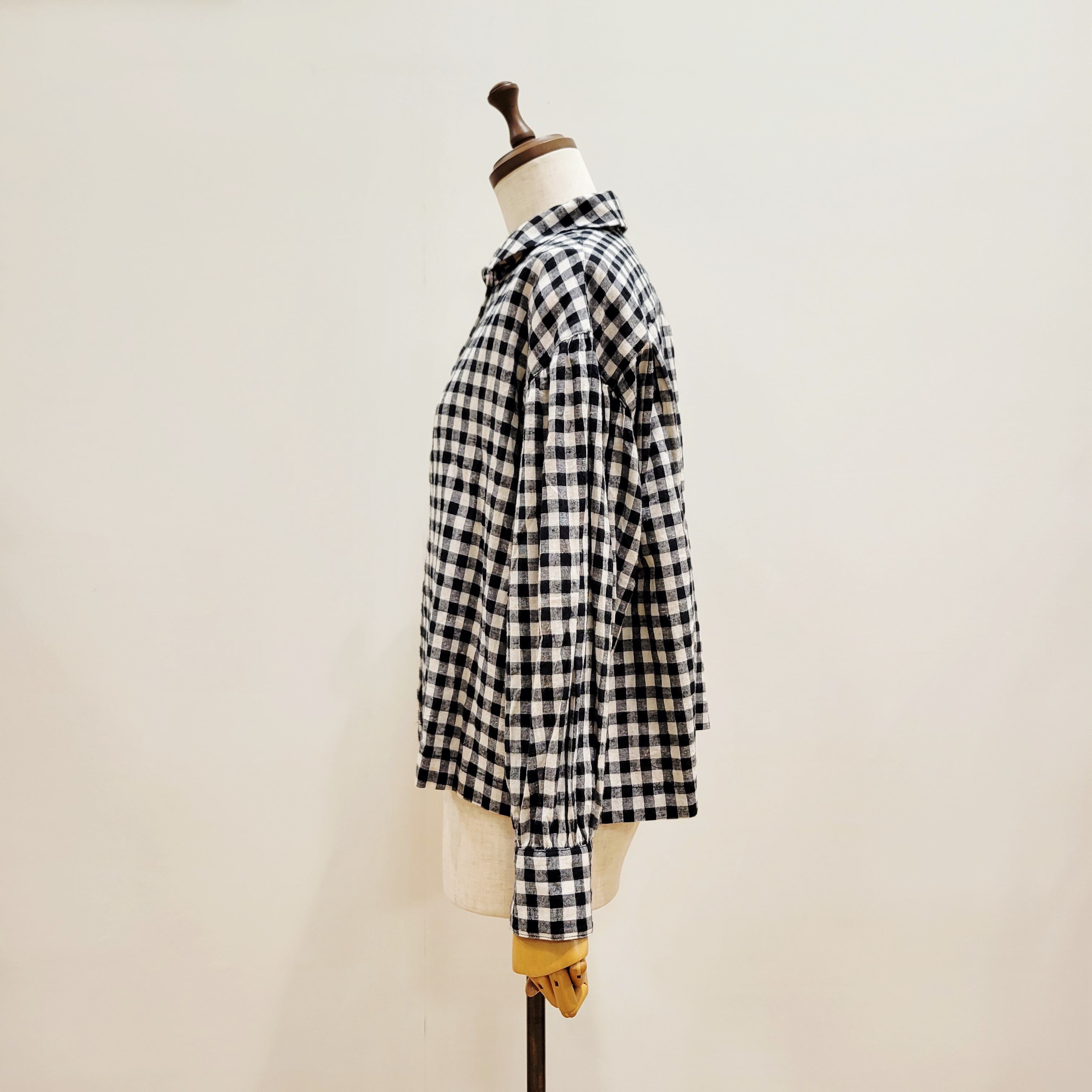 コットンリネンの素朴な風合いが魅力のギンガムチェックシャツ。