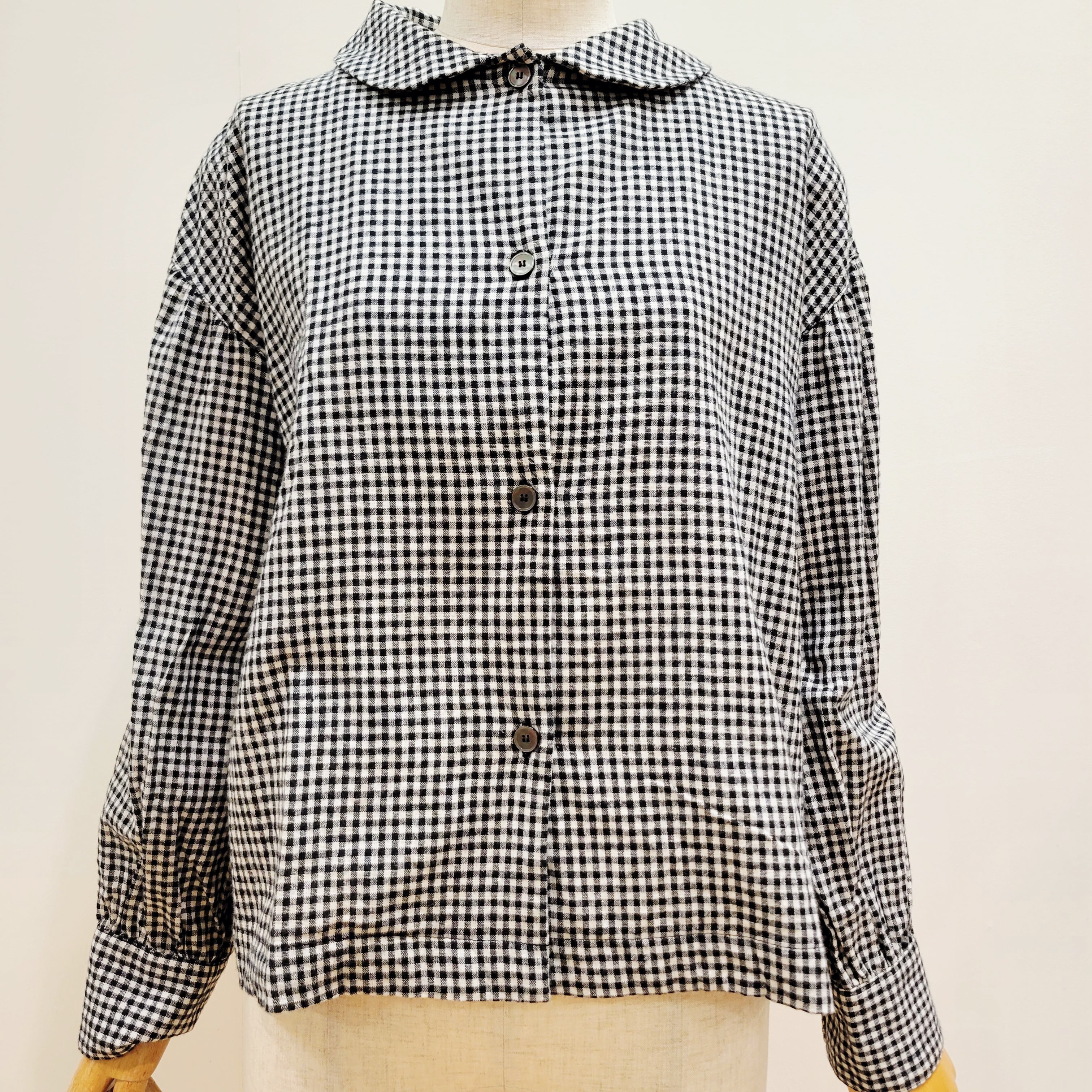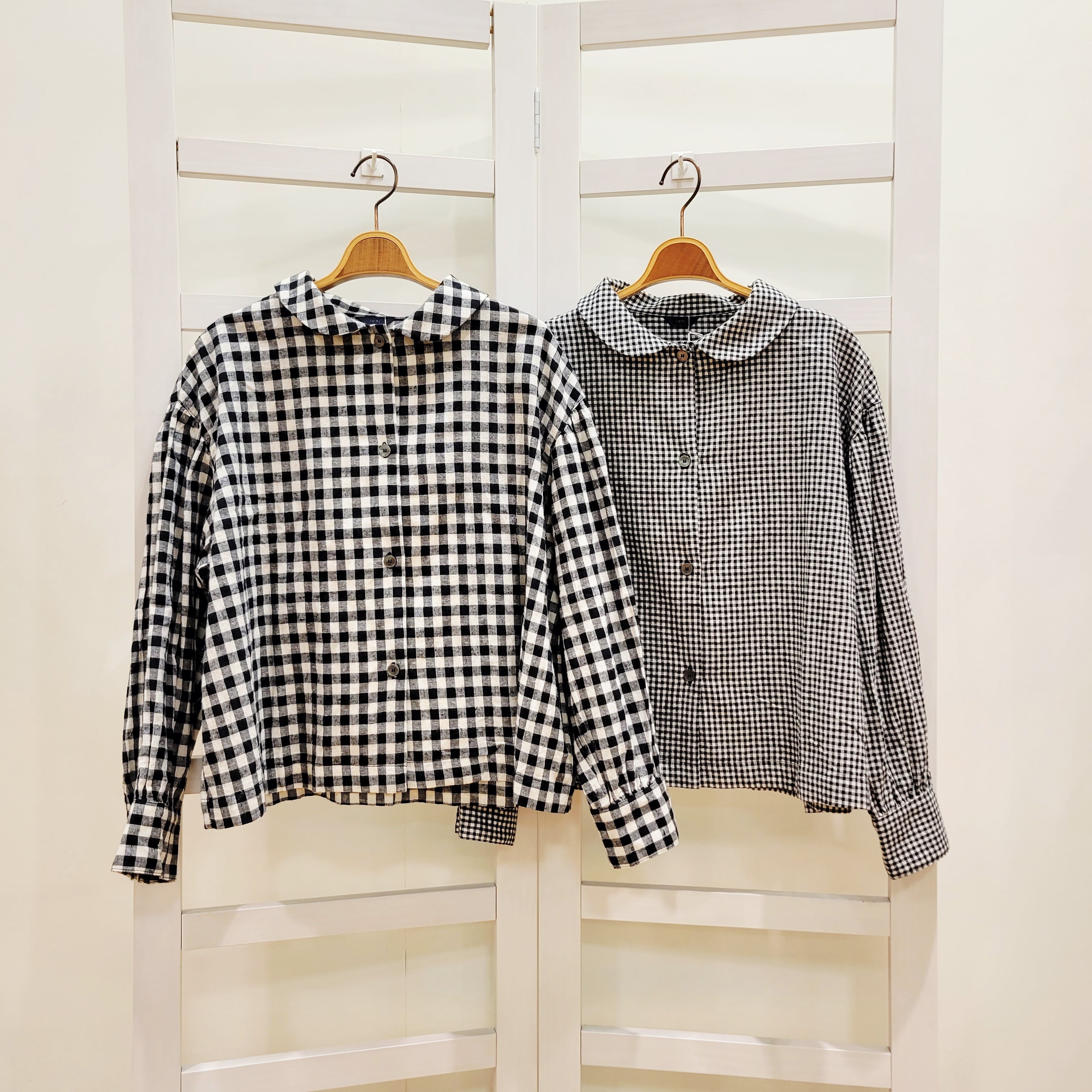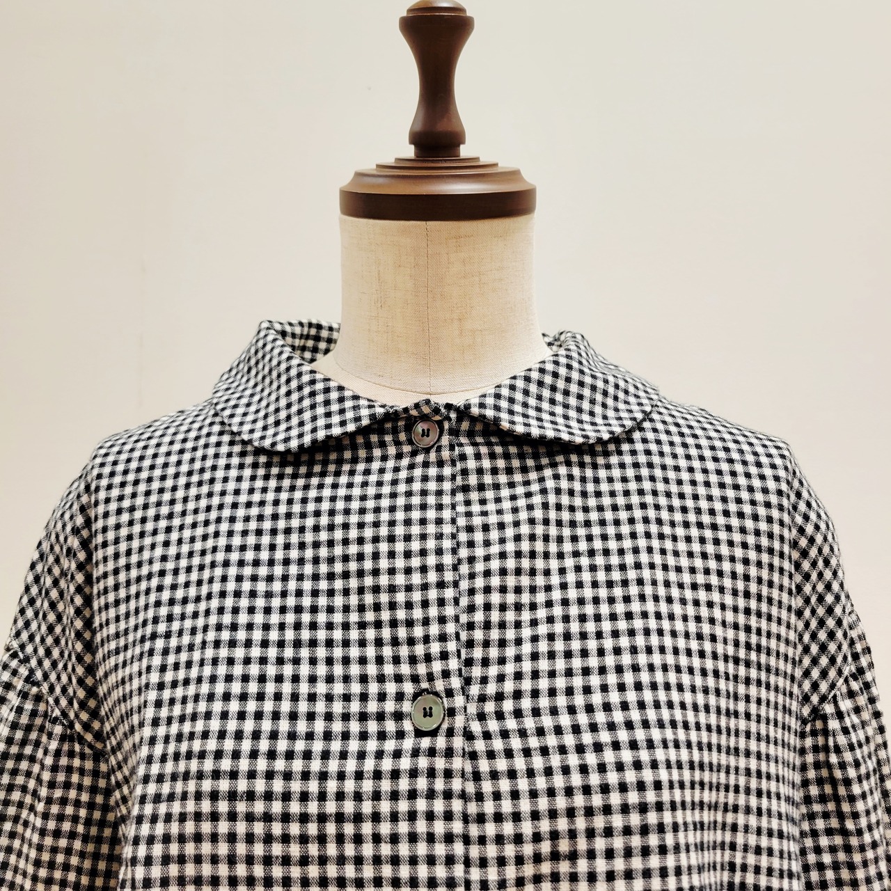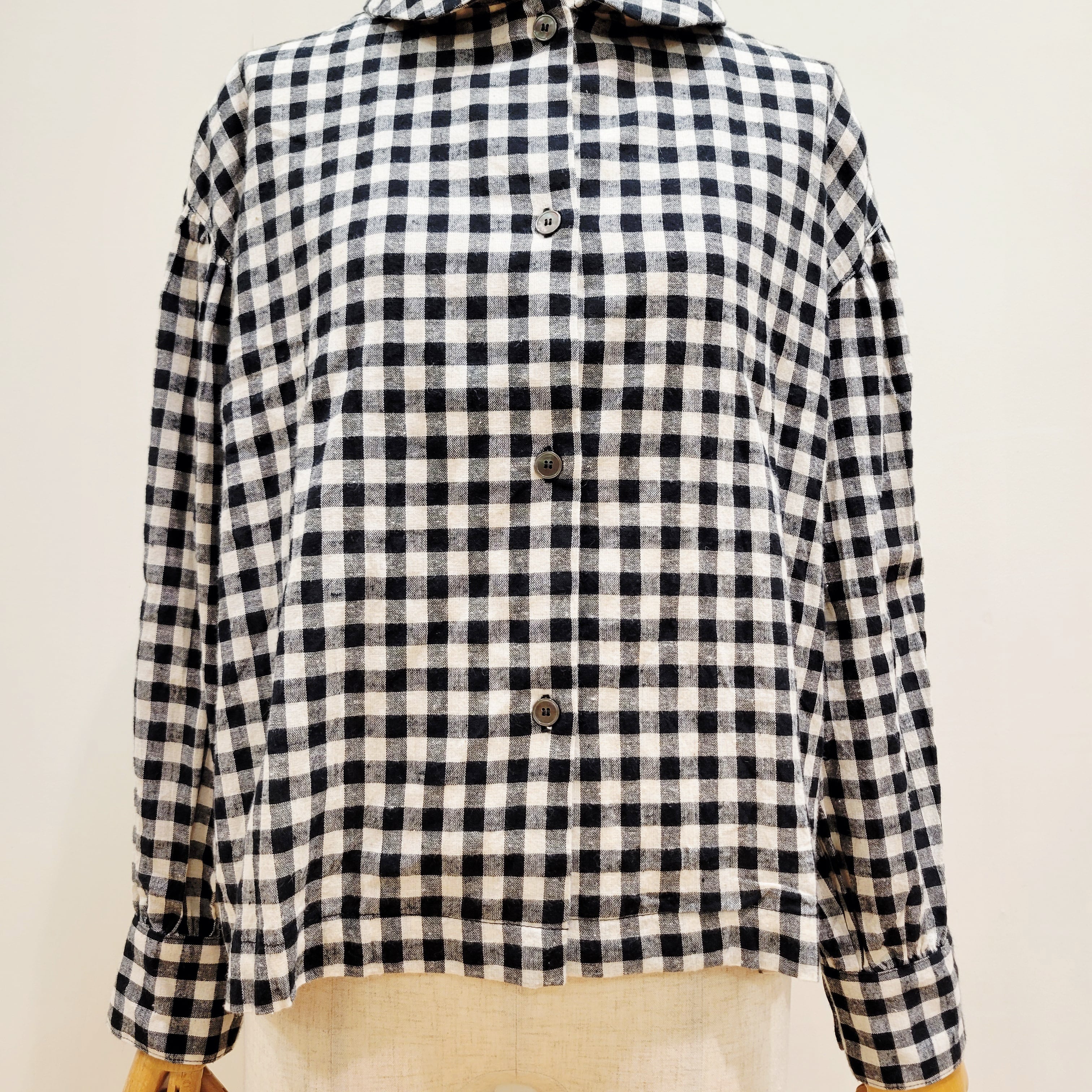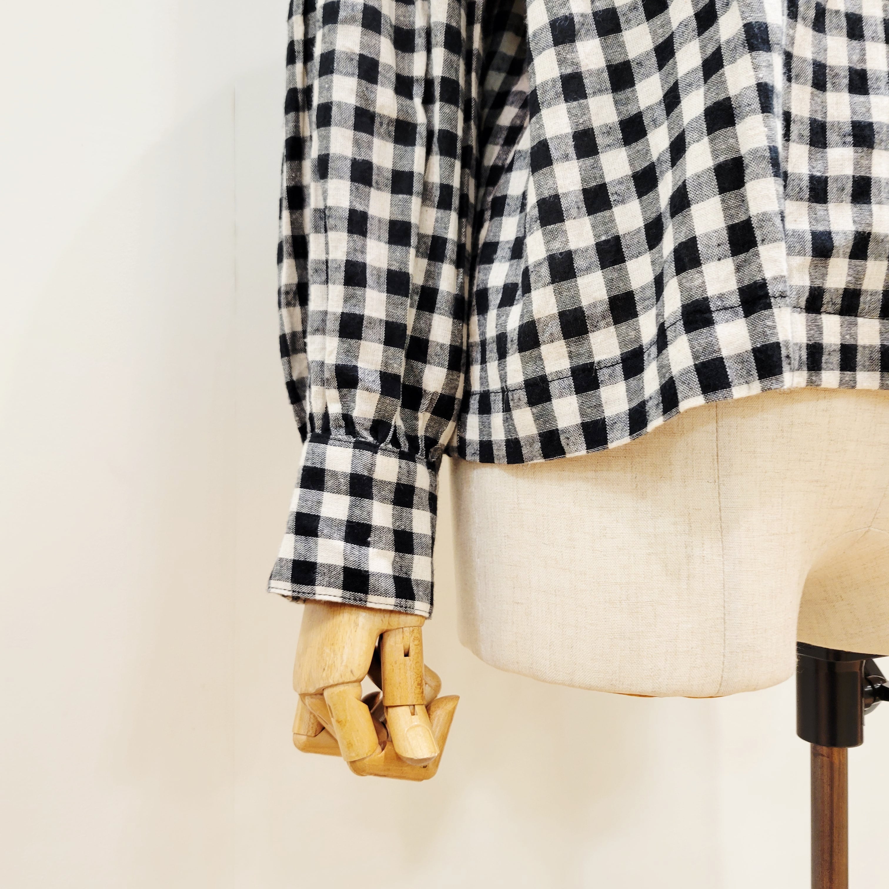 コットンリネンの素朴な風合いが魅力のギンガムチェックシャツ。