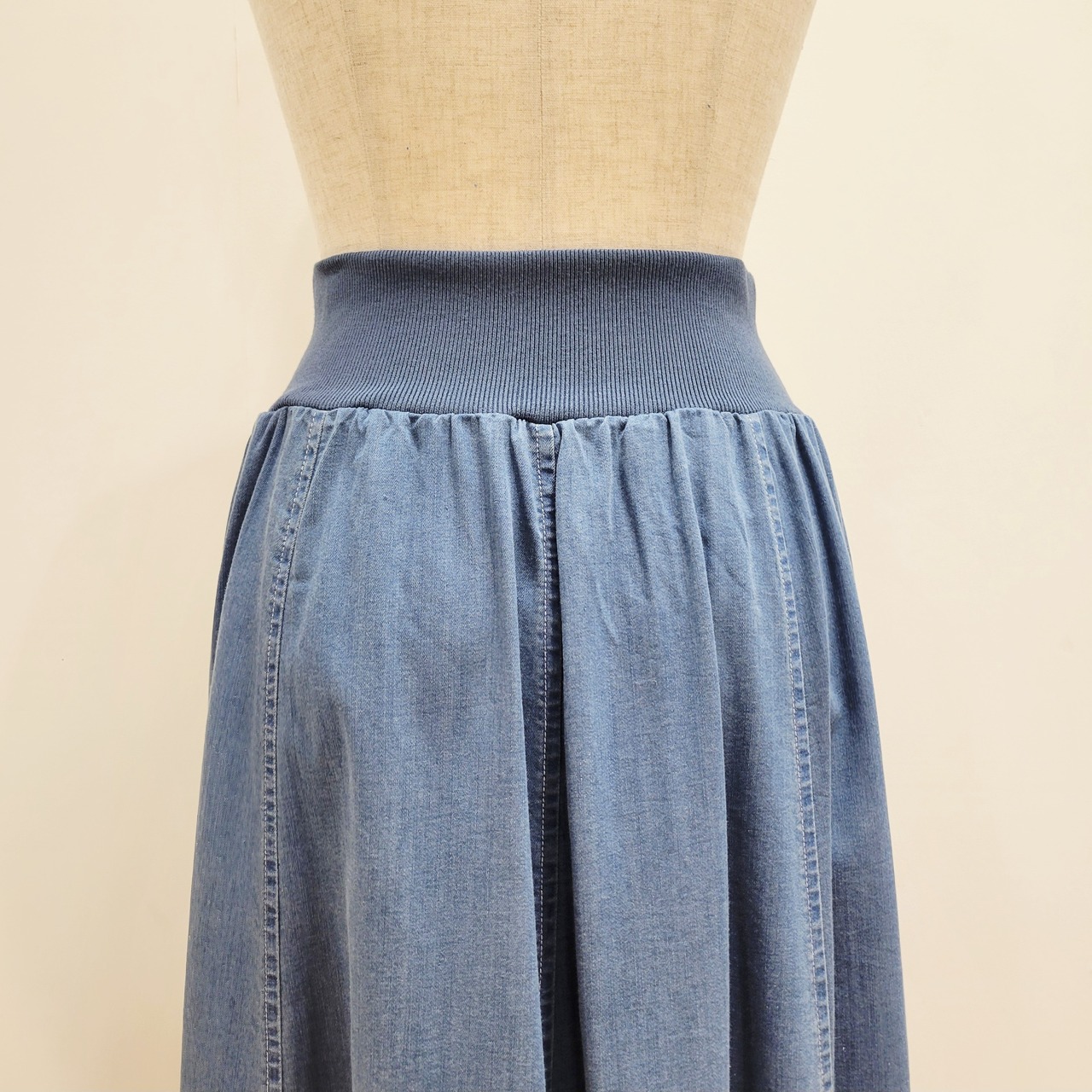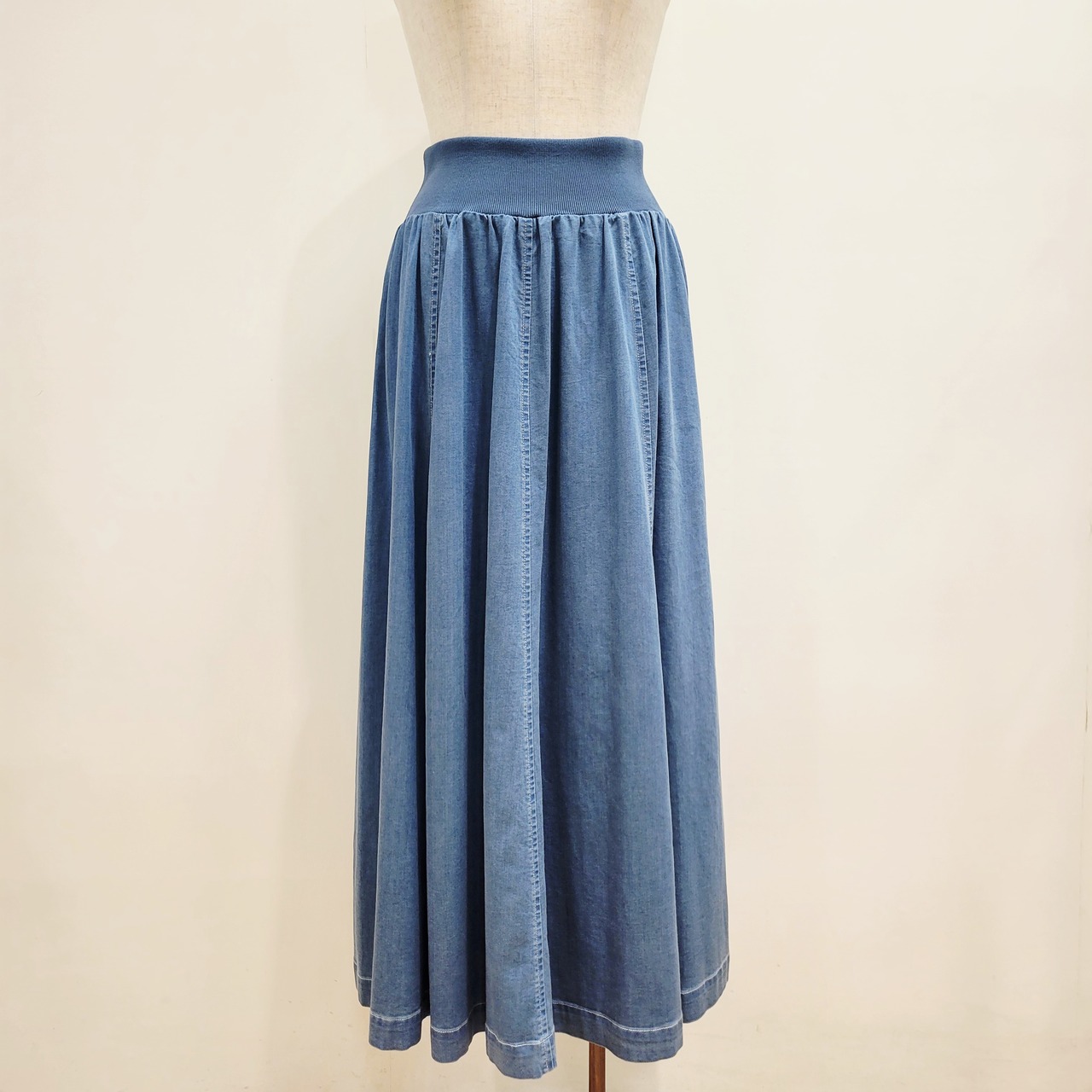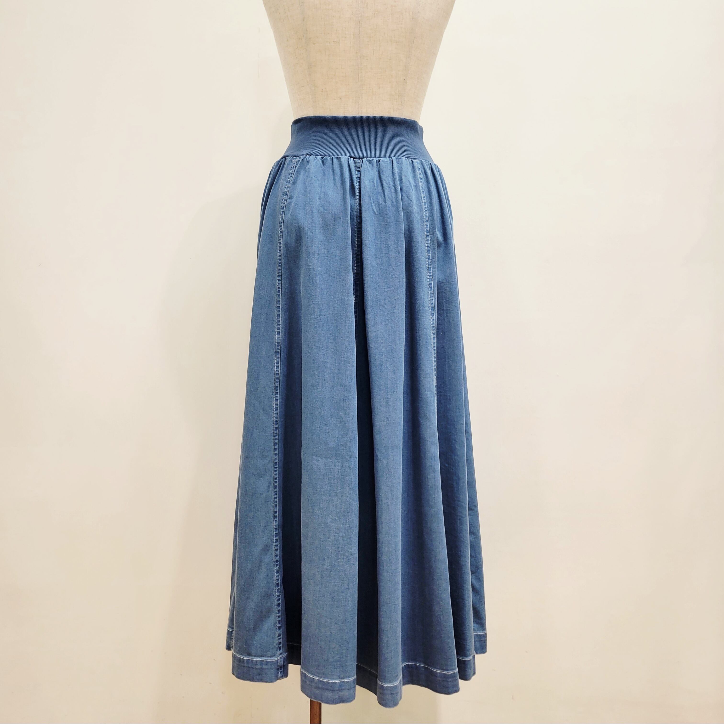 見た目も柔らかなデニム生地と程よいボリューム感のフレアシルエットで、カジュアルかつ上品な印象に。キレイめにもカジュアルにも合わせられるコーディネートしやすい一枚です。