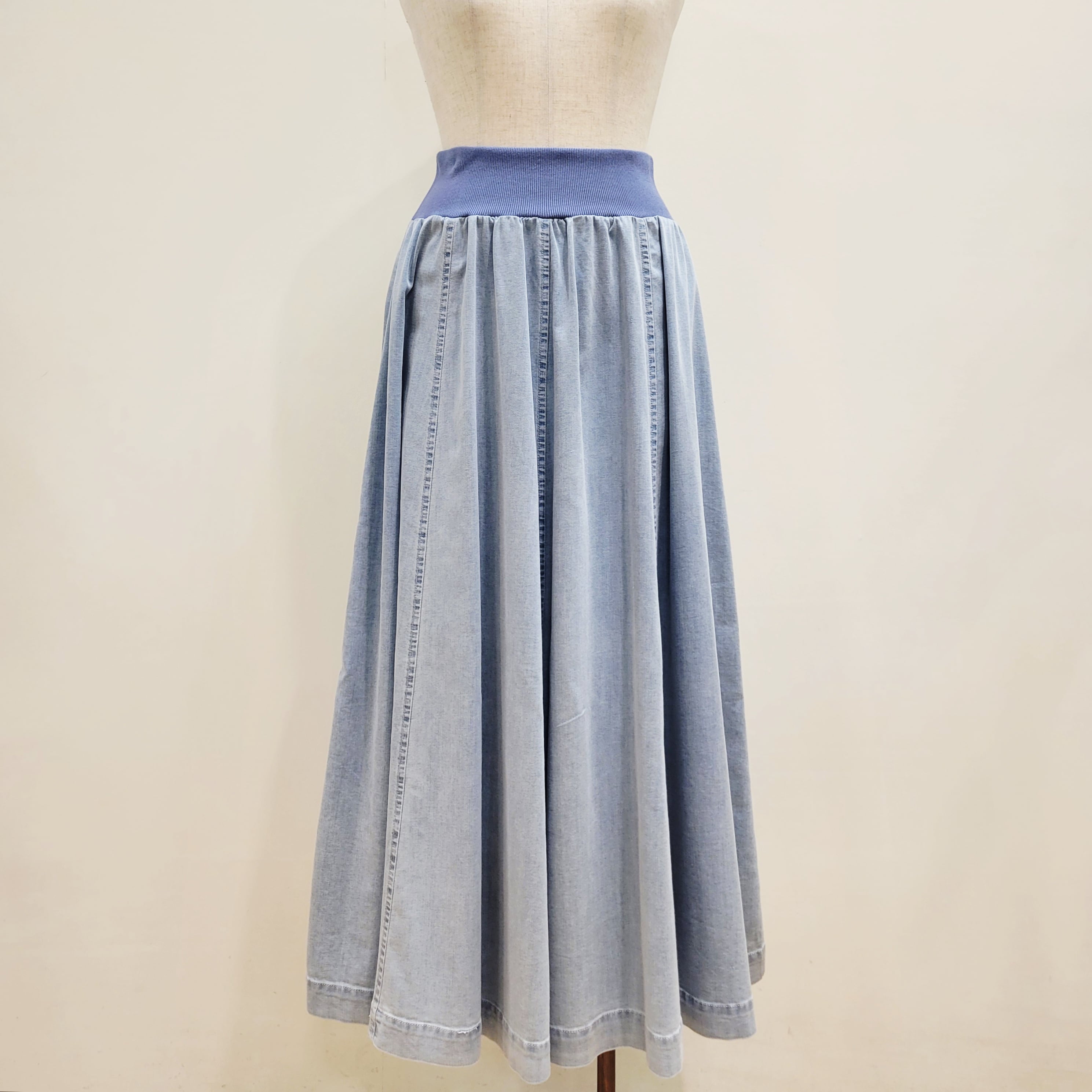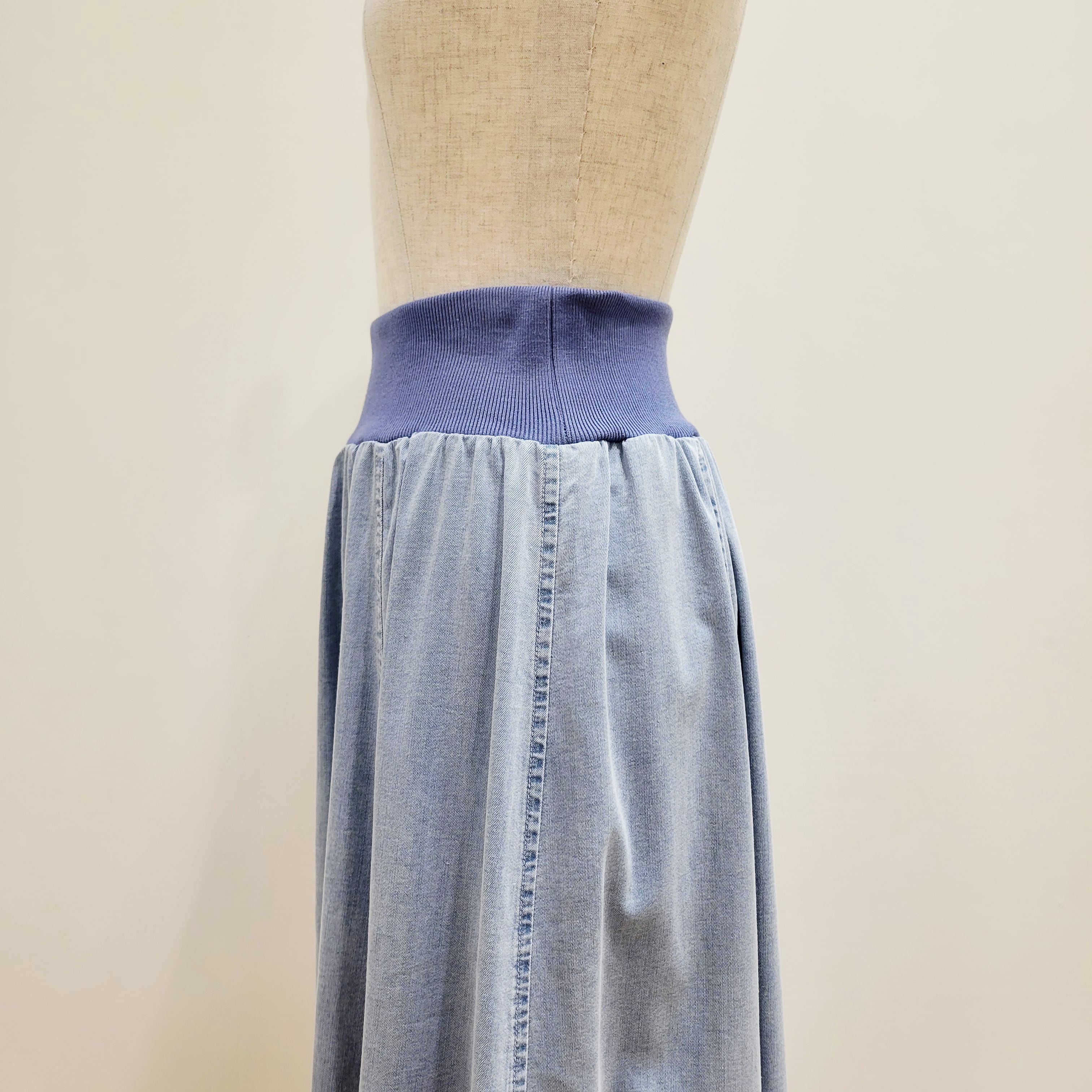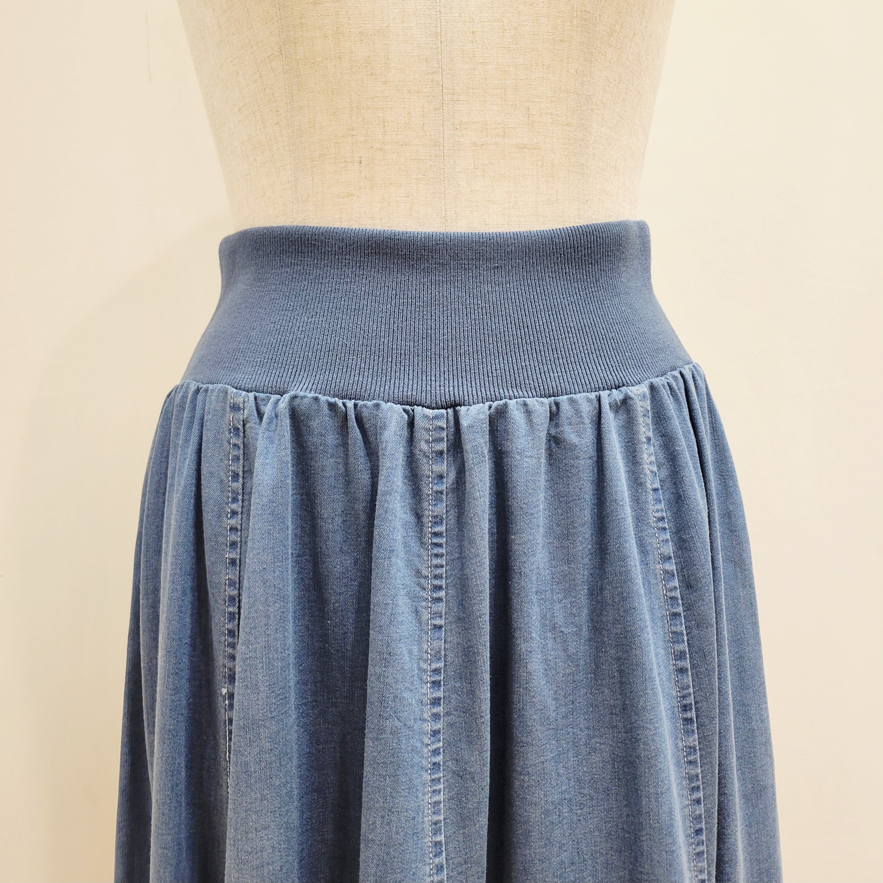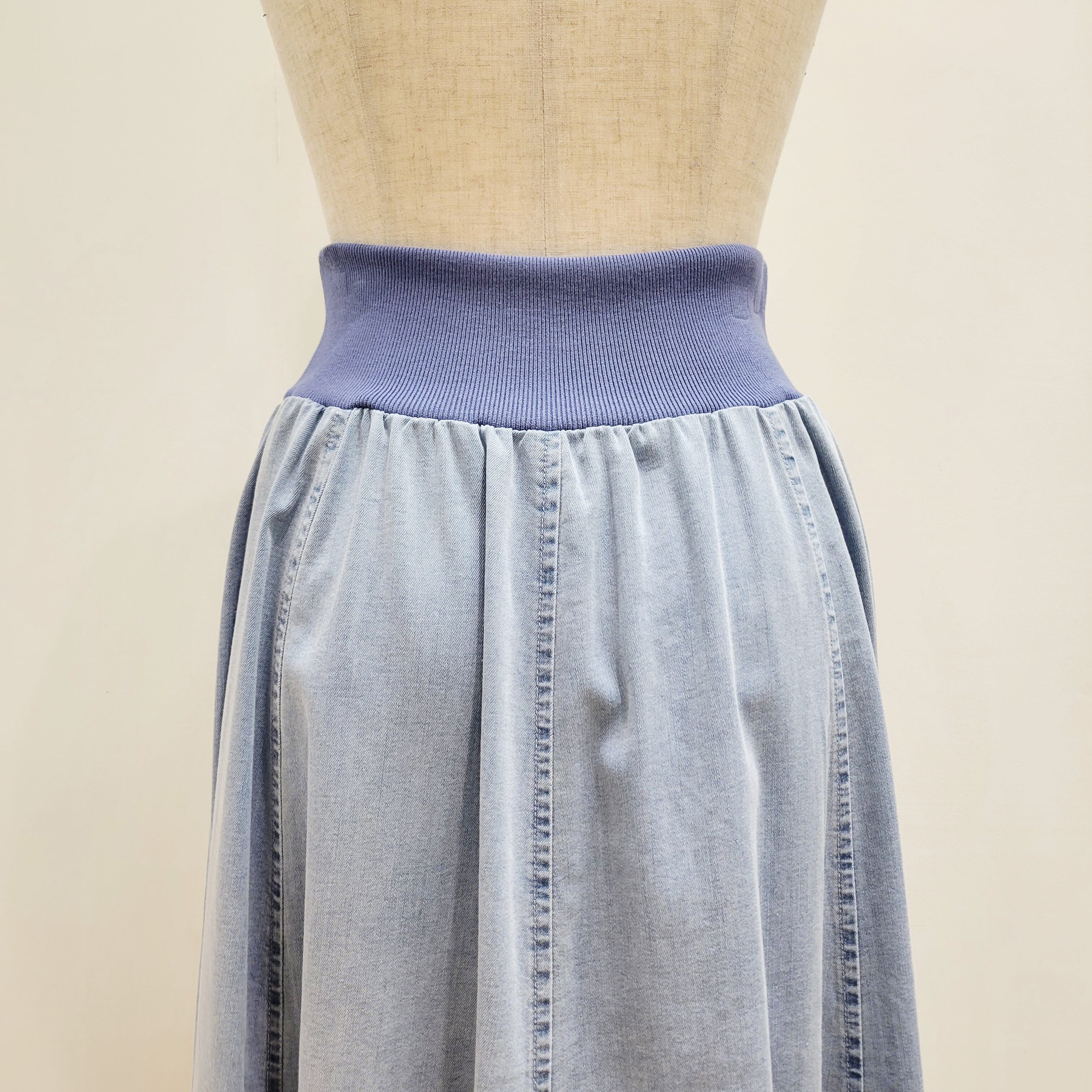 見た目も柔らかなデニム生地と程よいボリューム感のフレアシルエットで、カジュアルかつ上品な印象に。キレイめにもカジュアルにも合わせられるコーディネートしやすい一枚です。