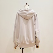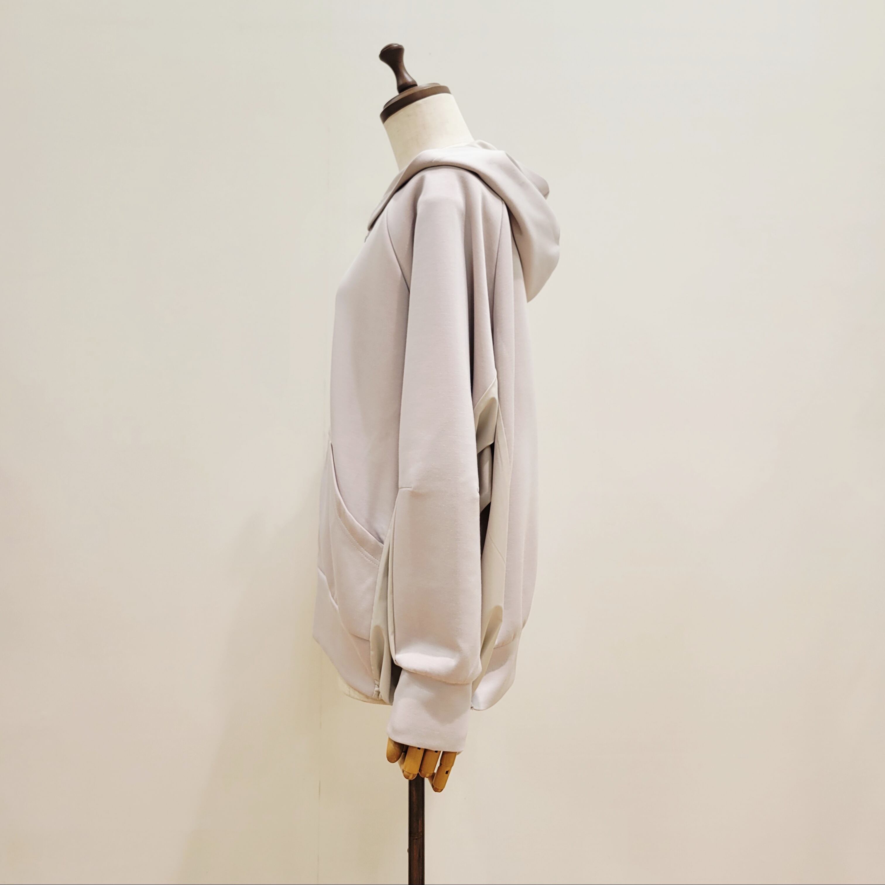 ハリと弾力のある軽いダンボール素材を使用した、ゆったりシルエットのフーディーです。