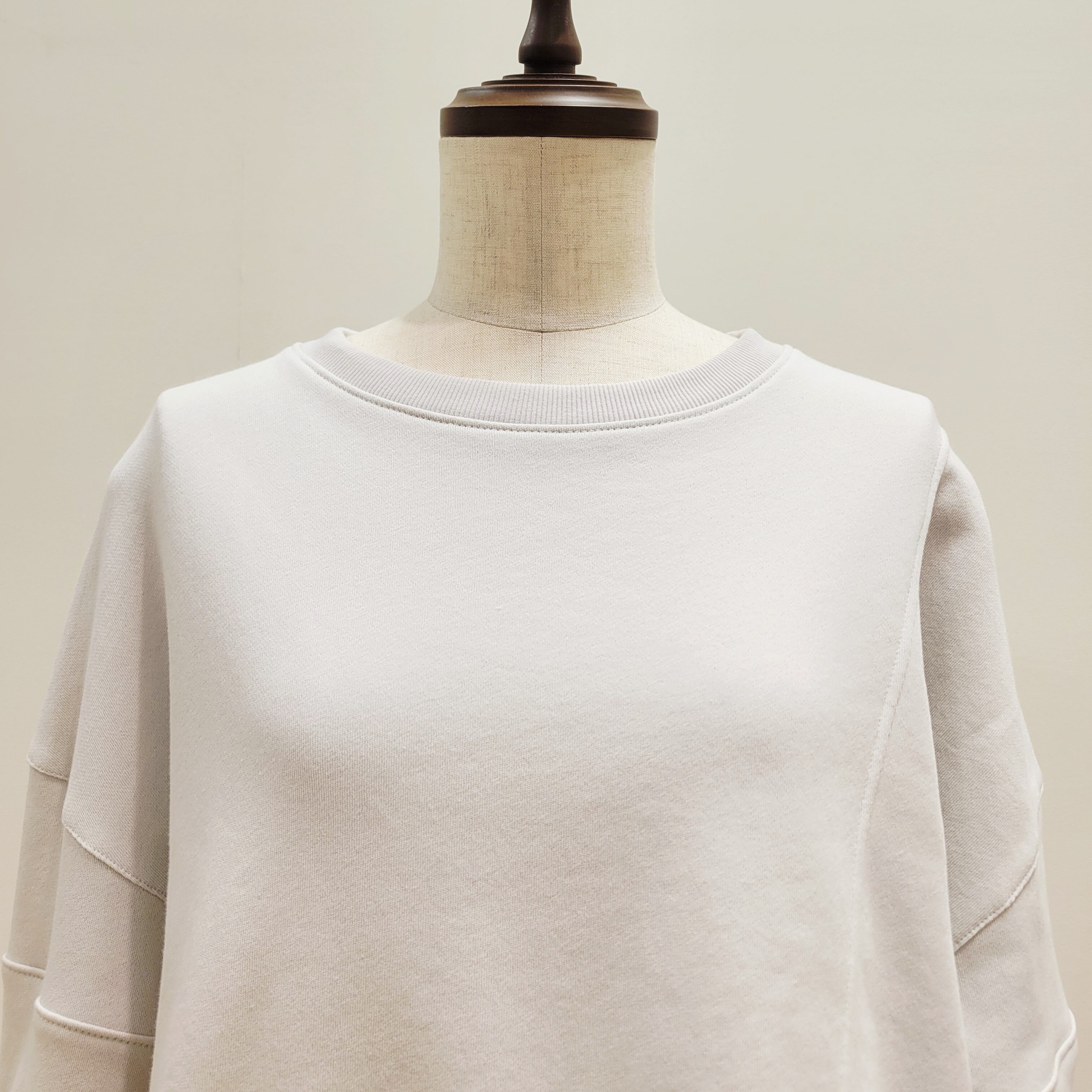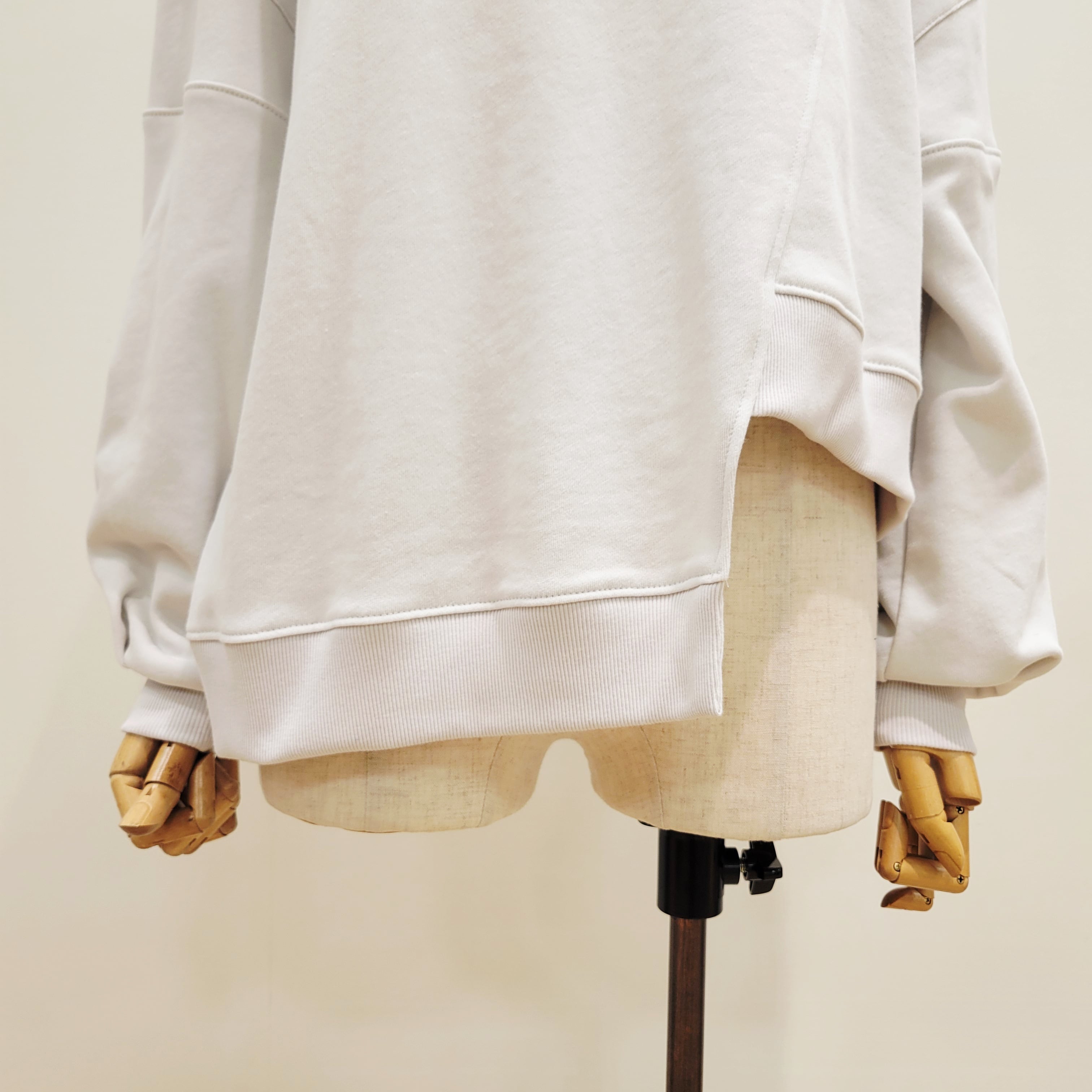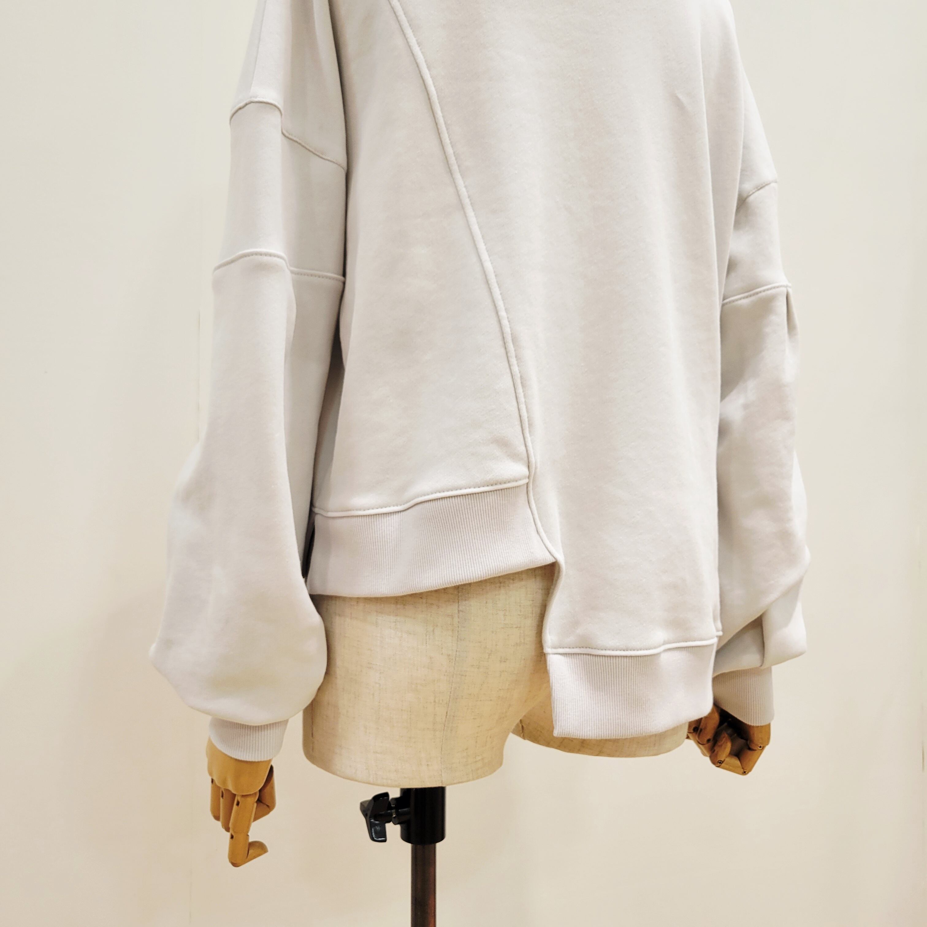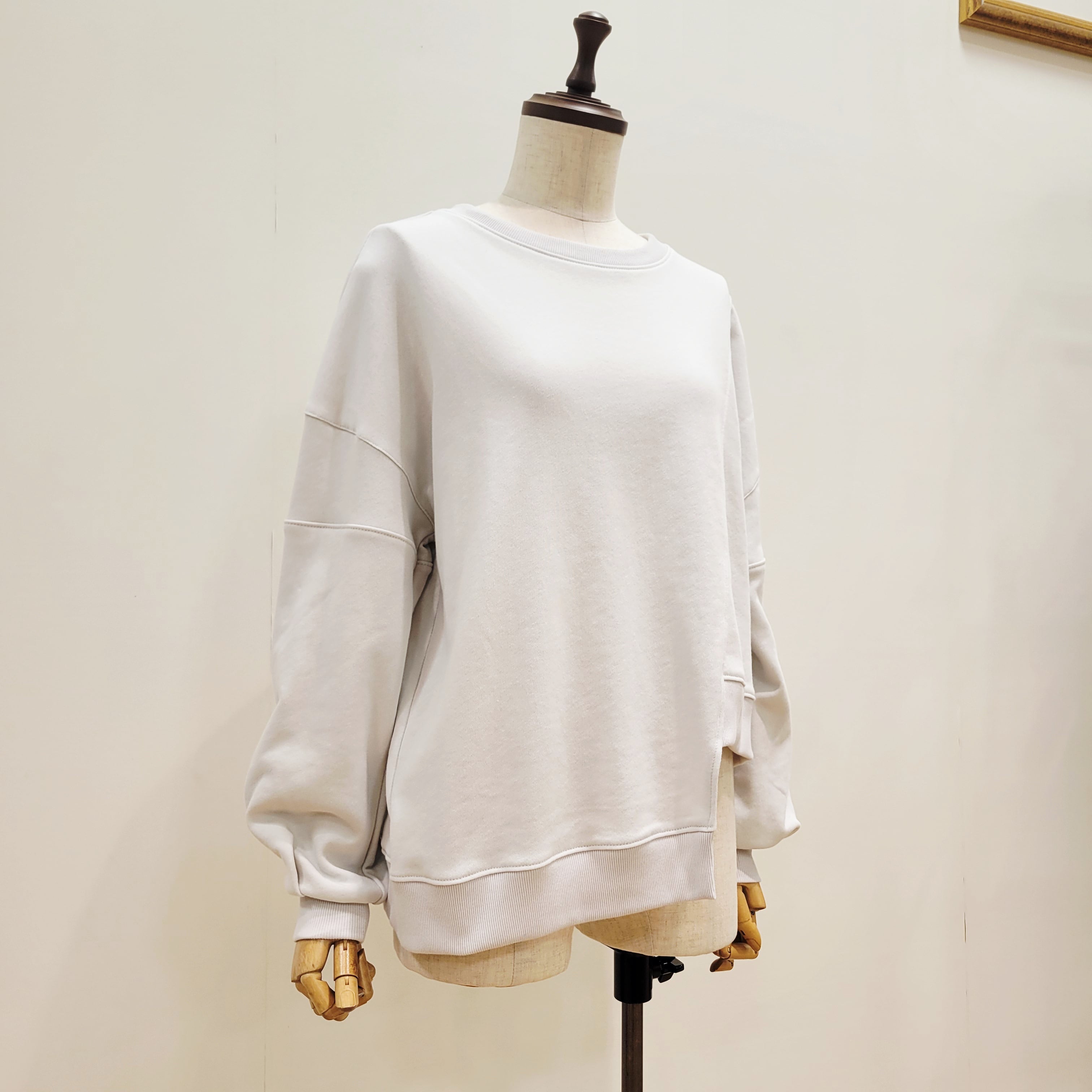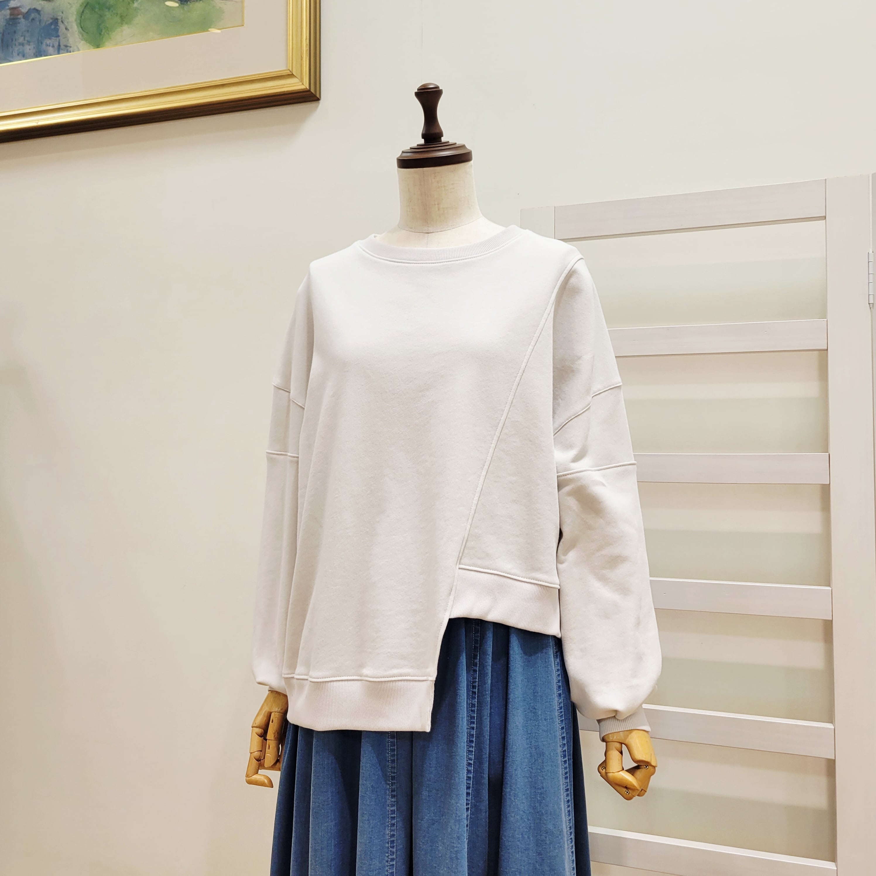 裾のアシンメトリーな丈感が目を惹くプルオーバー。