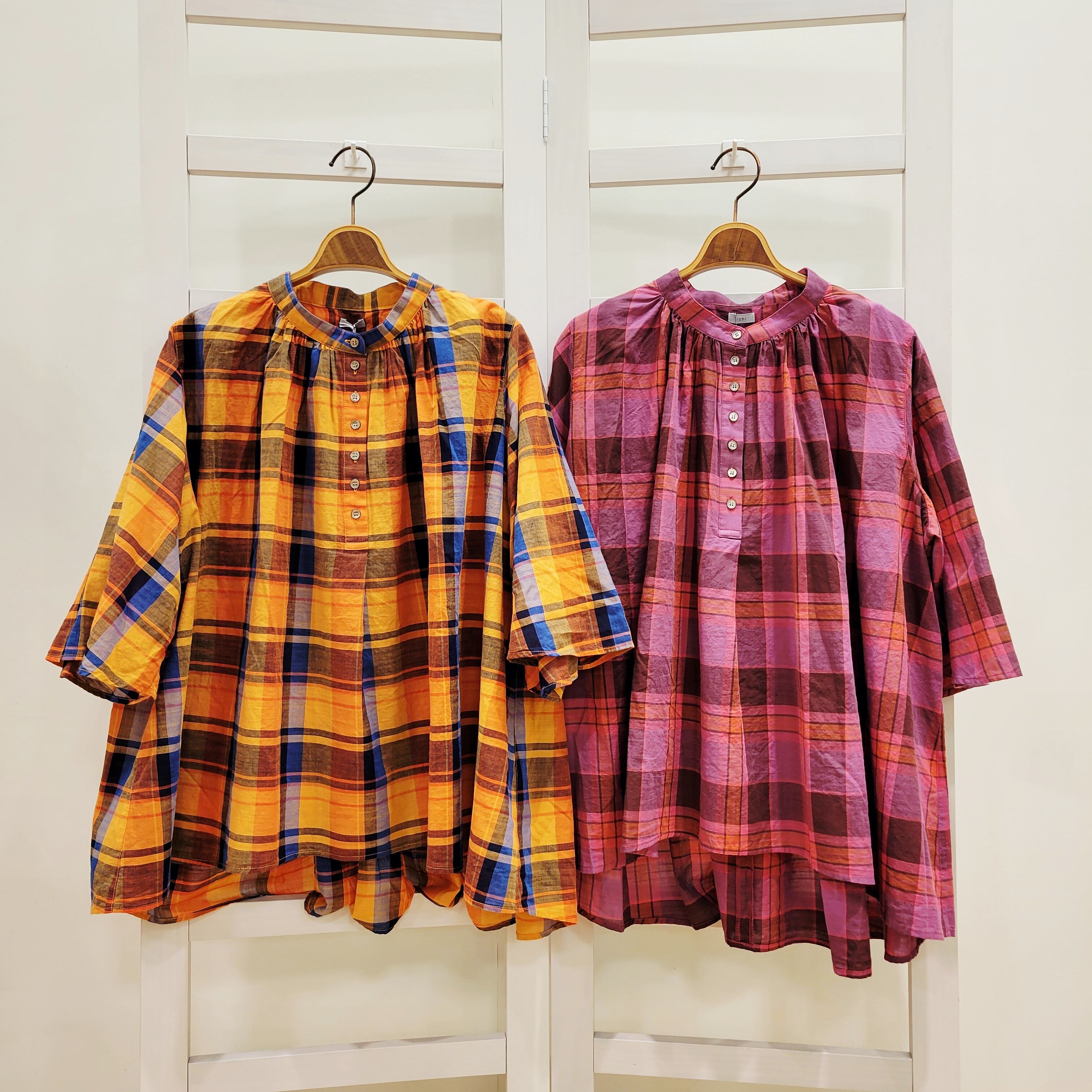【ichi (イチ)】コットンチェック バンドカラーブラウス