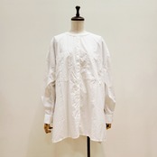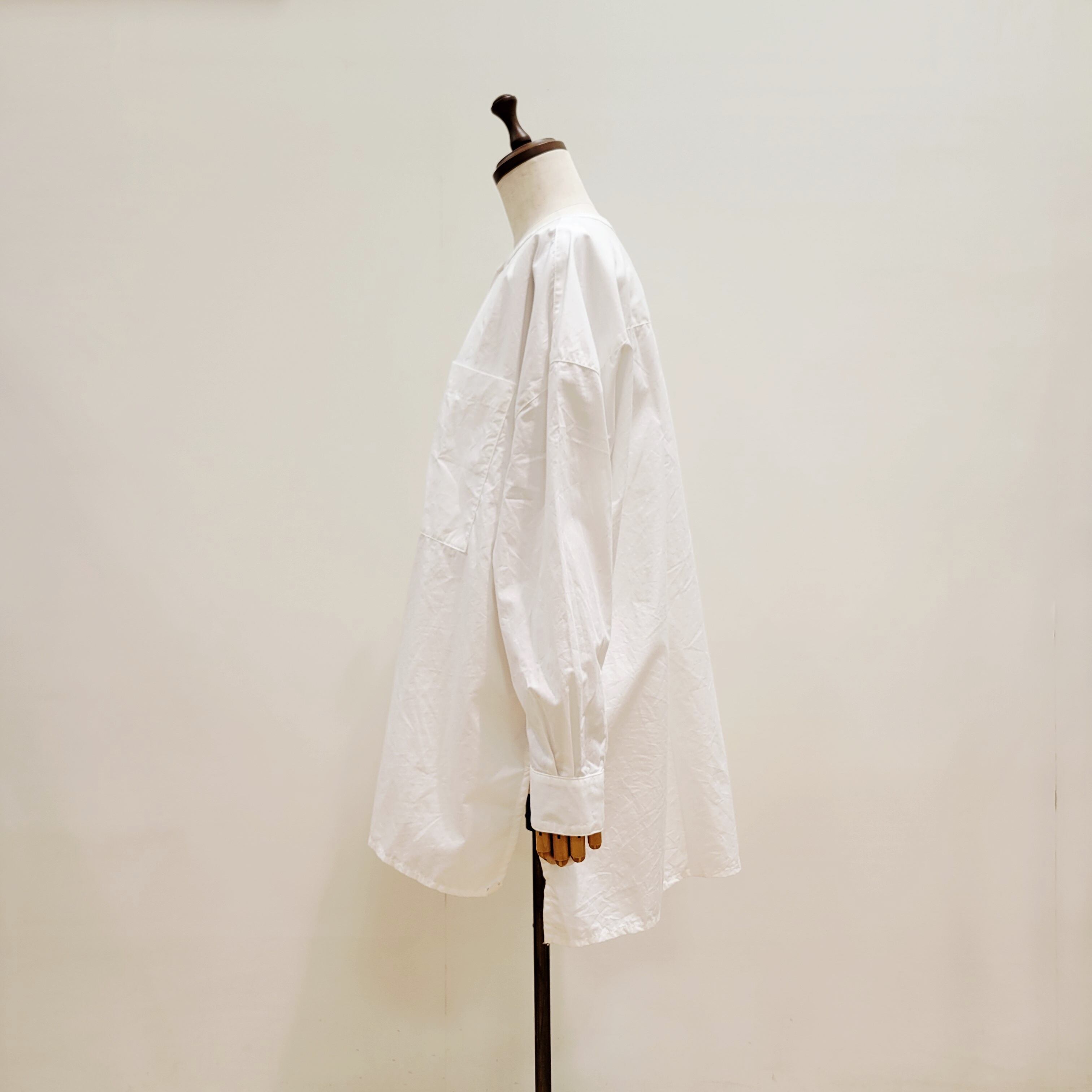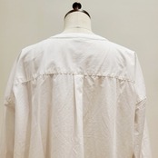 首元をすっきりと見せるシンプルな襟のデザインにより、どんなボトムスとも美しく馴染む作り。ゆったりとした身幅のデザインでリラックス感がありつつも、生地の質感が上品な佇まいをキープしてくれます。