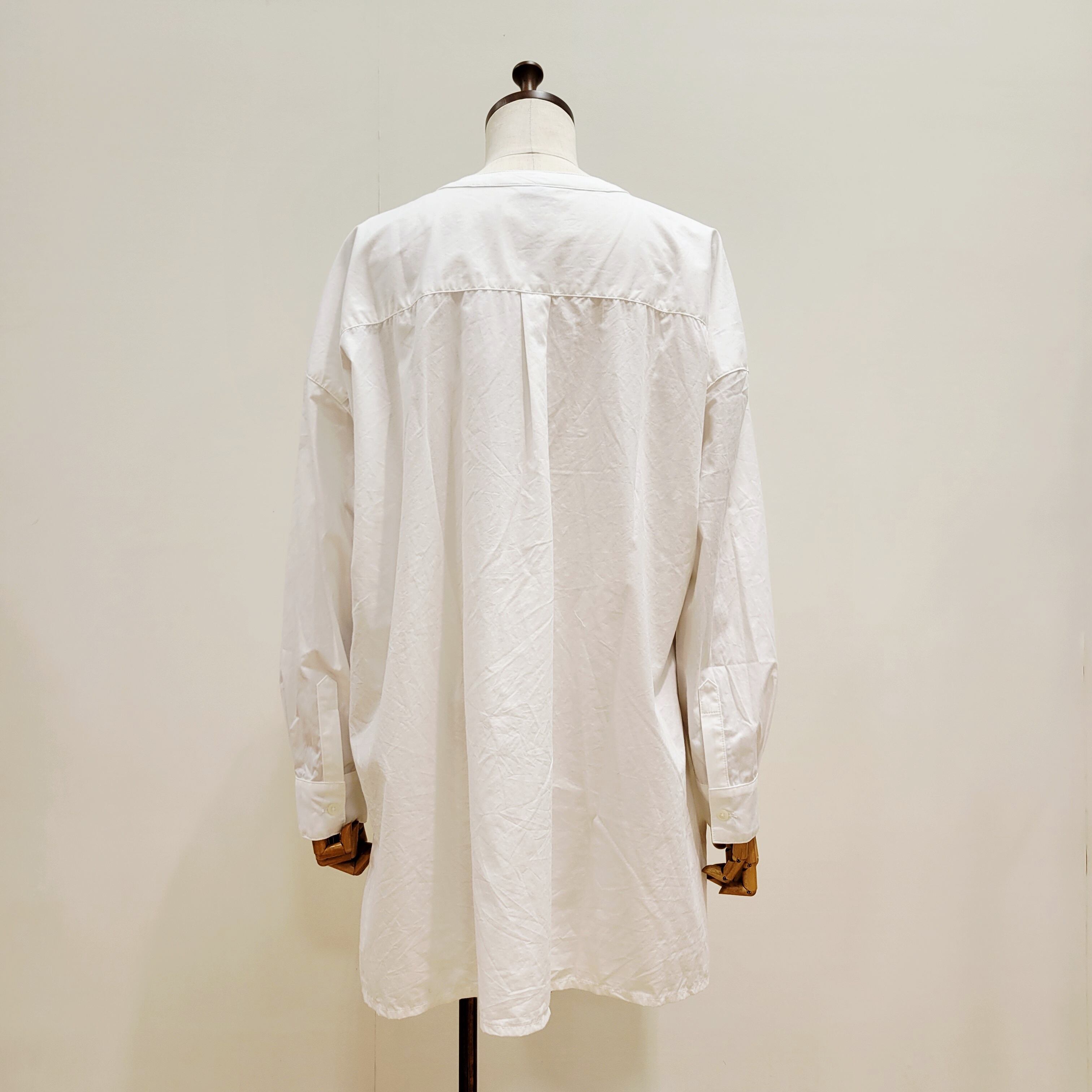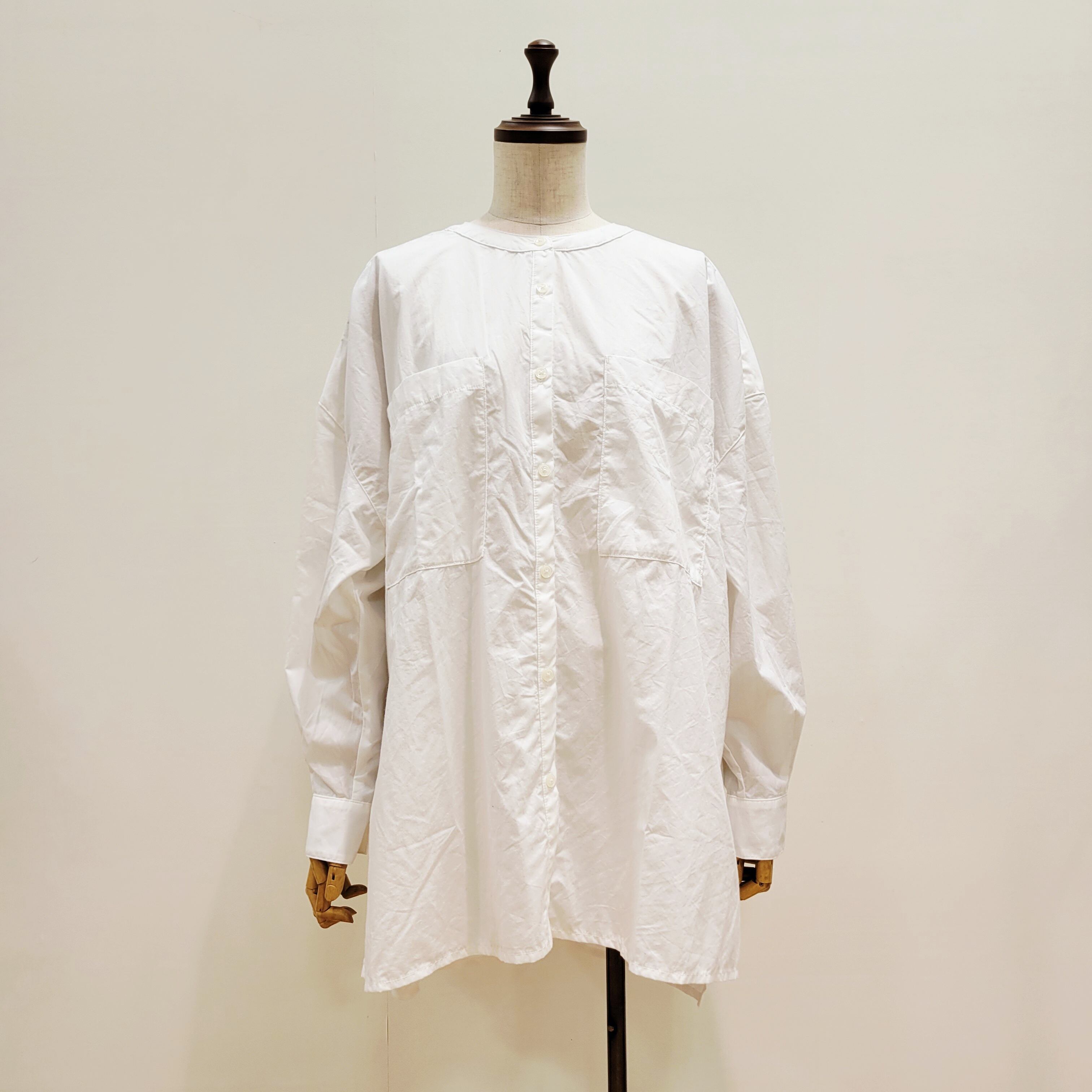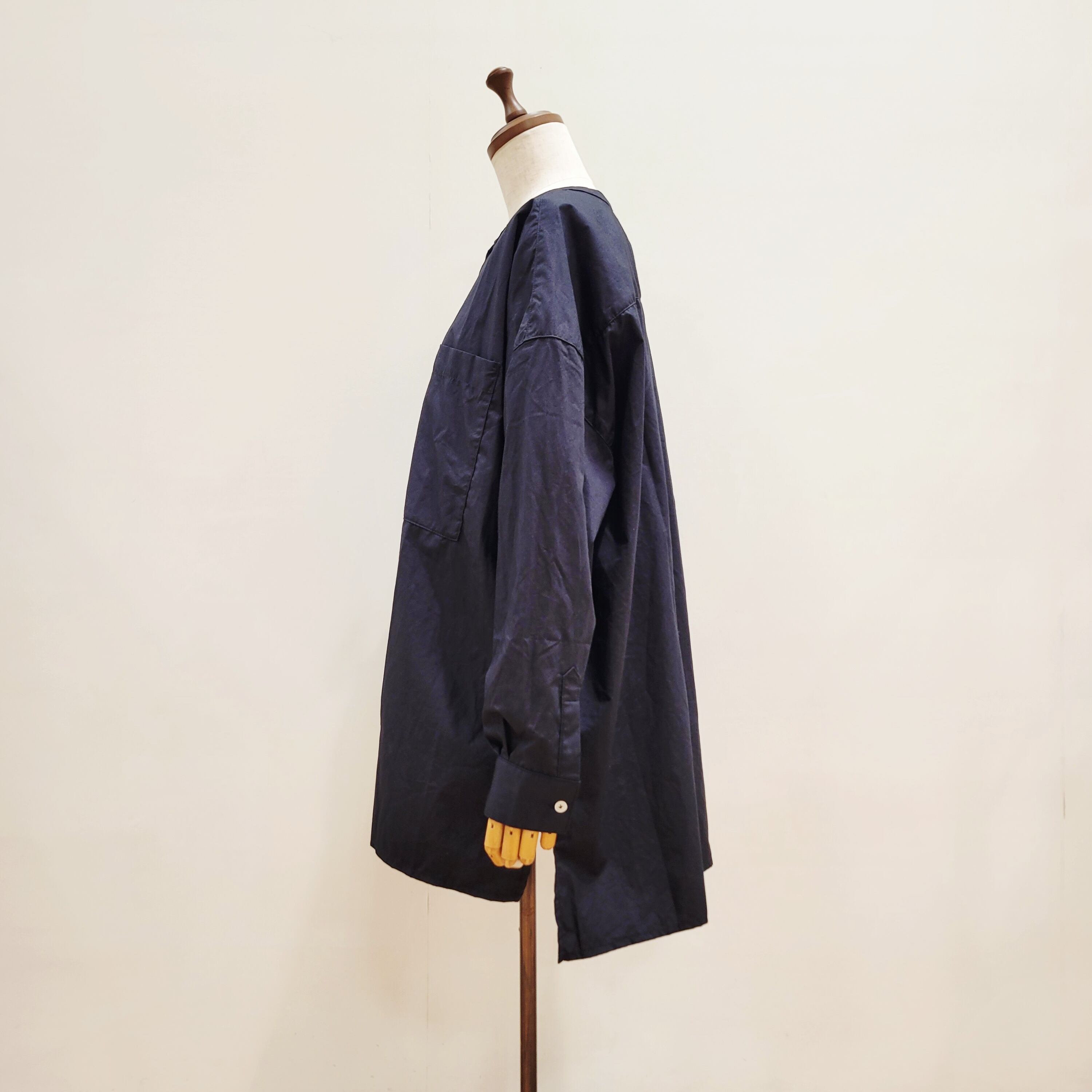 高密度に織り上げられたタイプライターコットン生地を使用し、さらりと涼しい肌ざわりを実現した一着。独特のハリ感とナチュラルなシボ感が、大人の装いに洗練された清潔感をプラスしてくれます。