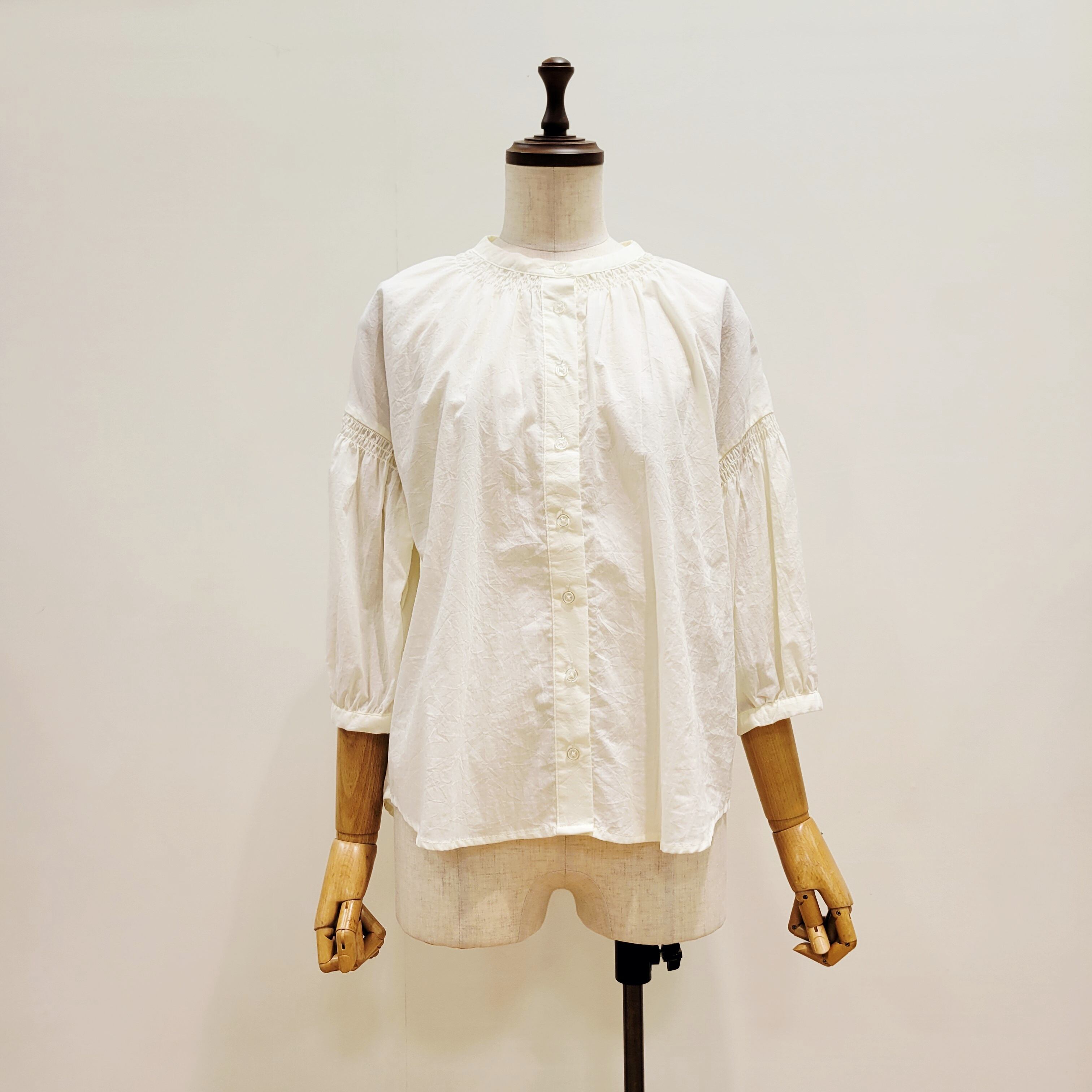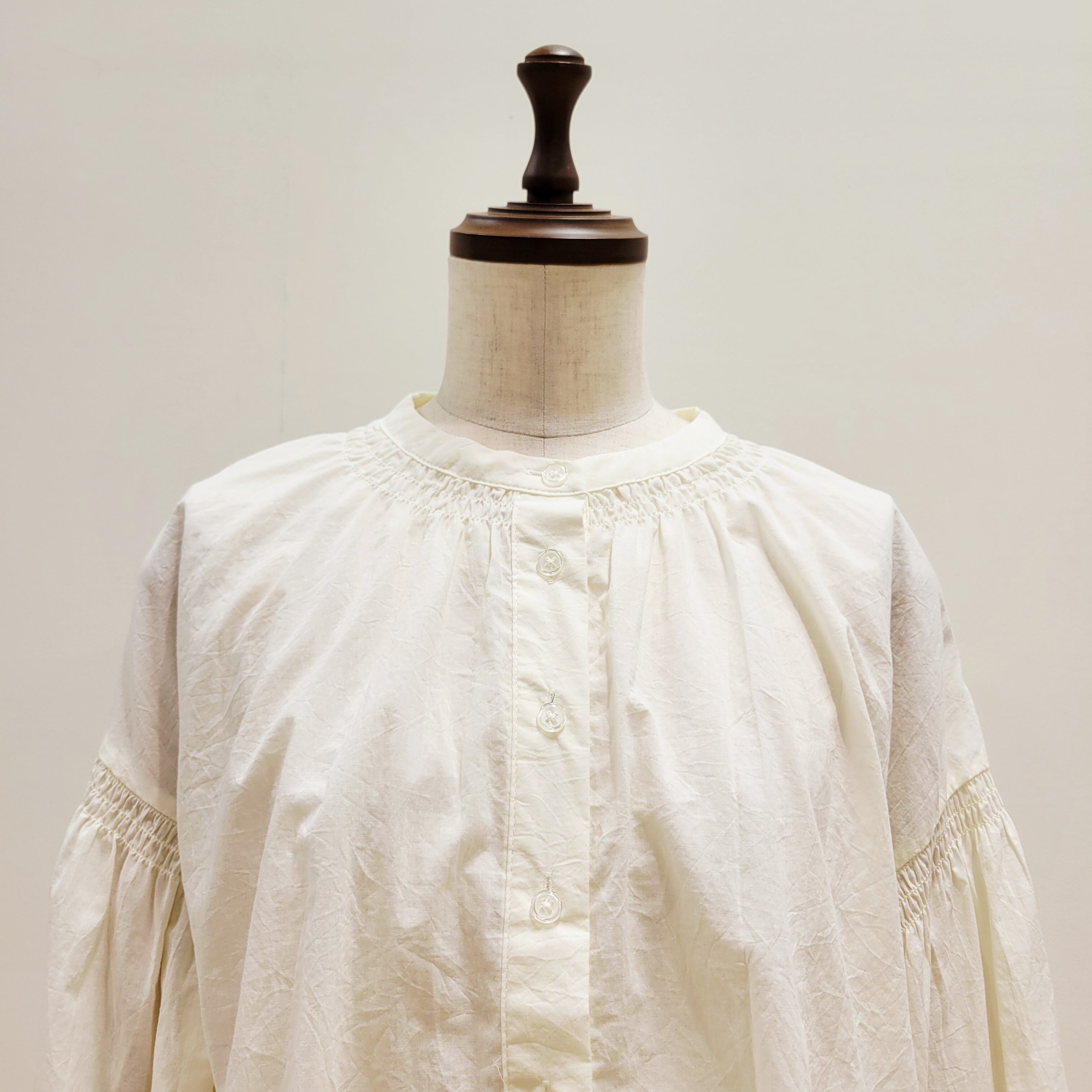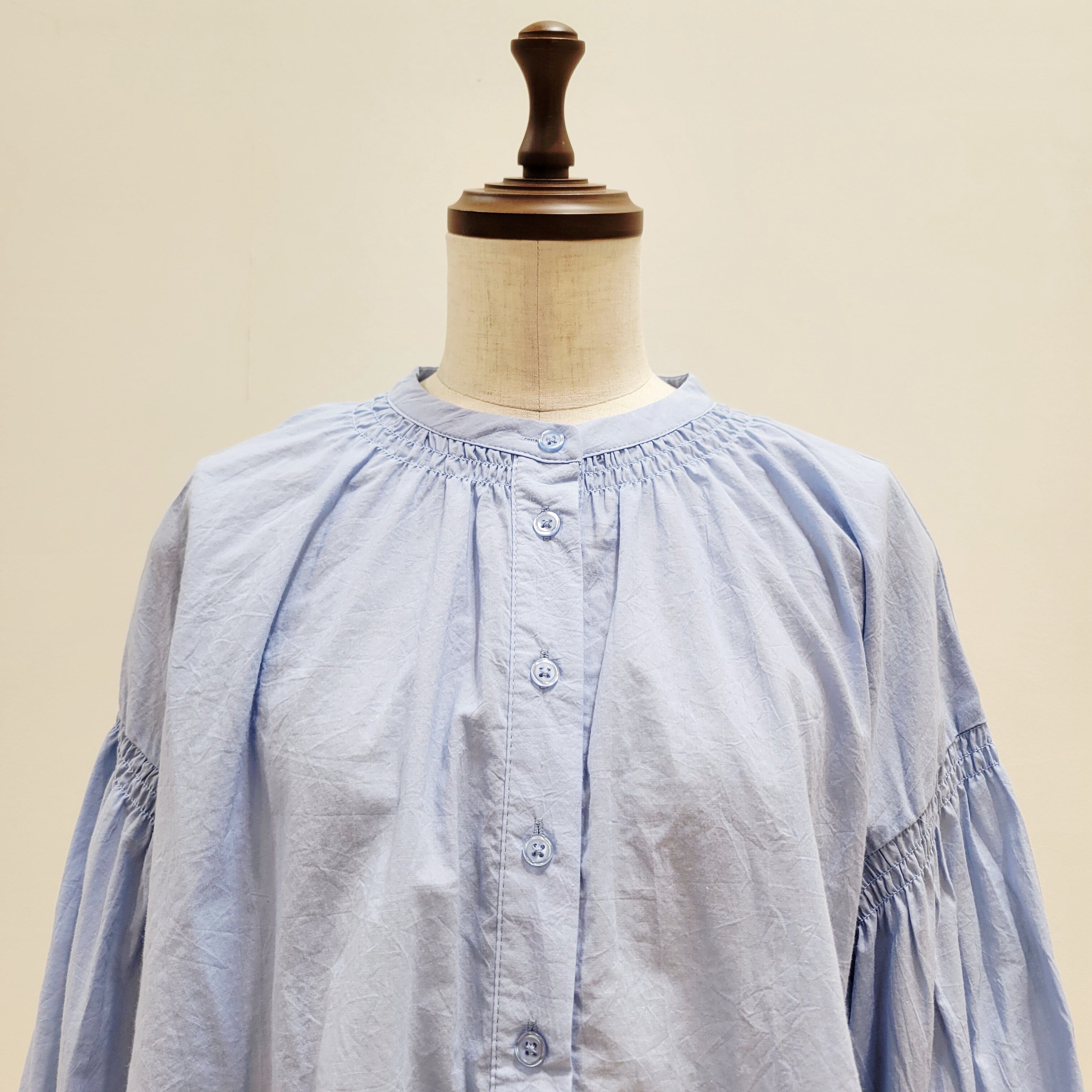 【RESPIGHI( レスピーギ)】バンドカラー ギャザーシャツブラウス