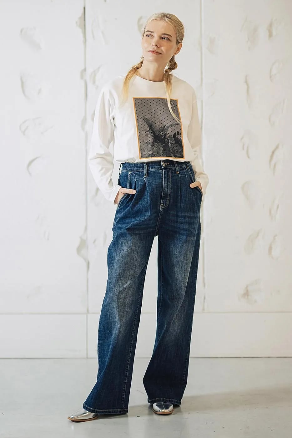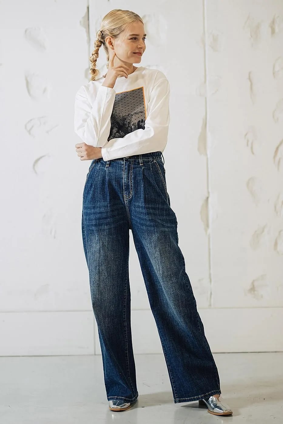 ワイドデニムの魅力を存分に楽しみながら、センタープレスの効果でスタイリッシュさもプラス!