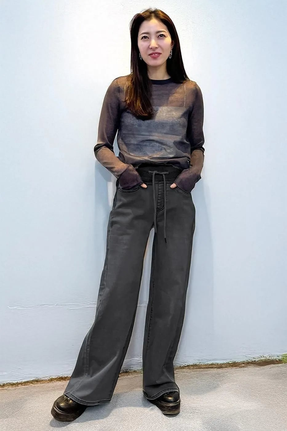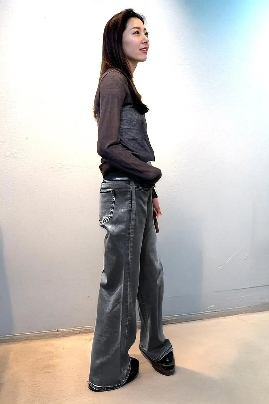 脇に入った真っ直ぐラインで脚長効果抜群のパンツです。
