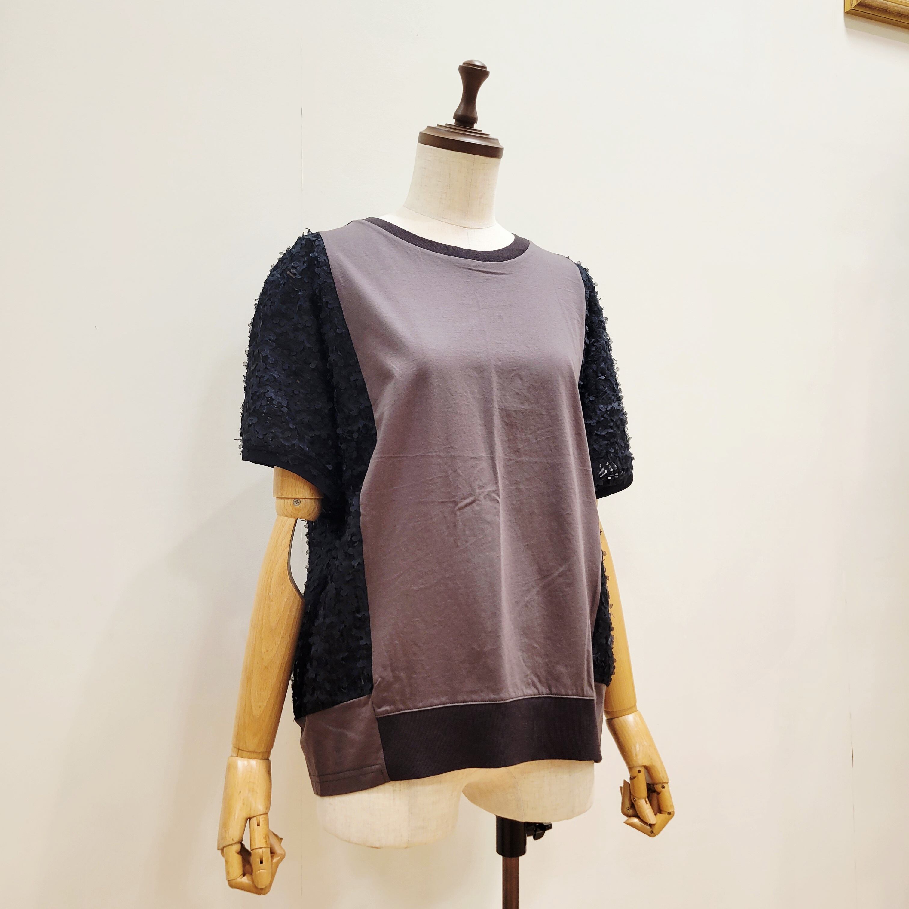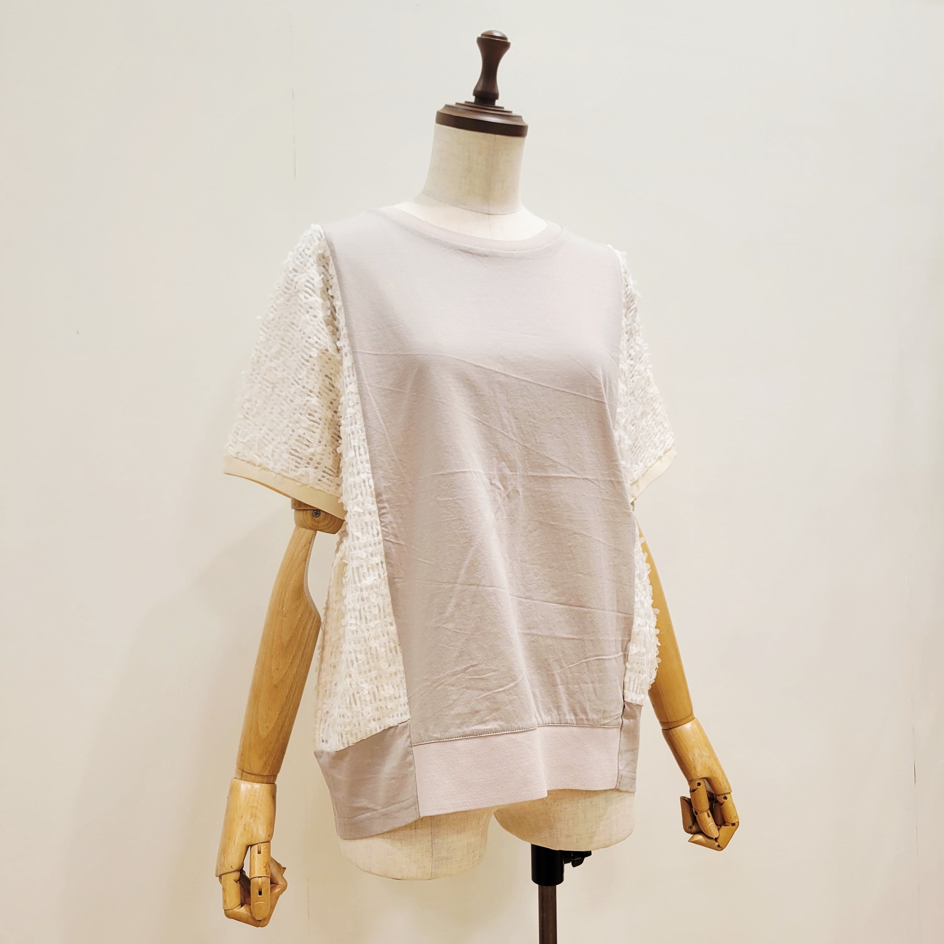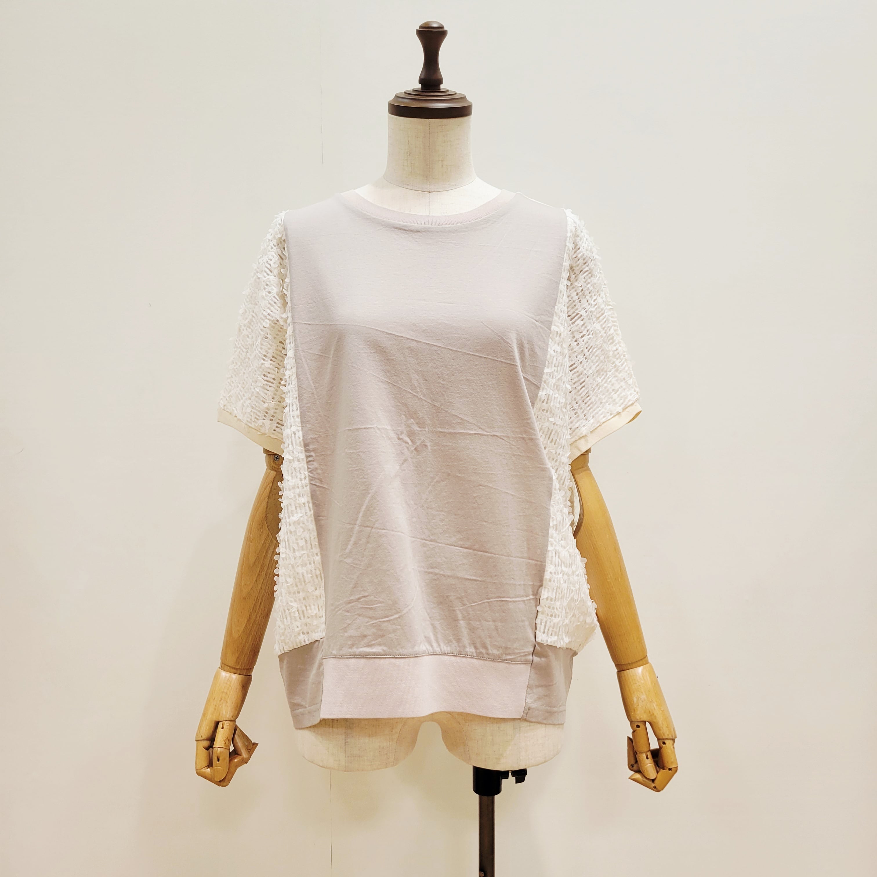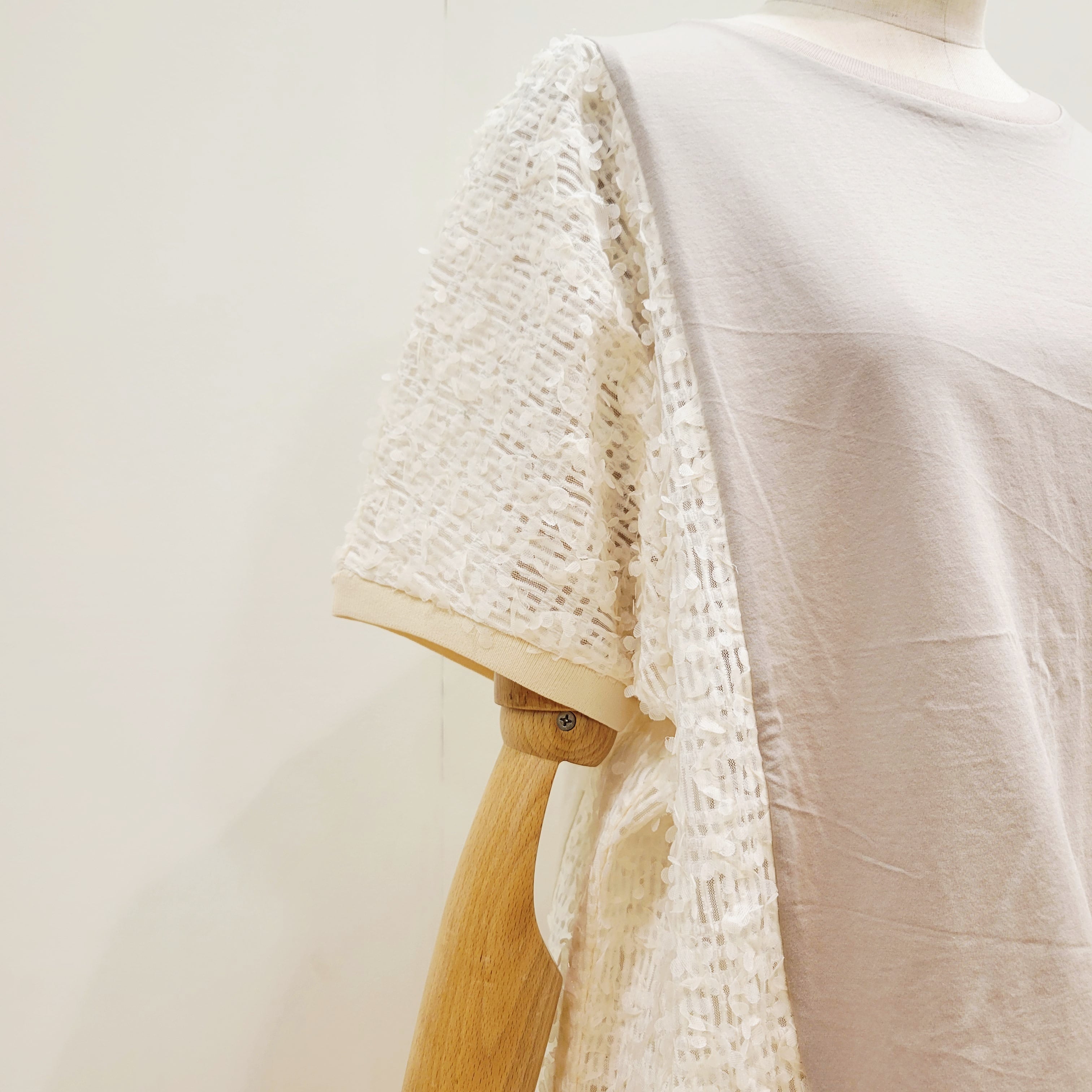 両袖を大胆にレース袖で切り替えたプルオーバー。
